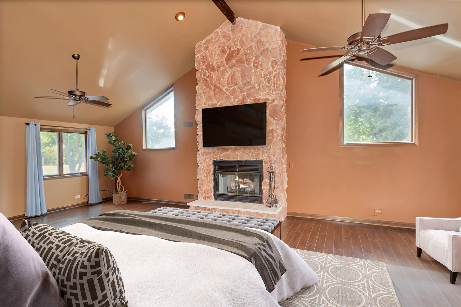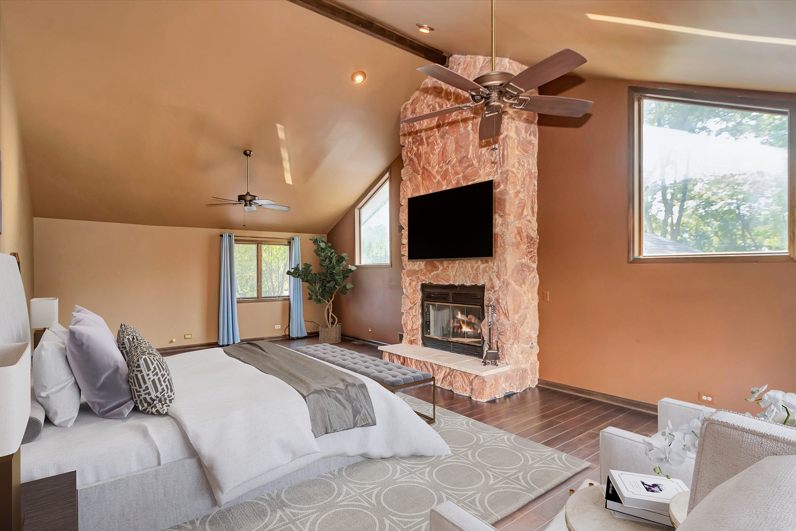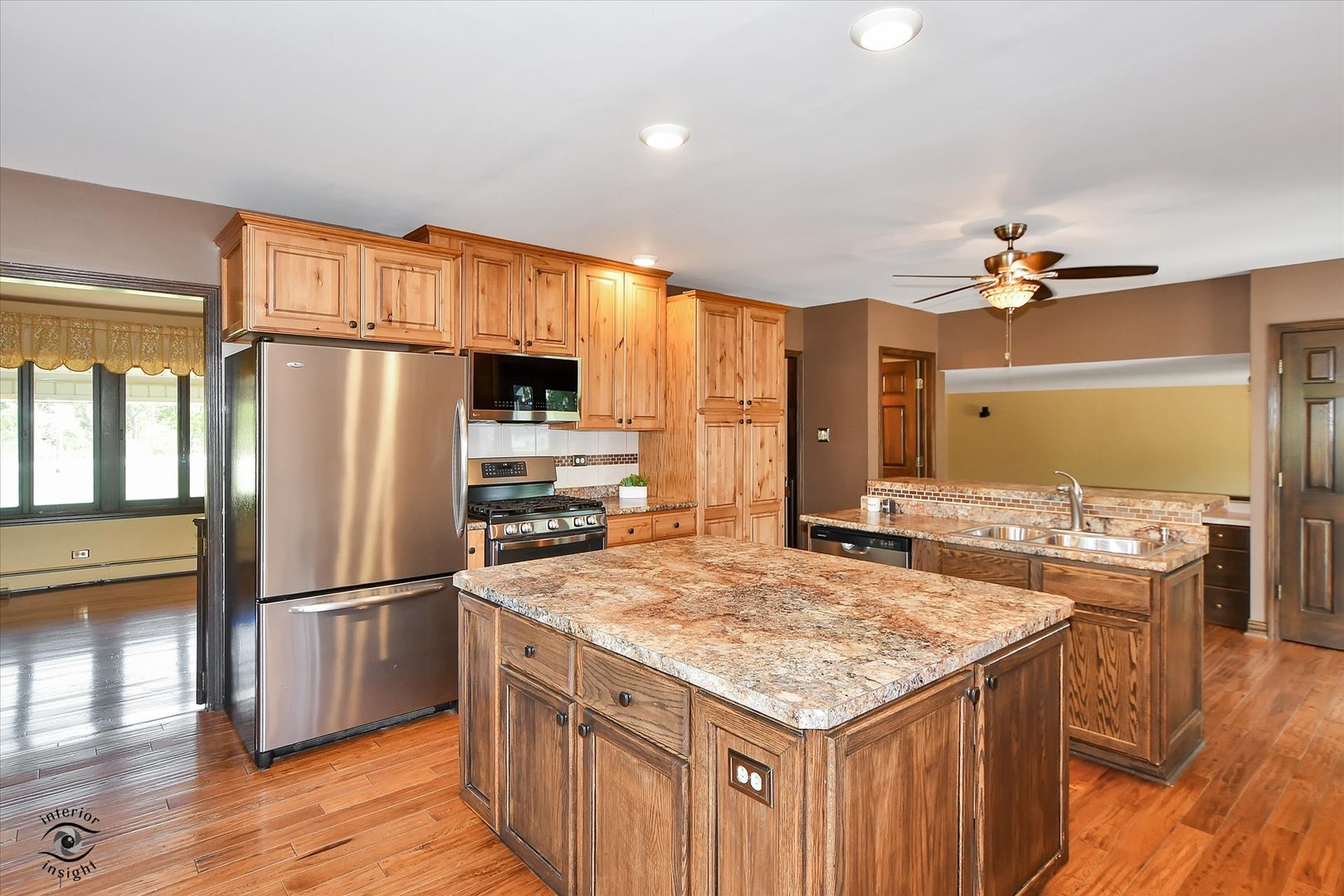 Welcome to Orland Park! This remarkable home sits on a beautiful 2.5 ACRE PARCEL across the street from forest preserve land. Quiet and serene, it truly feels like you’re on vacation! The main home features 4 bedrooms, 3 full and 2 half baths. Beautiful 6 panel doors and stunning wood features throughout. Main floor laundry & 2 car attached heated garage. Beautiful eat-in kitchen updated roughly 12 years ago with alder cabinetry, 2 pantries, stainless steel appliances, a breakfast bar, large island and space for table seating. Off the kitchen is a massive 3 tier deck with pergola. The primary suite? A true oasis with 14′ vaulted ceilings, his and hers walk-in closets, a jaw dropping floor to ceiling gas fireplace and a remodeled primary bath complete with dual vanity, standup shower and jetted tub. But that’s not all. This property features a true, RELATED LIVING APARTMENT addition off the main house. 1 bed, 1 full bath, full kitchen, living room, dining area, private patio, laundry and attached garage. The back of the property features 7 fruit trees, a 30 x 30 former 2 story barn turned heated garage with 220 power + loft and a shed. House, barn & shed roofs are new in 2024. Main house exterior and deck painted in July 2025. Entire house electric was updated roughly 15 years ago when central air was added to the home. DO NOT LET THIS ONE PASS BY!