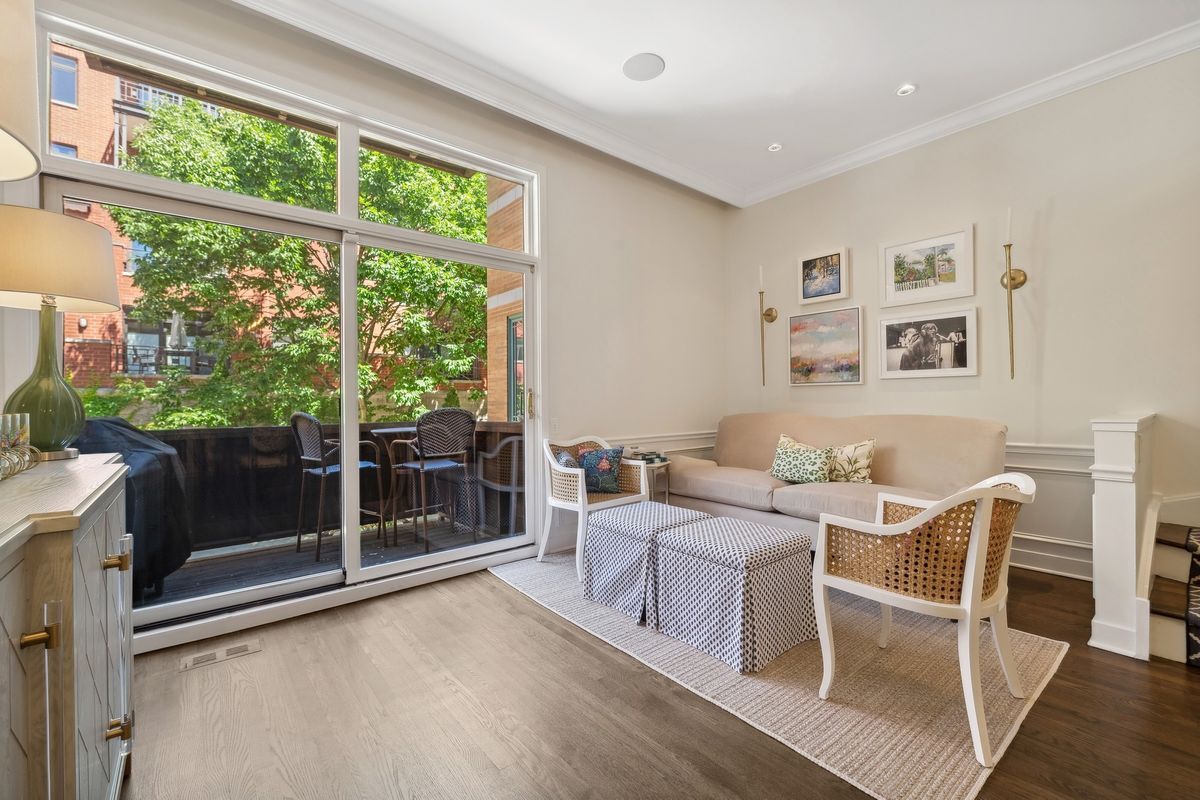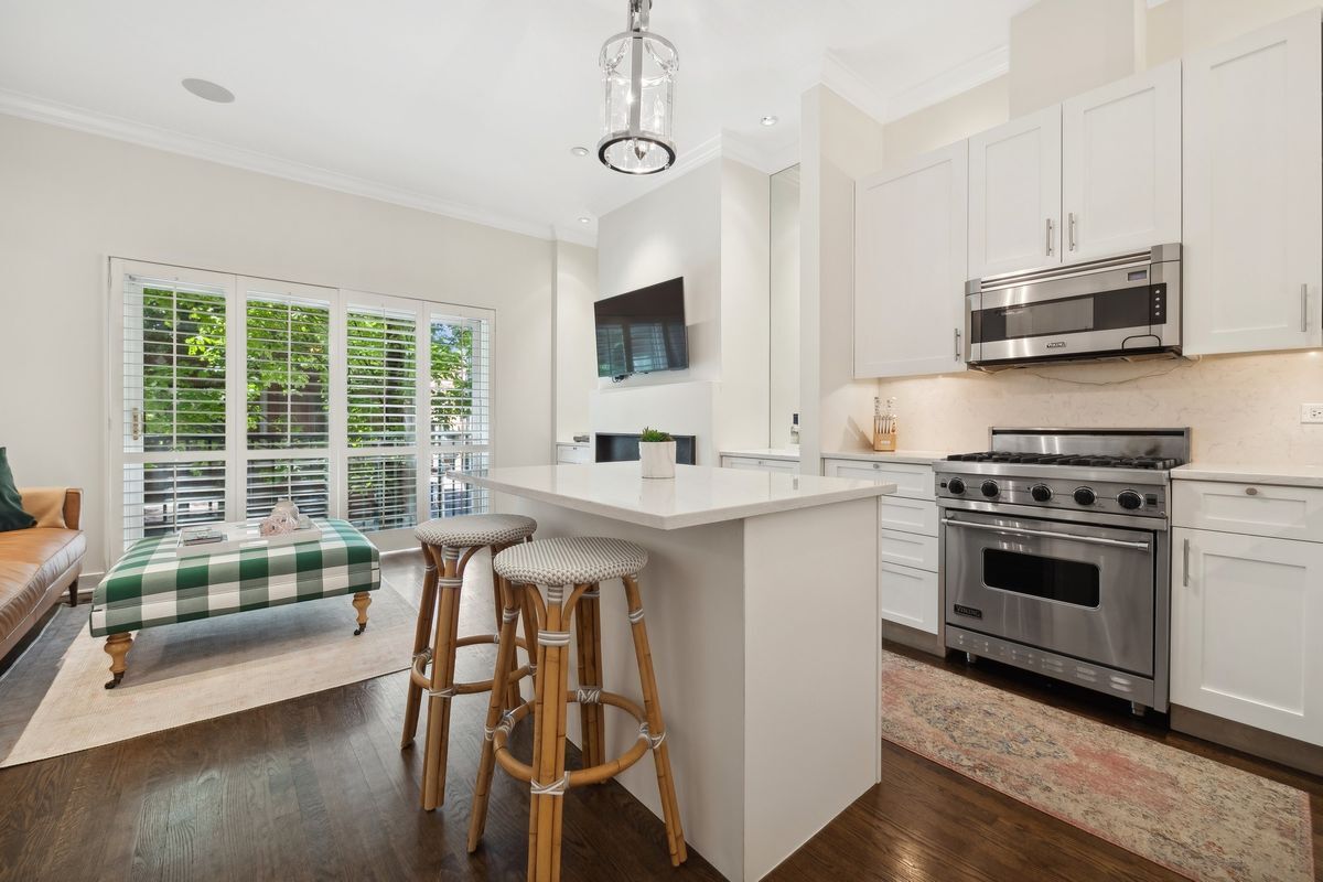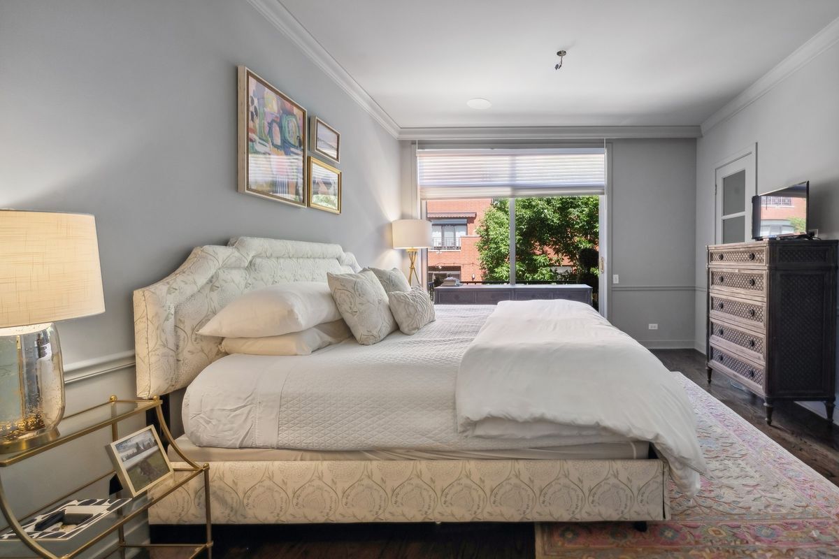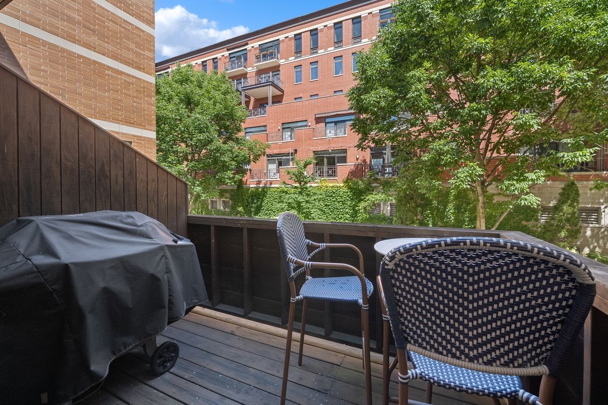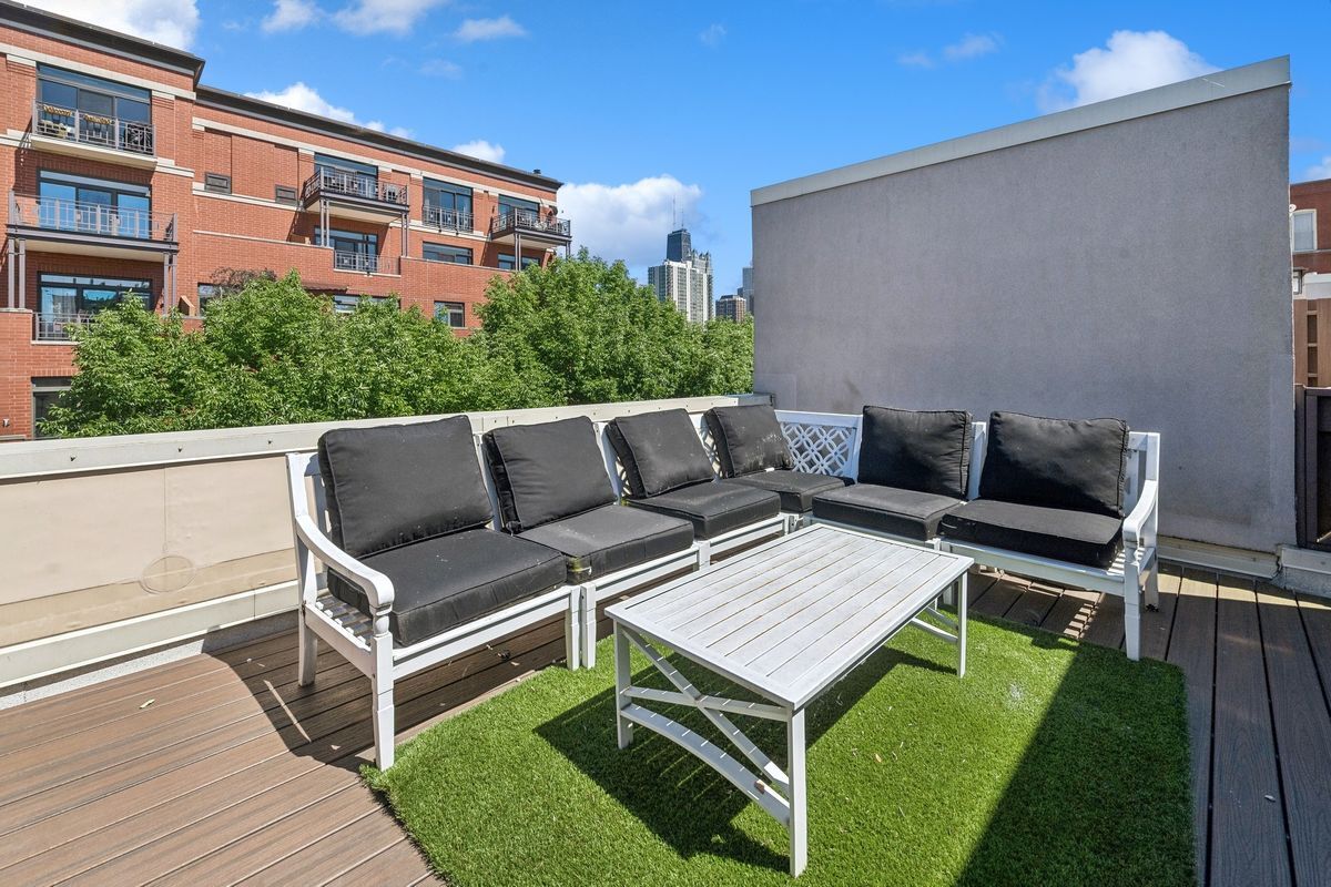Elegant, Updated Townhome in Gated Old Town Community – An Outdoor Lover’s Dream! Step into this rarely available, fully updated 3-bedroom, 3-bath home located in a quiet, gated community Schiller Place – just off Wells Street in the heart of Old Town. This pristine residence offers luxurious finishes, thoughtful design, and an unbeatable location. An outdoor lover’s dream, this home features private outdoor space on every level-including a ground-level patio, two balconies, and an incredible rooftop deck with built-in lighting and panoramic skyline views. The entry-level welcomes you with a limestone foyer, a full marble bath, and a versatile third bedroom or family room with custom built-ins and access to the private patio. The main floor showcases soaring ceilings, rich crown molding, and a spacious living/dining area with a balcony perfect for grilling and entertaining. The designer chef’s kitchen is outfitted with high-end Viking stainless steel appliances, quartz countertops, a new island, and freshly refinished white cabinetry. A cozy breakfast/family room with gas fireplace, custom built-ins, and plantation shutters completes this level-plus a second balcony for even more outdoor enjoyment. Upstairs, find two generously sized bedrooms and two beautifully updated baths, including a spacious primary suite with an en-suite bath and convenient laundry. The top floor offers a flexible space ideal for an office, 4th bedroom, workout room, or den, opening to the showstopping TREX rooftop deck with sweeping city views. Additional features include an attached 1-car garage, 1 exterior parking pad, and access to 7 guest parking spaces in a professionally landscaped courtyard. Residents also enjoy a private community patio with seating, a gas fire pit, and dining area. All of this in a prime Old Town location-walk to restaurants, shopping, parks, and the lakefront. This is city living at its finest!