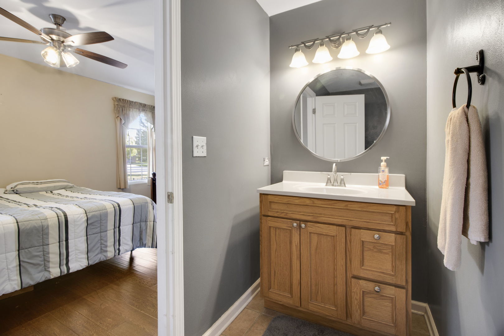 Don’t miss this rare opportunity to own a meticulously maintained, move-in ready luxury duplex with no association dues! This home offers a spacious and bright layout featuring a dramatic two-story living room with vaulted ceilings, skylights, and a stunning fireplace-a perfect space for relaxing or entertaining. Enjoy the elegance of rich hardwood flooring throughout the main level, along with a large loft area (28×14) that overlooks the living room-ideal for a home office, guest space, or additional bedroom. The primary suite is a true retreat, boasting a generous 9×7 walk-in closet and a recently renovated, handicapped accessible en-suite bath featuring high-end finishes and a $22,000 upgrade, including a seated shower and stylish ceramic flooring. A second full bath adds flexibility for guests or family. The kitchen has been tastefully updated with ceramic flooring, beautiful cabinetry, a breakfast bar, and a spacious pantry closet. All appliances stay! Additional highlights include first-floor laundry with cabinetry, six-panel doors, ceiling fans, and a full basement with storage shelves offering plenty of space for your needs. Step outside to your private 24×8 patio and enjoy the fully fenced yard-perfect for pets, gardening, or summer gatherings. Additional updates include a roof that’s only 2 years old and a 3-year-old water heater, offering peace of mind for years to come. This home also includes a 2-car attached garage and is conveniently located near parks, shopping, restaurants, and major highways. Truly a gem-schedule your showing today!