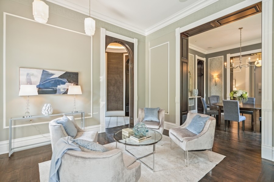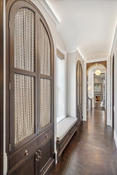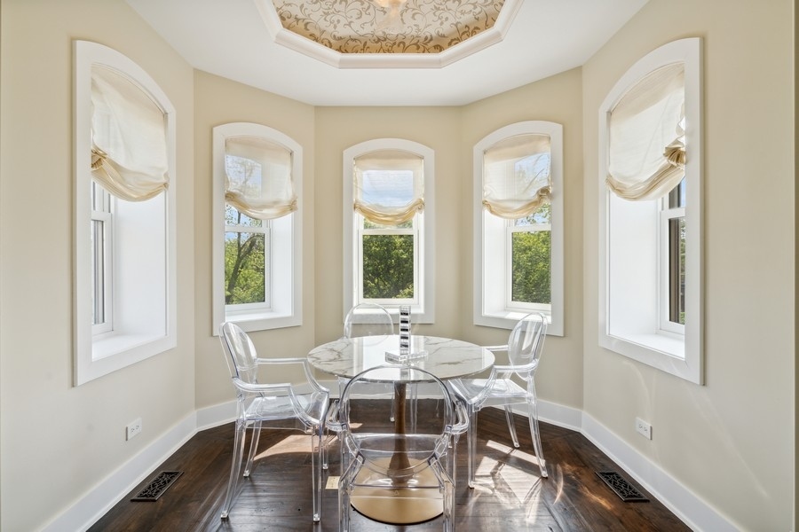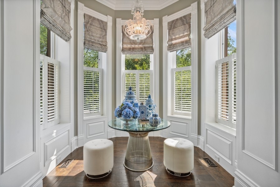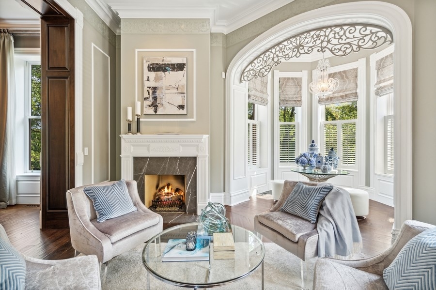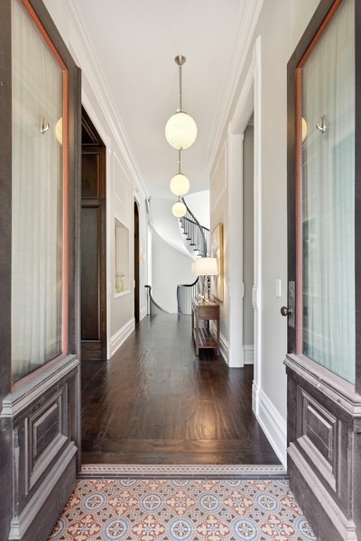 A sophisticated presence, landmark status, architectural integrity, and an unprecedented outdoor footprint for Wicker Park, 1407 N. Hoyne Ave. is a one-of-a-kind opportunity for the homeowner who wants an expansive city estate with pedigree and a modern program. Originally built for beer baron John H. Rapp in 1886, this 8250 SqFt-square-foot, 5+ bed/5.5 bath single-family home underwent a multi-year renovation and restoration by Rugo Raff Architects. Preserving elements of its Victorian charm while optimizing sightlines and integrating first-class finishes was paramount. This special home’s unheard of 98′ x 110′ lot affords multiple green spaces, including a deep front yard with mature landscaping, a side yard with raised garden beds and a European-style pergola. Inside, an elegant entry plus an oval-shaped entry hall link to a lovely living room with an abundance of natural light, a traditional turret, and a wood-burning fireplace, and a formal dining room just beyond with hand-scraped walnut floors. The custom chef’s kitchen stuns with O’Brien Harris cabinetry, white quartzite countertops, professional-grade Wolf/Sub-Zero appliances, an herb garden, a full butler’s pantry, a breakfast dining space with banquette seating, and a built-in desk. The main level also features an intimate family room with built-in walnut cabinetry and a chic beverage center, and two beautiful limestone terraces accessed via French doors: a 12′ x 23′ west terrace for open-air entertaining and a 12′ x 17′ side terrace that’s perfectly appointed for large-scale alfresco dining with an outdoor kitchen and a built-in grill. A striking example of this home’s flawless interior architecture is the centrally located, curving suspended staircase. The second level is devoted to two secondary bedrooms (one with custom bunk beds), the first of two laundry rooms, and an impressively spacious primary suite with a sitting area, a custom dressing room, a walk-in closet, and a marble-clad ensuite bath with two vanities, a soaking tub, and a deluxe shower. The third floor presents two designer offices–a handsome den with knotty alder wood floors and a gas fireplace, a cozy den with a wet bar, an exercise room, and yet another polished guest bedroom. But there’s more… This truly magnificent home also comes complete with a fully finished garden level with a massive playroom that opens onto a basement terrace, a wine room, a kitchenette, another large guest bedroom with den perfect for related living, a second laundry room, a walk-in storage room, and a custom mudroom that connects to an attached garage. Additional callout details and amenities include restored original doors and hardware, custom woodwork and trim throughout, designer lighting and wallcoverings throughout, four total fireplaces, 97 Marvin windows, geothermal heating and cooling plus radiant heat in the lower level playroom, a Lutron lighting system, self-irrigating planters on both terraces, and an excess of custom interior storage. Walking distance to Wicker Park proper and the world-class shopping and dining that extends from the neighborhood’s famed Six Corners, 1407 N. Hoyne Ave. is a one-of-a-kind home with uncompromising design and comforts.