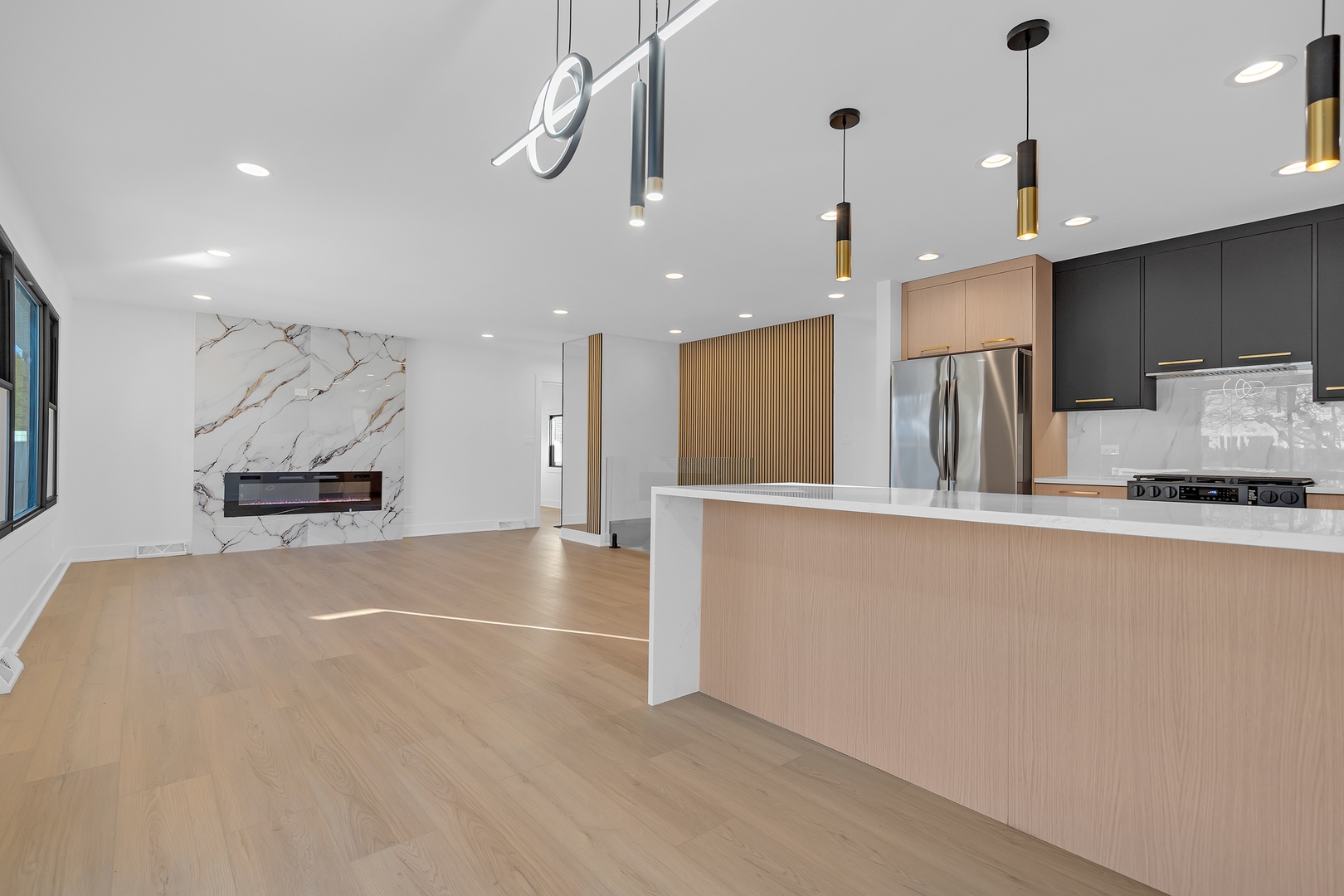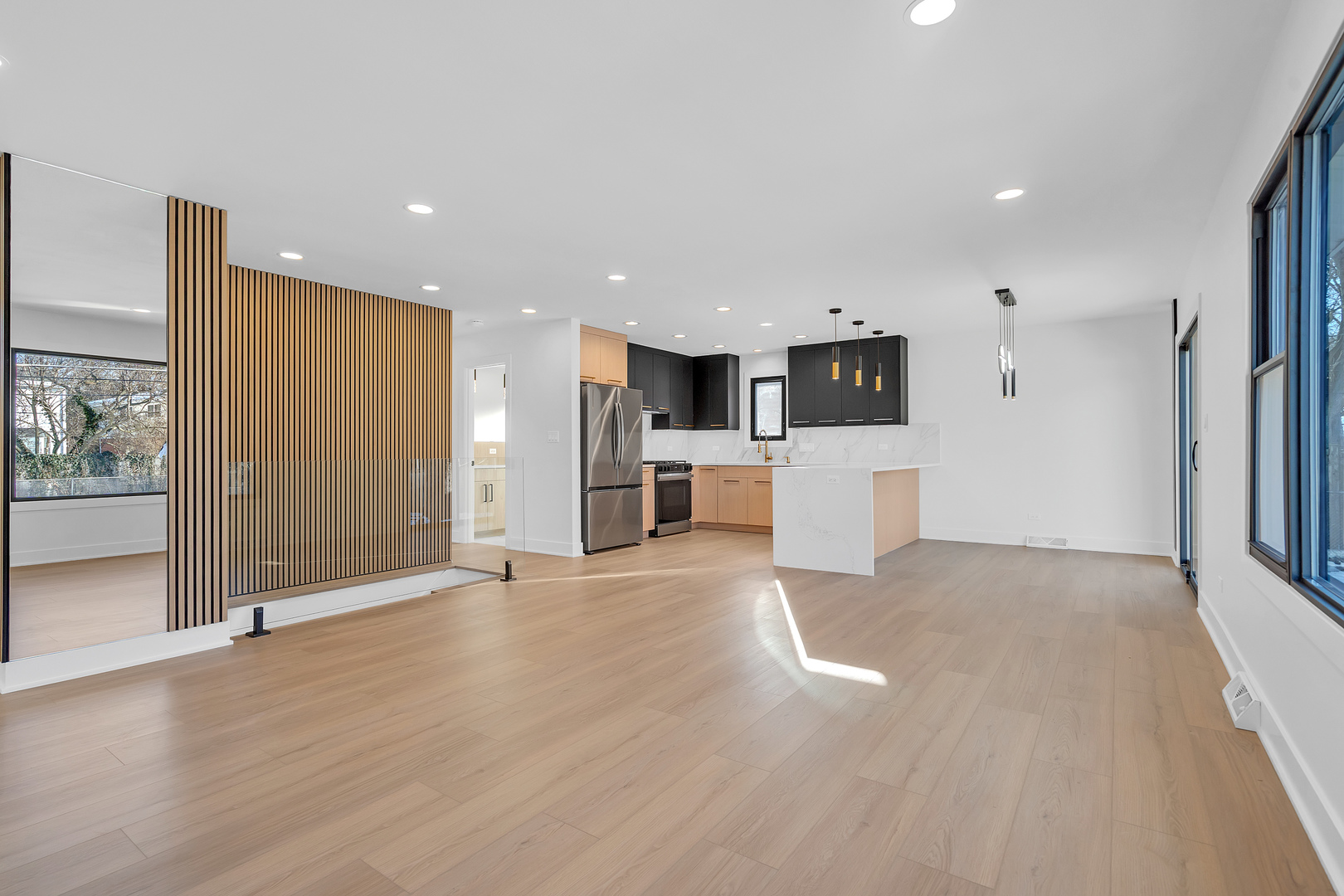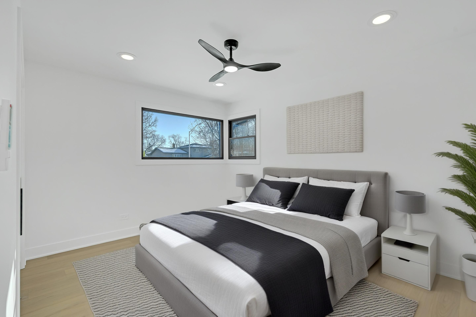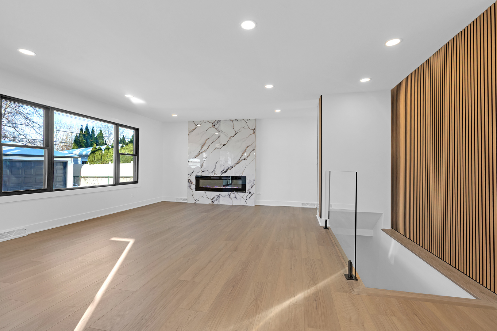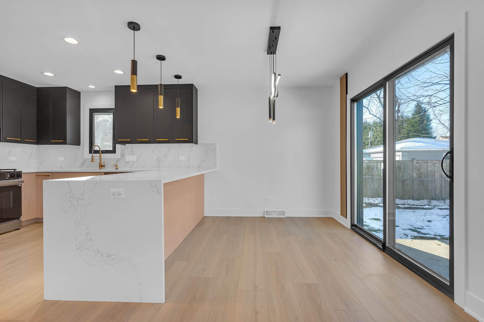 Fully rehabbed beautiful ranch home located in desirable Hersey HS district just blocks from the Prospect Heights Metra train station. Six bedroom, three baths (rare 4th bedroom on main floor). Detached 2.5 car garage with new surface long driveway and extra parking. The dining, living roome off the eat-in kitchen have sliding doors leading to a fully-fenced private backyard with mature trees. Full finished basement with spacious family room, wet bar, 2 bedrooms and full bath, window wells bringing in extra natural light. Brand new elegant custom kitchen with upgraded Samsung appliances, quarz counter tops, vented hood; modern baths, all newl drywall, insulation, doors, trims, commercial grade sustainable flooring, custom glass railings; Climateguard windows, new baths, high efficiency mechanicals, 200 AMP electric, plumbing, new water line service from the street. Nestled in a beautiful neighborhood, you’re just moments away from shopping, dining, and easy access to 294. Walk down the street to enjoy nature in Burning Bush Trails Park or various sports at Burning Bush Community Center. Even more activities can be enjoyed at nearby River Trails Park District, Woodland Trails Pool, and Woodland Trails Driving Range and Mini Golf.