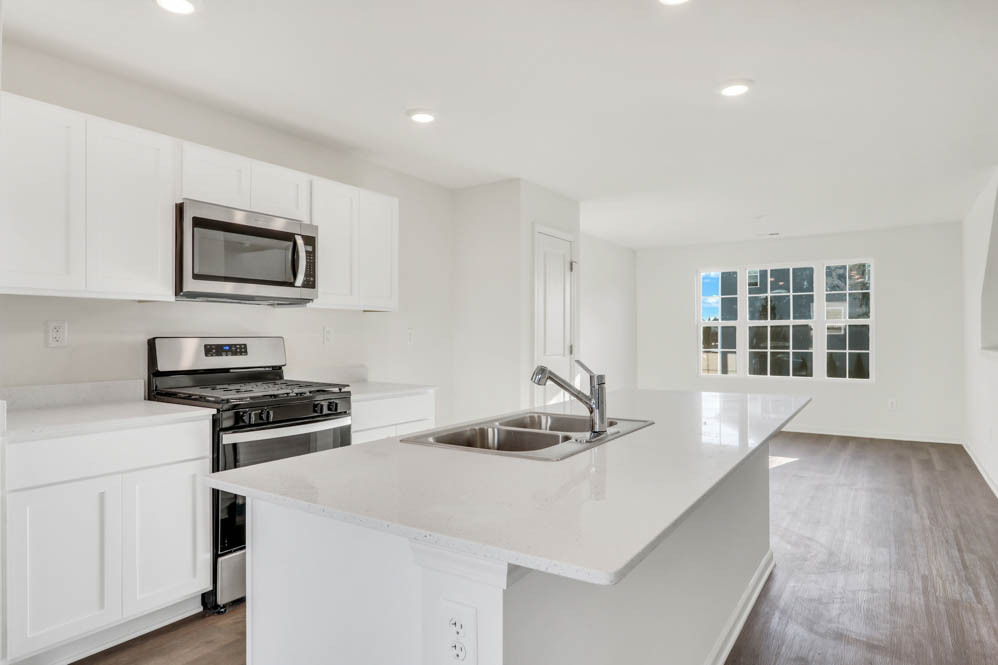 Picture yourself at 1409 Oakfield Lane in Pingree Grove, Illinois, a modern, new townhome in our scenic Cambridge Lakes North community. This middle unit townhome will be ready late winter! Homesite includes a fully sodded yard that is maintained throughout the year as well as snow removal in the winter. This Garfield townhome is a captivating open floor plan with over 1,700 square feet of living space which includes 3 bedrooms, 2.5 baths and a finished flex space. As soon as you step inside from the garage, you’ll be greeted by a finished flex space, perfect for an office or playroom. Walking up the stairs, you will find this home’s open concept main level living space centered around a large kitchen island. The expansive kitchen overlooks both the front dining and back great room areas, making it the ideal space to entertain. Additionally, your kitchen features designer cabinetry, quartz countertops, stainless-steel appliances, and pantry. Arriving at the top floor, you’ll find our 3 bedrooms. Enjoy a spacious primary bedroom suite which includes a large walk-in closet lit up by its own private bathroom with dual sinks and a walk-in shower. The rest of the upper level features a laundry room, secondary bedrooms with a full second bath and linen closet. You’ll find luxury vinyl plank flooring throughout the main level kitchen and dining, bathrooms, and laundry. Impressive innovative ERV furnace system, Rheia ductwork delivery system and tankless water heater round out the amazing features this home has to offer! All Chicago homes include our America’s Smart Home Technology, featuring a smart video doorbell, smart Honeywell thermostat, smart door lock, Deako smart light switches and more. Photos and model photos are of similar home. Actual home built may vary.
