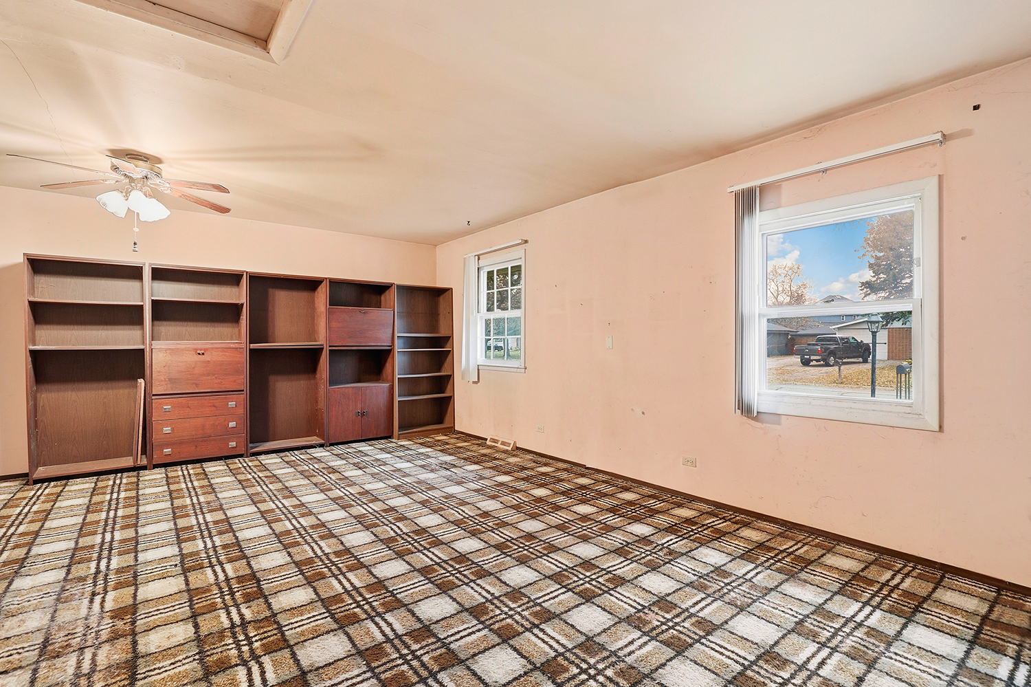 Opportunity awaits in this comfortable ranch home in the heart of Darien! Enjoy stair free living on a quiet tree lined street that welcomes you into a bright foyer. Gather in the inviting living room with a large picture window that easily transitions into the formal dining room, offering another oversized window and natural light. The eat-in kitchen features retro cabinetry and room for a breakfast table. Unwind in the spacious primary suite with a generous closet and private full bath. Two additional bedrooms and another full bath provide plenty of space for guests or family. The large family room includes a convenient laundry and storage area, perfect for everyday living. Step outside to a spacious fenced yard with mature trees, a patio for relaxing or grilling, and a bonus storage shed. This prime Darien location places you close to Oldfield Oaks Forest Preserve, Darien Community Park, Waterfall Glen, shopping, dining, and Downers Grove South schools. Interstate access is nearby for an easy commute. Recent improvements include a new furnace 2025, refrigerator and shed 2022. This home is being offered as-is, where-is. Don’t miss this equity-rich opportunity!