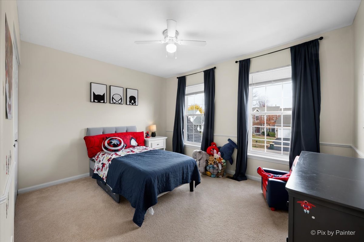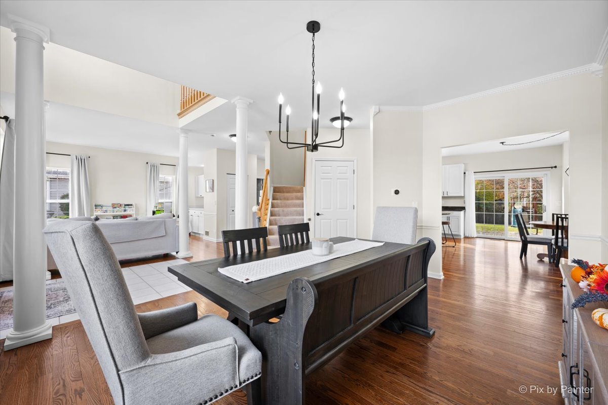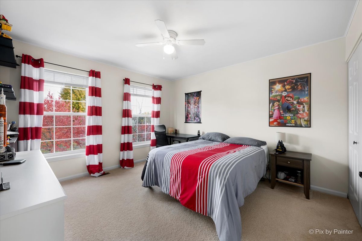 Welcome to 1412 Redwing Drive – a home with room for everyone! This beautifully maintained home has 5 bedrooms plus 1 in the finished basement, 2.5 baths, 2nd floor laundry, and 2-car garage. Two-story entrance foyer opens to a formal living and dining room – ideal for entertaining or family gatherings. Hardwood floors throughout 1st floor. Continue into the kitchen where you will find 42″ cabinets, center island, and granite countertops. Refrigerator, dishwasher, and double oven replaced in 2023. The adjacent family room has a beautiful fireplace and plenty of natural light. The main-floor bedroom (or office) adds flexibility for guests or remote work. Upstairs, you’ll find a spacious primary suite with large walk-in closet, bathroom with dual vanities, a freestanding tub, separate glass shower. There are three additional bedrooms and 2nd floor laundry with washer/dryer, replaced in 2023. The finished basement includes the sixth bedroom, a large rec room, and additional family space. Enjoy the outdoors with a fenced yard, patio, playset, and garden – perfect for gatherings and playtime. A/C (2022), Furnace (2025); Basement carpet, wall built-in and paint redone in 2023. Close to parks, schools, and conveniences. Welcome home.