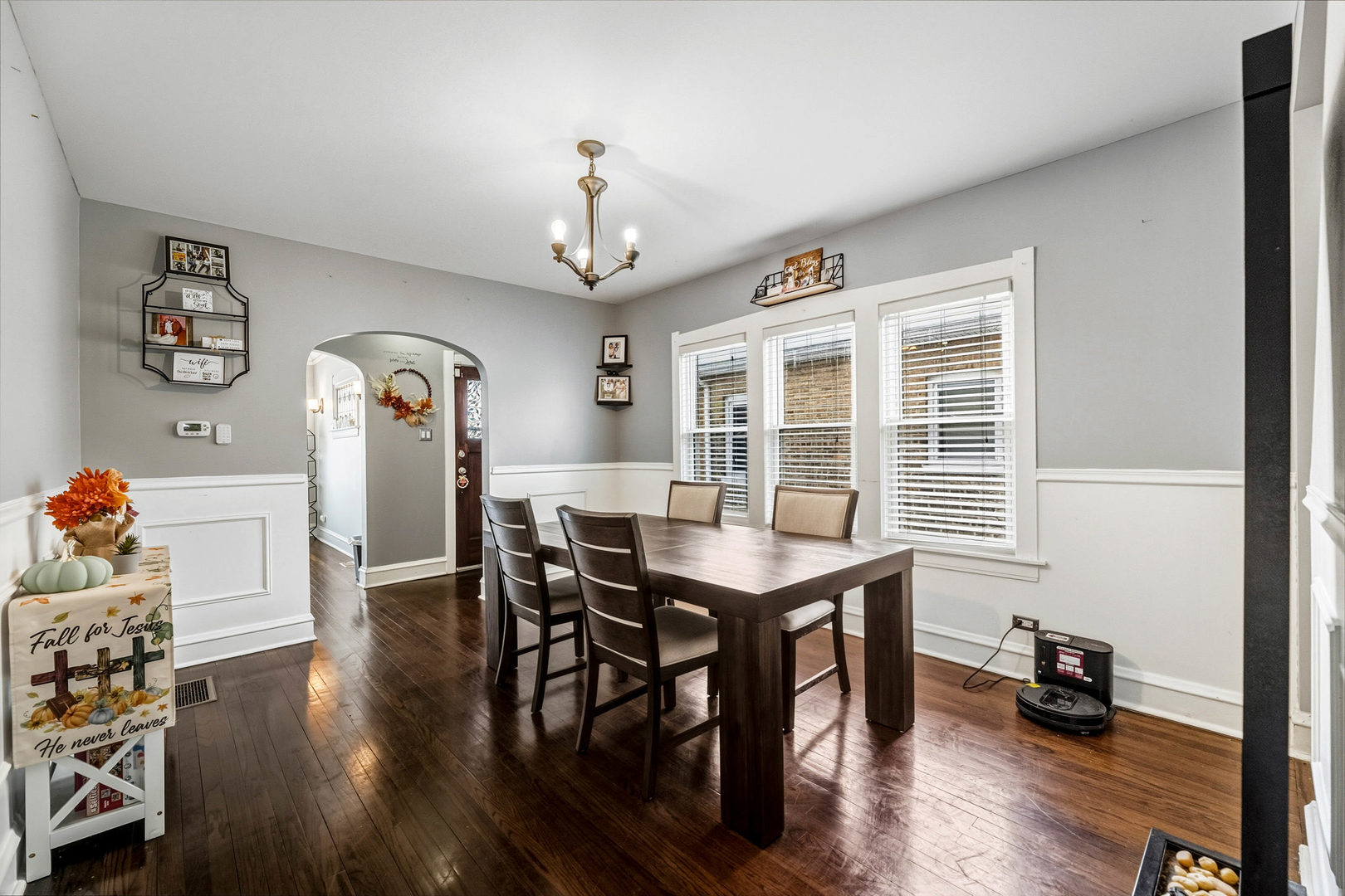 Beautifully updated brick bungalow offering generous space, modern comfort, and exceptional functionality. The main level features a bright living room, formal dining room, a well-appointed updated kitchen, and two spacious bedrooms. The second floor offers two additional bedrooms, perfect for growing households, guests, or office space. The fully finished basement adds even more value with a large recreation area, an additional bedroom, and a full bath. A professionally installed interior and exterior drain-tile system with three sump pumps provides a dry, worry-free lower level. Enjoy a private backyard and a 1-car garage for added convenience. FHA buyers are welcome. This is a must-see opportunity.