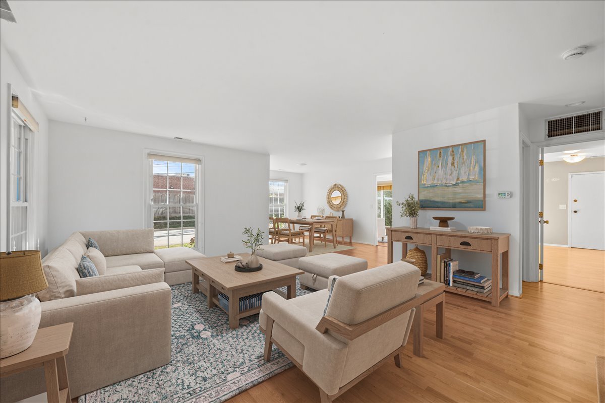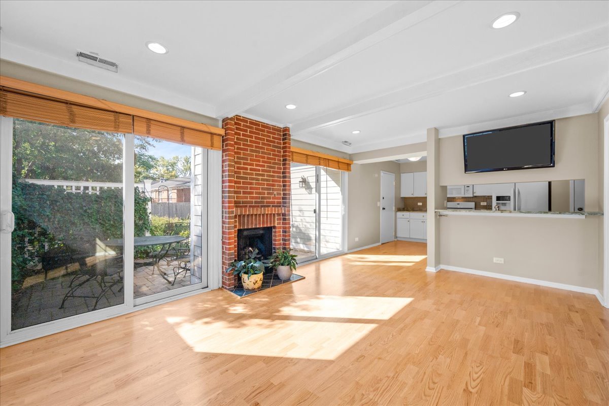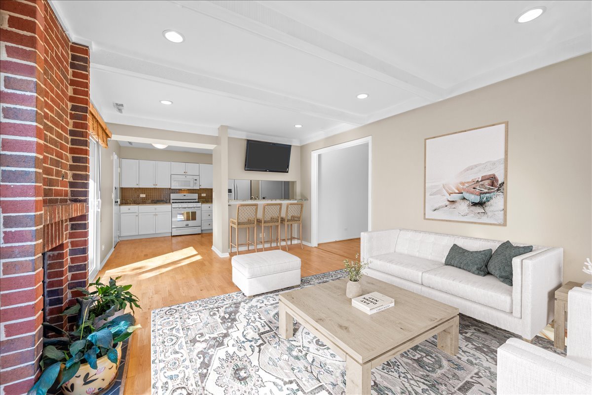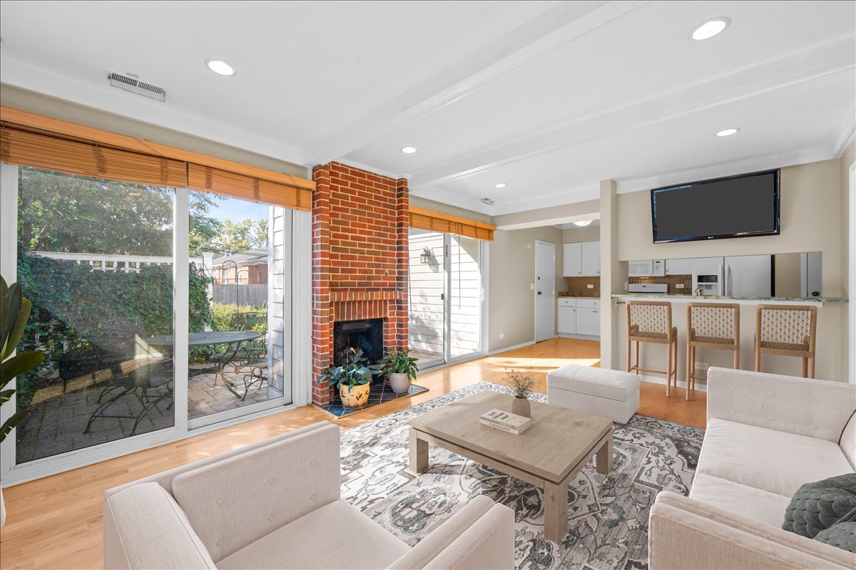As an end unit, this Pebblecreek townhome gives you more–more windows, more privacy, more ways to gather–plus a true, separate dining room and a little green space all your own along the side. Inside, first-floor hardwoods set a warm tone. The kitchen and family room form the hub with breakfast-bar seating and a fireplace, then open through two sets of patio doors to a private patio perfect for dinner under the lights, a firepit hang, or a quiet lounge set. A convenient powder room serves the main level, and the attached one-car garage simplifies life. Upstairs, the primary suite includes an attached bath; two additional bedrooms are served by a full hall bath, and a laundry closet with washer and dryer is right where you need it-on the bedroom level. Because it’s an end unit, you’ll enjoy added natural light and extra privacy, plus a grassy side area with a small garden for play, pets, or herbs. In Pebblecreek’s landscaped, pool community with professional management, you’re close to shops, dining, and transit-in District 34 and 225.