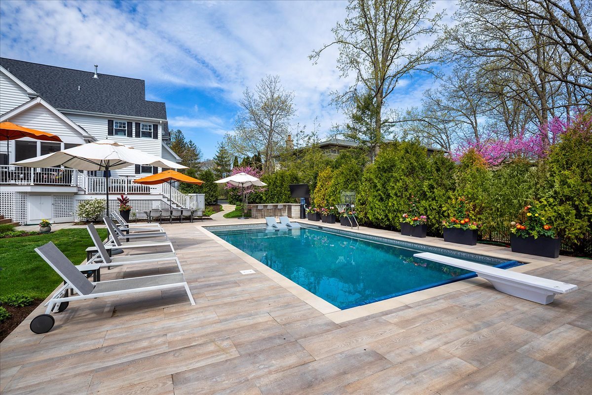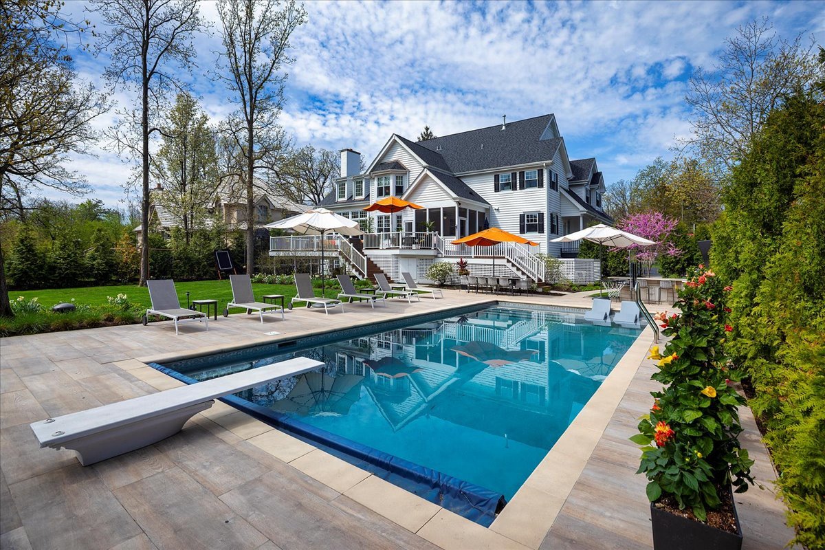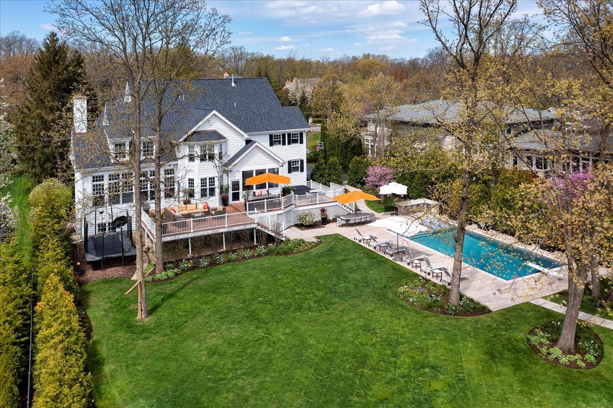Fall in love with this extraordinary home set on a sprawling .73-acre private sanctuary in prestigious Northwoods – where luxury meets lifestyle. Thoughtful design is evident in every detail, starting from the inviting wrap-around porch with a swing to the dual-lane circular driveway. The private resort-style backyard is an entertainer’s dream, featuring a stunning pool, built-in outdoor bar, fire pit with swings and a two-tier deck overlooking a professionally landscaped, fenced yard with integrated lighting and sound. Inside, the fully renovated Chef’s Kitchen is a showstopper with Thermador appliances, custom cabinetry, quartz countertops, a designer backsplash, island with seating, and a spacious walk-in pantry. The expansive 2-story Great Room impresses with a dramatic vaulted ceiling with wood beam trellises, floor-to-ceiling windows with electric blinds, and an attention-grabbing stone fireplace. Work from home in the private office filled with natural light and convenient built-in organizers. The large living room serves as a great entertaining space, paired with a formal dining room with custom millwork and a sleek butler’s pantry for effortless hosting. The luxurious primary suite is a personal haven with vaulted ceilings, a sitting room with coffee station, a large walk-in closet with built-in organizers and a spacious bath with two separate marble vanities, spa-like steam shower and large jetted tub to relax. Upstairs also features three additional oversized bedrooms, two full baths, and a convenient second-floor laundry room. The fully finished English basement boasts a recreational room with fireplace, a media room complete with theater seating and a second kitchen, two bedrooms, and a full bathroom. Enjoy the fabulous screened porch with attached ceiling heaters! 3 car garage with epoxy floor leading to mud room featuring a second washer & dryer, cubbies, large storage closet, back staircase and convenient dog bath and bed station for all the dog lovers! Amazing location close to award-winning Walden Elementary School, Deerfield High School, parks, town, metra, library etc.. New roof, gutters, kitchen appliances, washers & dryers, HVAC, sump pumps, water heater, and more! This one-of-a kind home truly has it all.