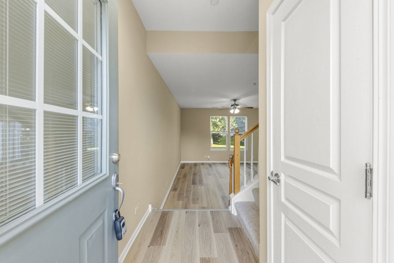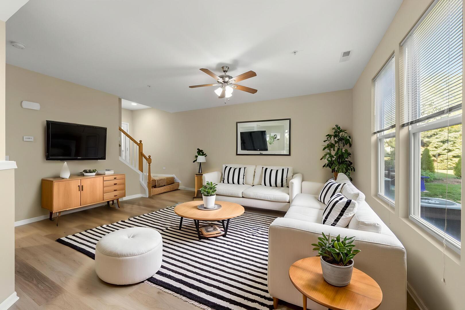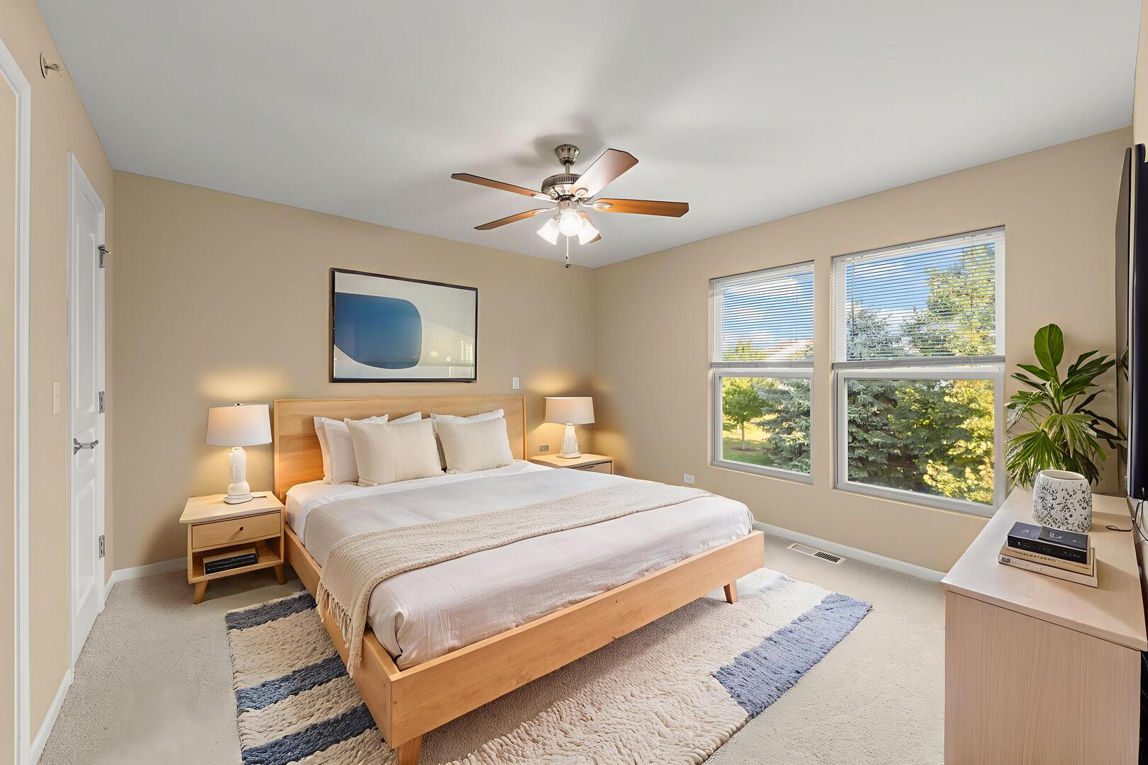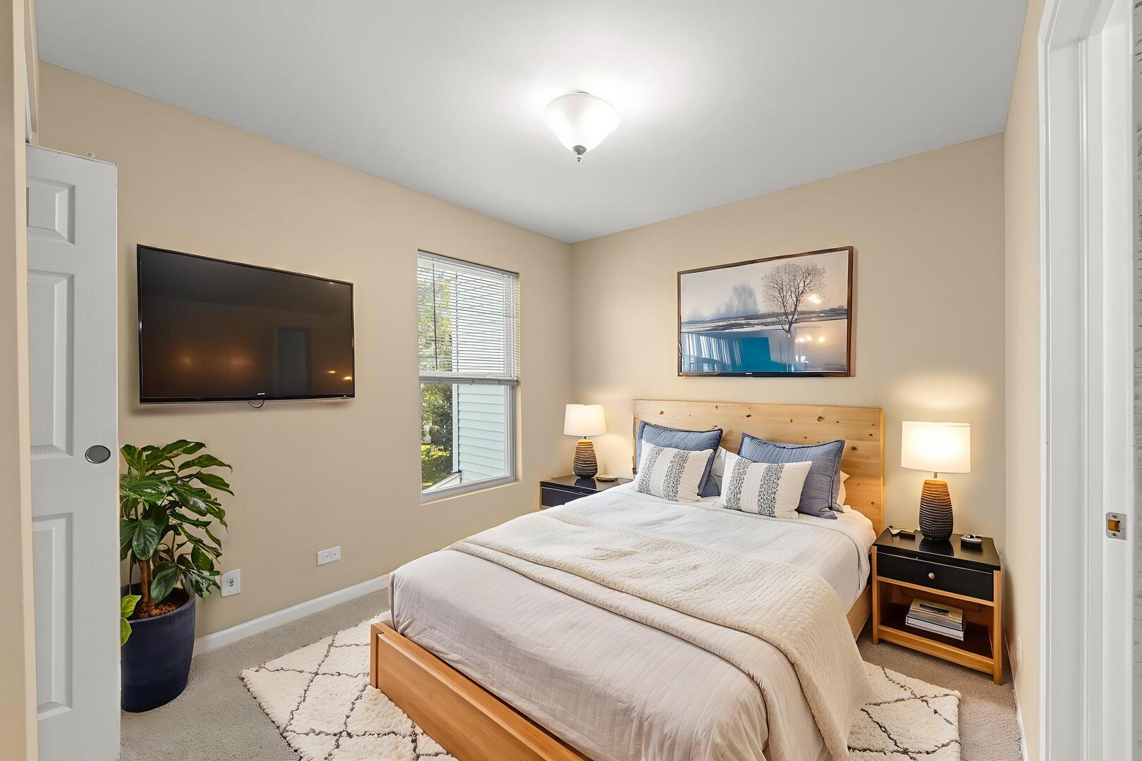 Welcome to this beautifully updated townhome in Yorkville’s sought-after Autumn Creek community. With 2 bedrooms, each featuring its own full bath, and 1,265 square feet of well-designed living space, this home combines modern comfort with everyday functionality. The main level impresses with its 9-foot ceilings, oversized windows, and open-concept layout that creates a bright, airy feel throughout. Freshly painted with new carpet and luxury vinyl plank flooring, every space feels clean and move-in ready. The spacious living and dining areas flow together seamlessly, making it easy to entertain or relax. The kitchen offers generous cabinet storage, sleek black appliances, and plenty of counter space for meal prep, while a sliding glass door opens to a private patio overlooking peaceful green space-an ideal spot to enjoy your morning coffee or a quiet evening outdoors. Upstairs, the primary suite provides a true retreat with a large walk-in closet and private bath featuring dual sinks and a walk-in shower. The second bedroom also includes an en-suite bath, perfect for guests or a roommate setup. A convenient second-floor laundry room adds practicality to the layout. Complete with an attached two-car garage and the ease of maintenance-free living-including exterior care, lawn service, and snow removal-this home is as effortless as it is inviting. Residents of Autumn Creek enjoy scenic walking paths, playgrounds, and open spaces, all while being close to Yorkville and Oswego’s schools, shopping, dining, and local amenities. Stylish, low-maintenance, and ideally located, this townhome is ready to welcome you home.