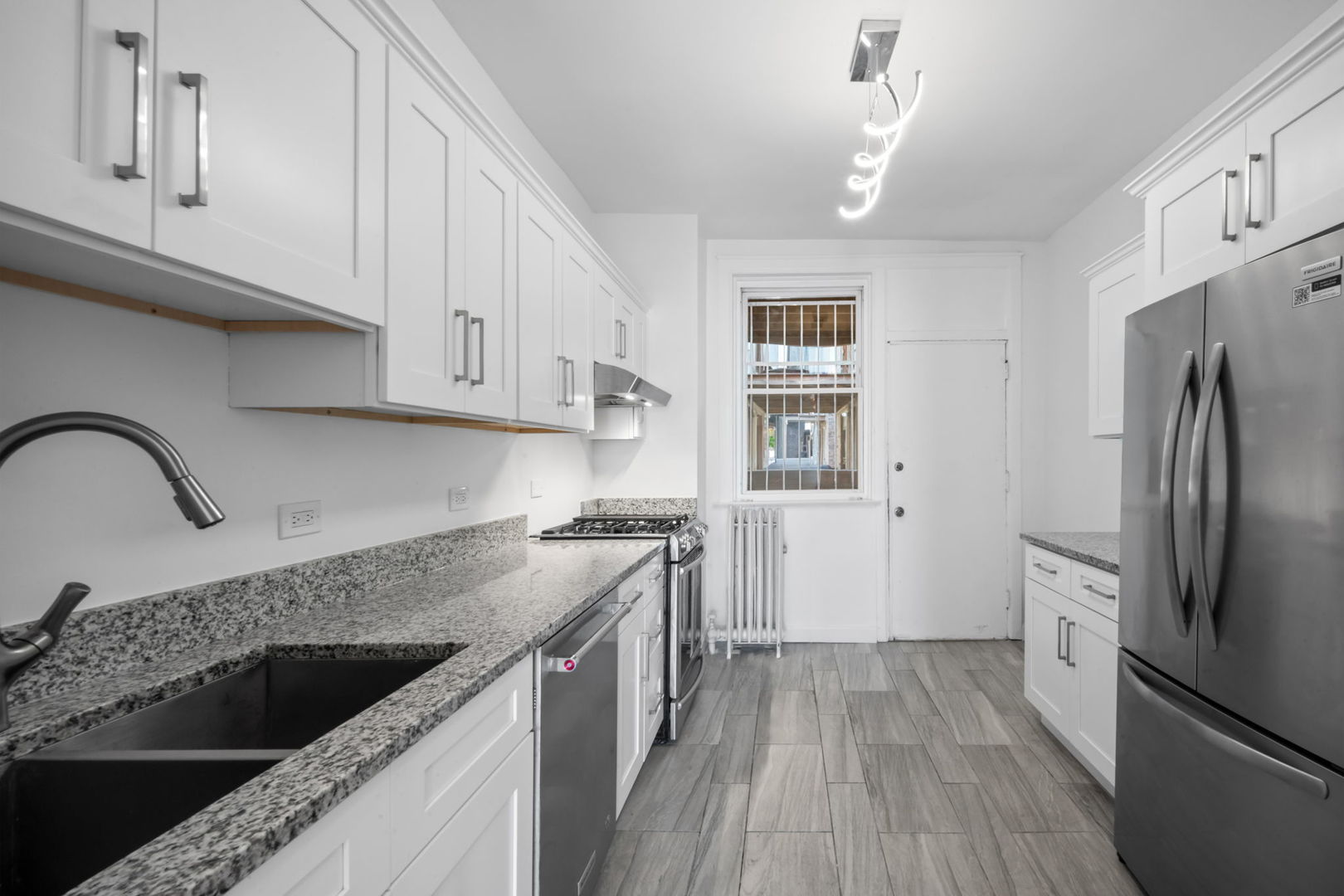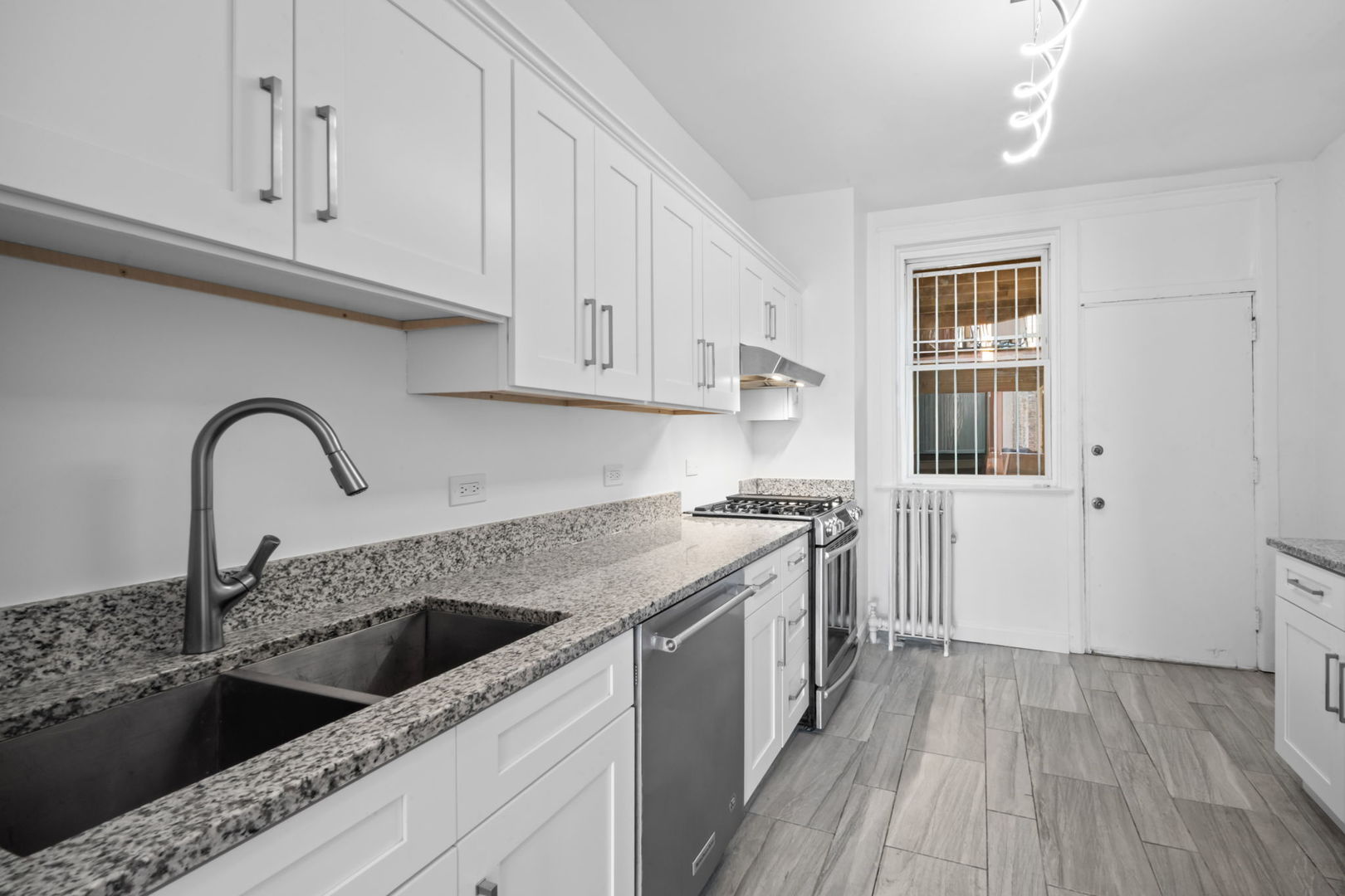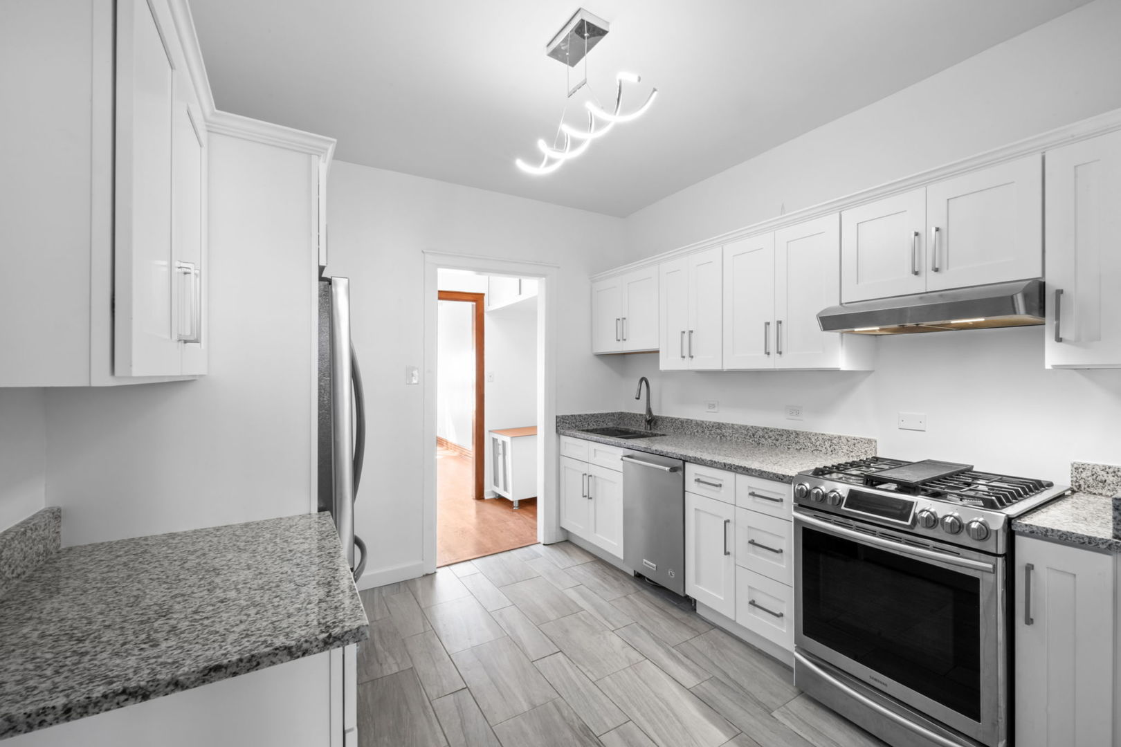 Welcome to this completely updated, sundrenched condo, featuring 2 bedrooms, 1 bath, and a large office. The unit has new kitchen and bath, new hardwood floors in most rooms, designer light fixtures, large living room and separate dining room with south exposure. Granite counters, stainless appliances and brand-new washer/dryer. Large closets in unit and storage room in the basement. Close to lake front, downtown public transportation, University of Chicago, Lab School, Kenwood academy, Whole Foods and Trader Joe’s. Building is well maintained and has a small, shared garden area. Move right in!! Easy street parking in area.