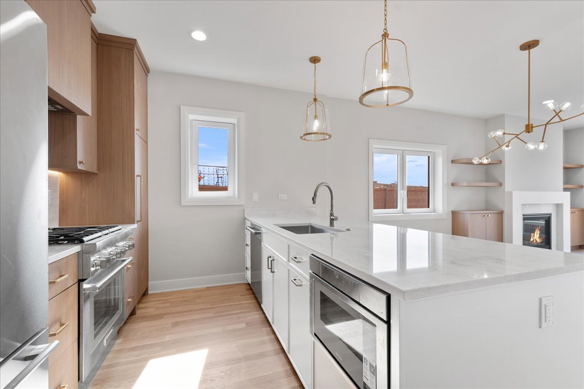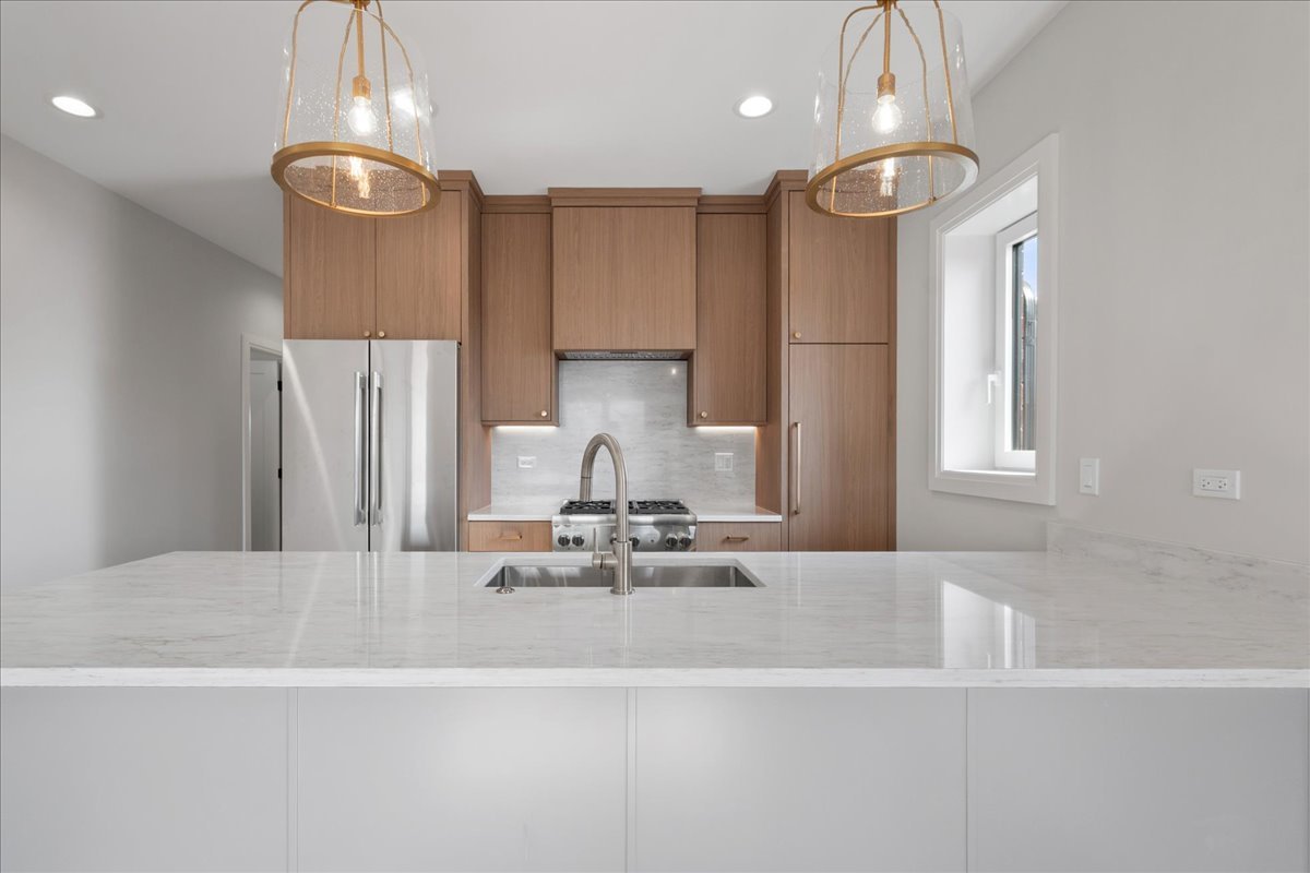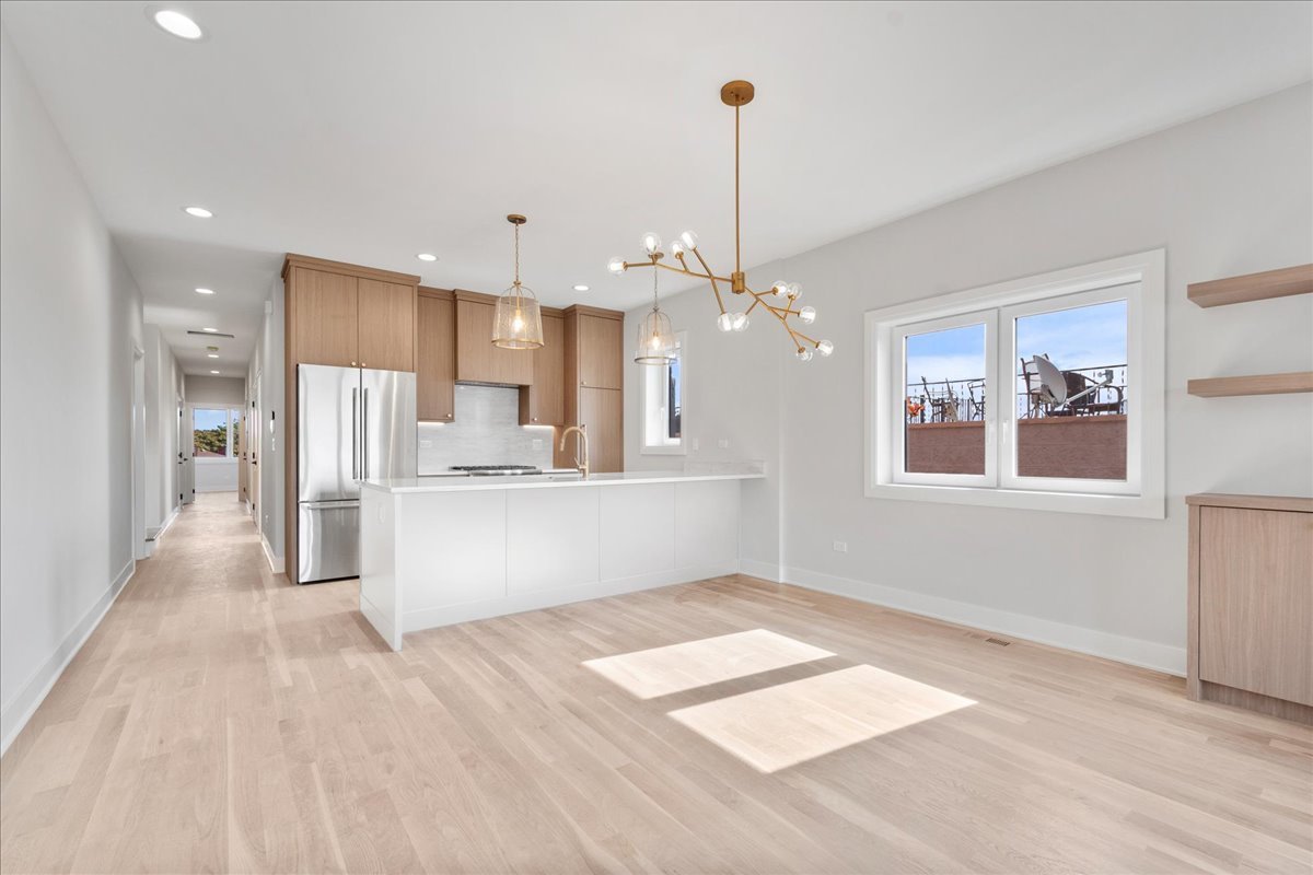 This new construction 3 bed 2 bath in Lincoln Park offers a functional and efficient floor plan with a chef’s kitchen featuring Thermador appliances, custom cabinetry, quartz and porcelain stone, a gas fireplace, paired with custom trim and refined craftsmanship. The primary suite includes a spa-like bath with dual vanities, while additional bedrooms provide generous closet space. Outdoor living includes a front-facing deck, and garage parking is included. Conveniently located in Lincoln Park, the home offers easy access to public transportation, restaurants, shopping, nightlife, the expressway, and more. This spacious simplex combines modern luxury finishes with a practical layout for comfortable city living.