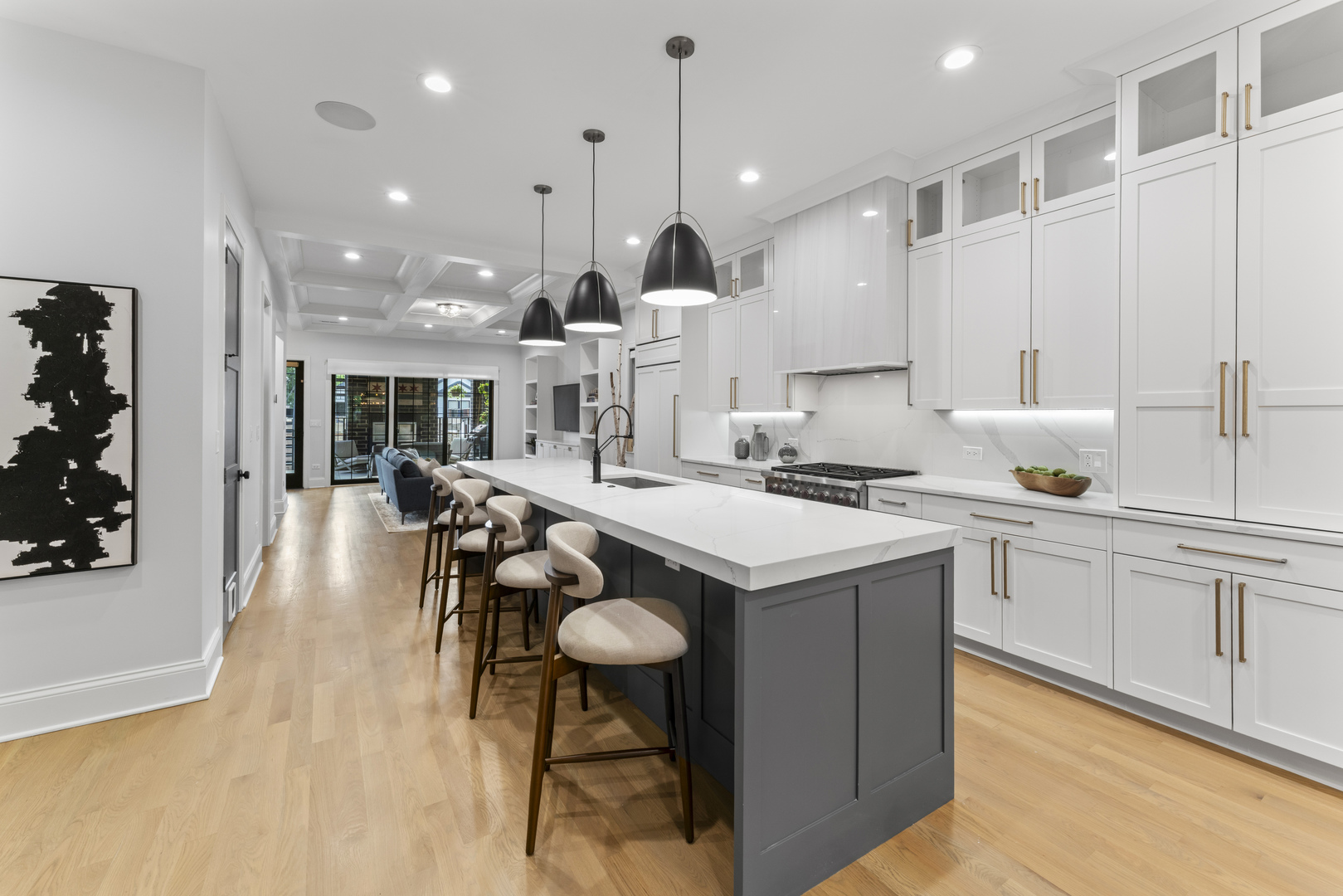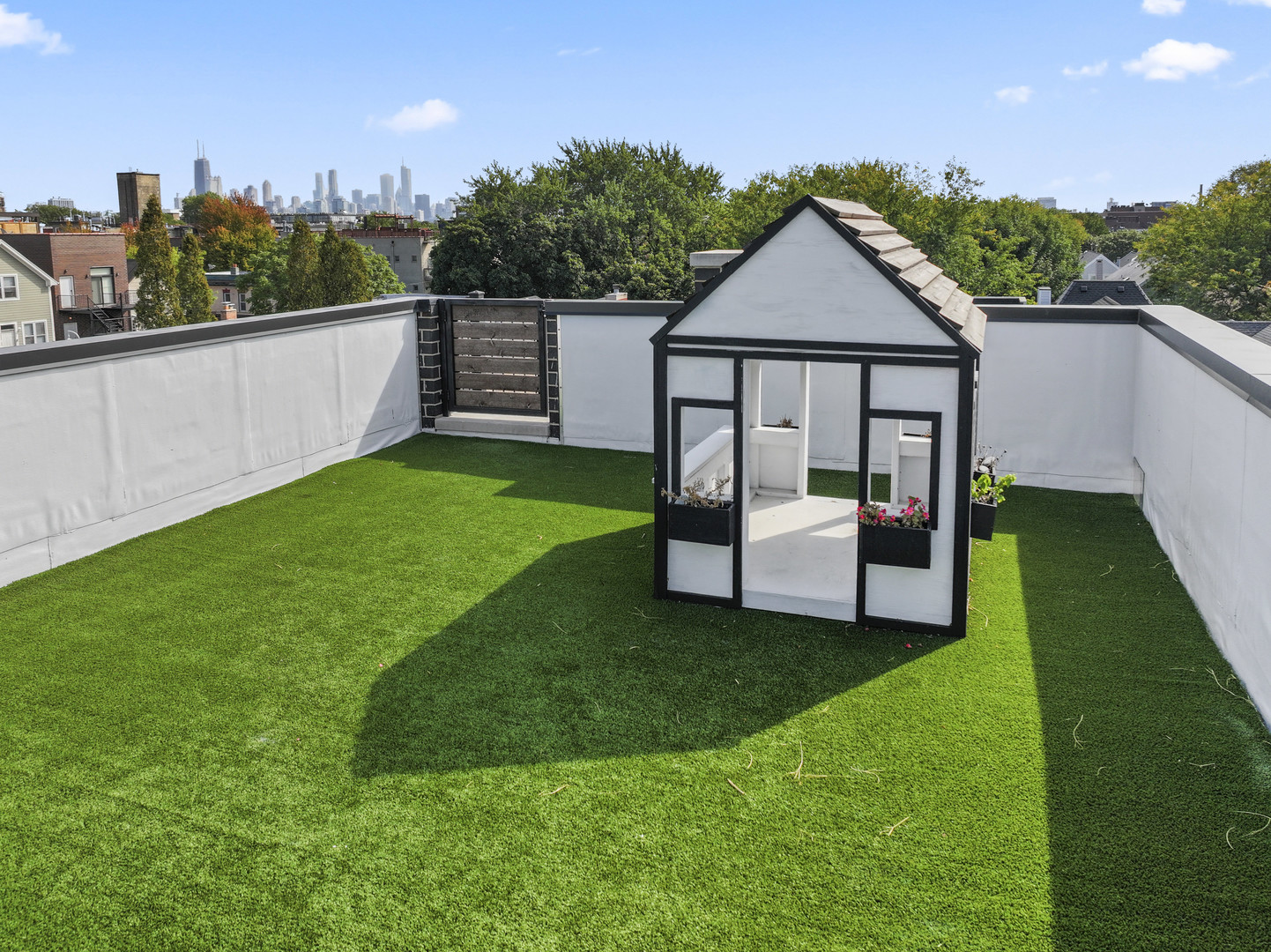 Welcome to 1427 W Wrightwood Ave, Unit 2, a stunning duplex-up in the heart of Lincoln Park. Built in 2020, this boutique full-brick residence lives like a single-family home with 4 spacious bedrooms and 3.5 bathrooms, including three ensuite retreats. The main level offers a seamless open layout anchored by a chef’s kitchen with a massive 12′ quartz island, custom cabinetry, quartz backsplash, and fully-integrated panel appliances. White oak hardwood floors run throughout, adding warmth and elegance. For entertaining, step into the family room that opens to a 300 sq ft covered deck complete with a masonry fireplace, or head upstairs to your private rooftop deck. Outfitted with pavers, gas and water lines, outdoor speakers, lighting, a bar, and a custom pergola, it’s the ultimate setting for summer evenings or gatherings under the skyline. The primary suite is a true retreat with oversized his-and-her walk-in closets and a spa-inspired bath featuring a double vanity, heated floors, steam shower, and separate soaking tub. Additional bedrooms provide generous space with flexible use for an office, den, or playroom. Located in one of Chicago’s most sought-after neighborhoods, you’re just moments from parks, shops, dining, and easy access to transit. Modern design, outdoor living, and Lincoln Park convenience – this home has it all.