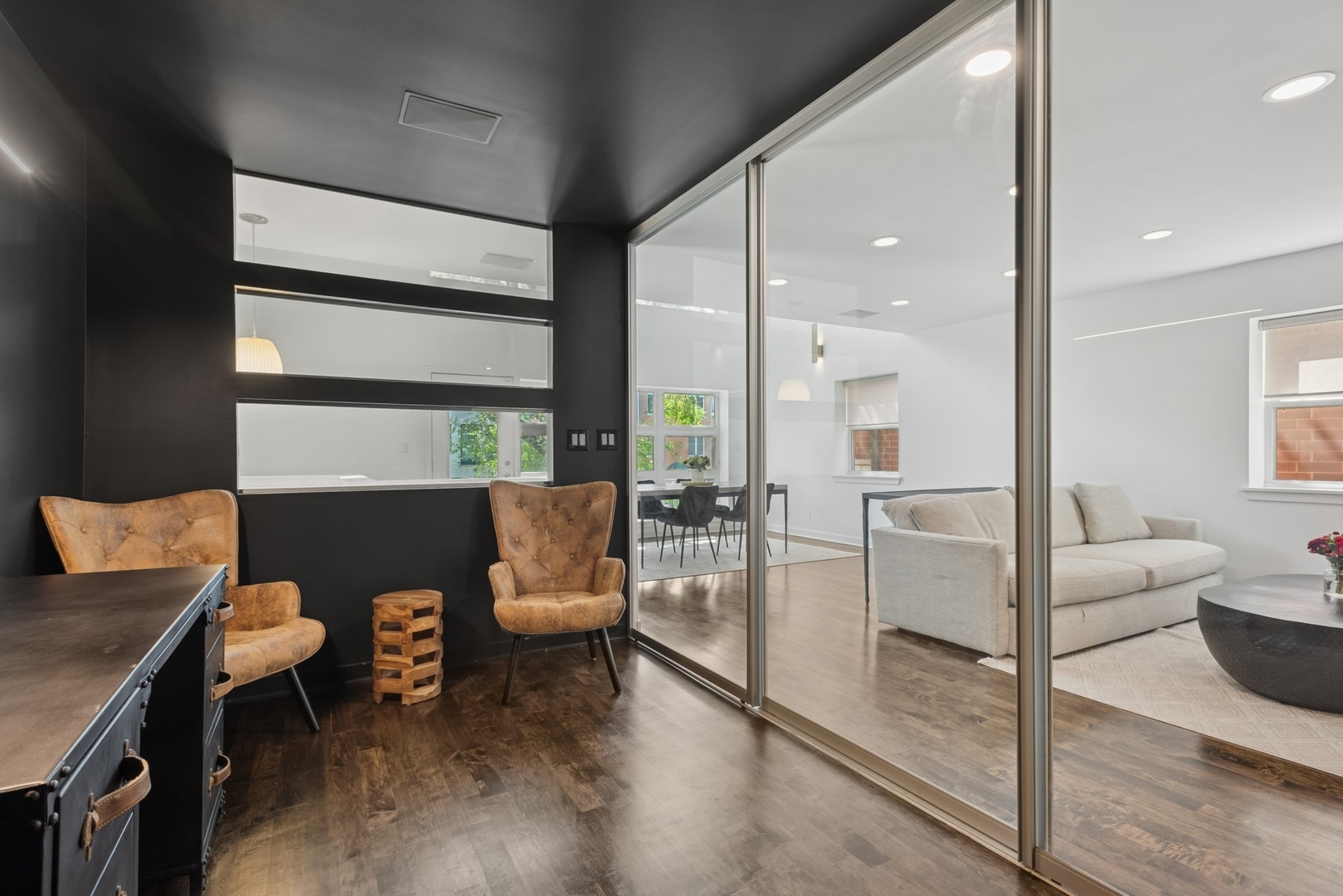 Situated on an extra-wide 31′ lot, this expansive 2,400 sq ft duplex truly lives like a single-family home. With 2 bedrooms, 3 full bathrooms, an glass enclosed den (perfect as a home office or guest space), and a large family room, this thoughtfully designed layout offers both comfort and flexibility. The main level welcomes you with a living room featuring a dramatic two-story wall of windows and direct access to a spacious front terrace-ideal for entertaining. The newly refreshed kitchen includes brand new appliances, and a modern touch, flowing seamlessly into a rear deck overlooking the shared yard. A large family room and dining space with an enclosed den, and a full bathroom complete the main level. Upstairs, the primary suite is a true retreat with vaulted ceilings, a walk-in closet, and a spa-like bathroom with a soaking tub, open shower, and skylight. The second bedroom is generously sized with its own full bath, plus a large laundry room, extra storage, and a third private deck round out the upper level. The home also includes a private one-car garage, shared yard space, and low assessments. All of this is located just steps from Lincoln Park, the Zoo, the Brown and Red Line trains, top-rated restaurants on Wells Street, and shopping along Armitage.