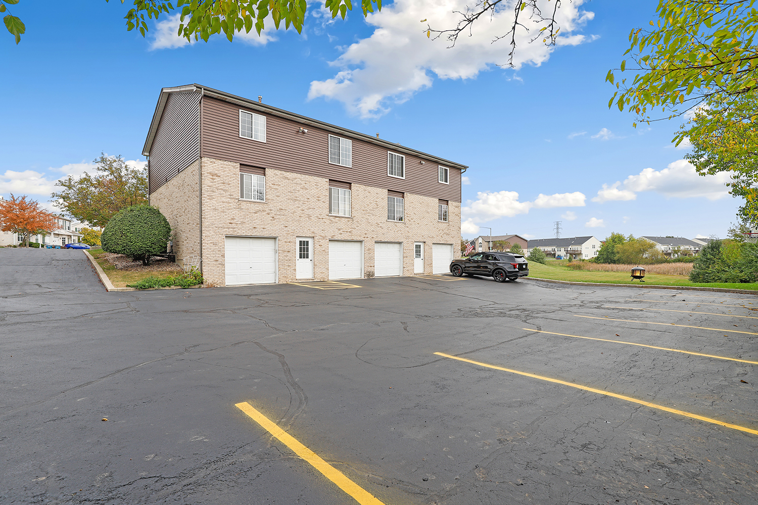 Bright and sunny second-floor condo in desirable Autumn Ridge! This spacious 2-bedroom, 1-bath home features an open layout with a large living room flowing into the dining area with vaulted ceilings. Wood laminate flooring throughout most of the home adds warmth and style. The kitchen offers stainless steel appliances, an island with a breakfast bar, ceramic tile flooring and a convenient laundry closet with extra storage. The primary bedroom includes a walk-in closet, while the second bedroom features a large closet as well. The bathroom with soaking tub is accessible from both the primary bedroom and the hallway. Enjoy beautiful views from the bedroom and kitchen windows with no rear neighbors. Recent updates include Furnace & A/C (2024), Water Heater (2020), and Appliances (2020). Building improvements include new roofing (2021) and new siding (2023). Additional highlights: 1-car attached garage, lower-level storage unit, and fresh paint throughout. Zoned to highly rated Lockport Township High School East. Convenient location off Route 30 with easy access to I-55 and I-80, close to shopping, dining, and more!