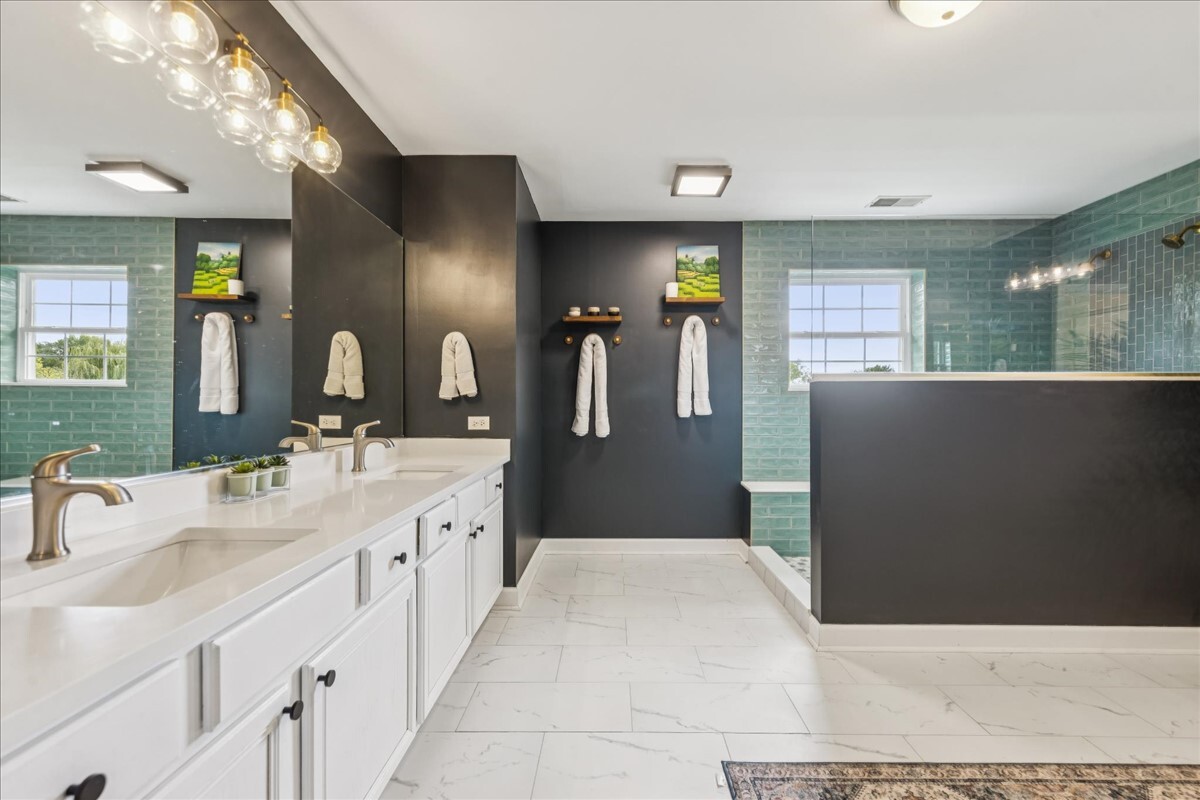 Enjoy privacy and space in this quiet cul de sac setting, where nearly 7,000 square feet of bright, functional living space support modern living and exceptional entertaining. A grand two story foyer opens to formal living and dining rooms and a private main floor office that can serve as a sixth bedroom, paired with a full bath. The sunlit family room with gas fireplace flows into the chef’s kitchen featuring a large center island, quartz countertops, high end appliances, a walk in pantry, and direct access to the new composite deck, great for entertaining. With no homes behind the property, the backyard offers uncommon privacy and open views. Upstairs, the spacious primary suite includes a sitting area, a beautifully remodeled bathroom with a double walk in shower, and a generous walk in closet. Four additional bedrooms share two updated Jack and Jill baths. The walkout lower level adds a large recreation area, full bath, and a flexible room perfect for an office, gym, or guest space, with sliding doors to a custom paver patio. Additional features include a three car garage with a 240 volt EV outlet, a main floor laundry and mudroom, and access to neighborhood walking trails and a park. Located in Barrington 220 schools and minutes from downtown Barrington, Metra, and I 90. Quick close possible.