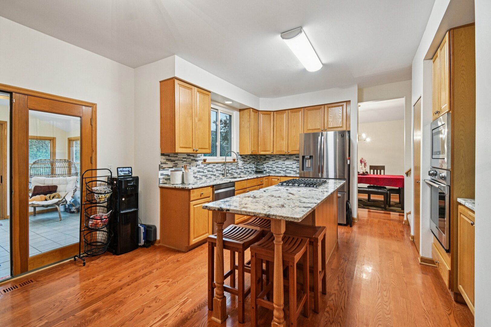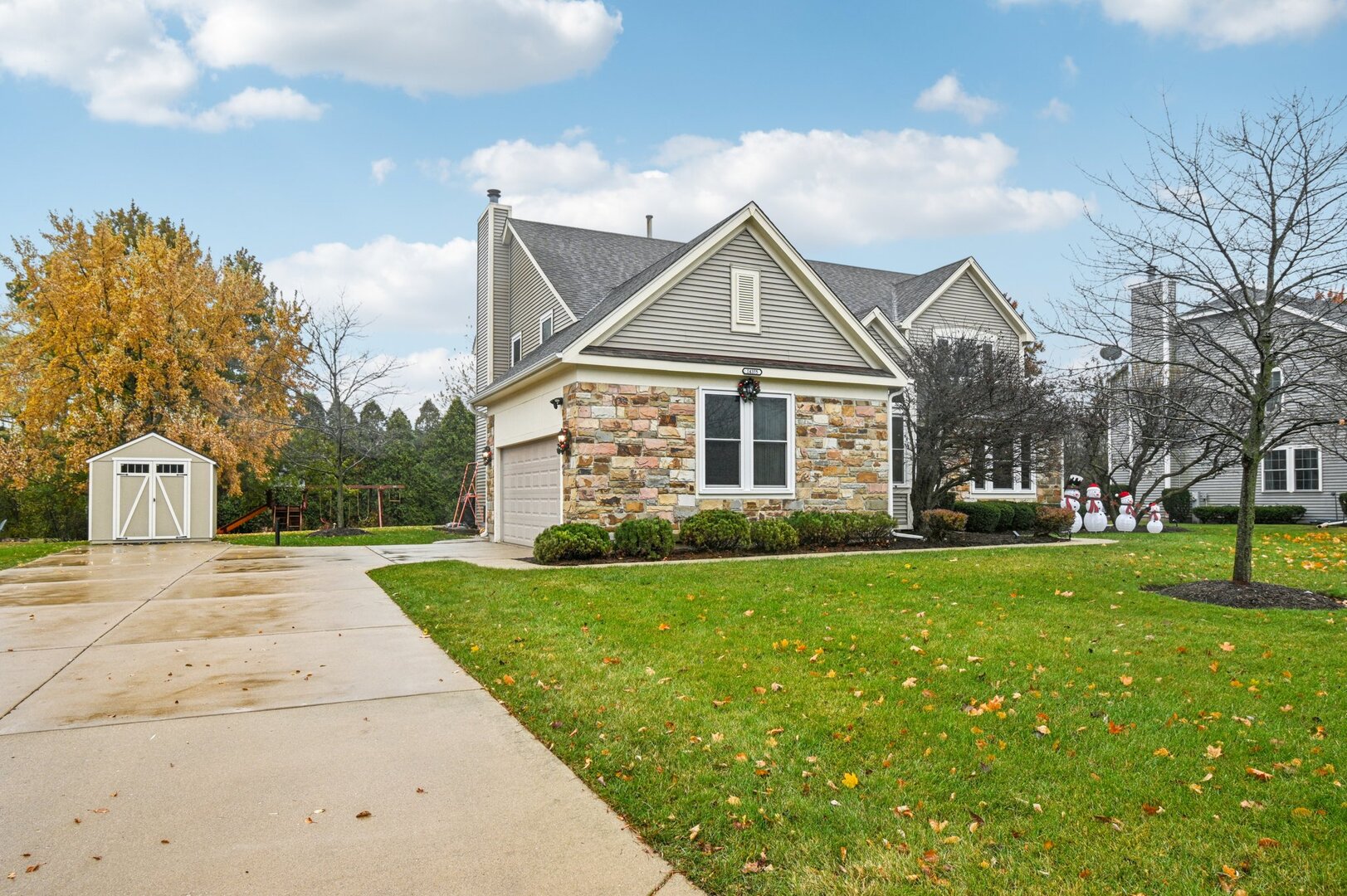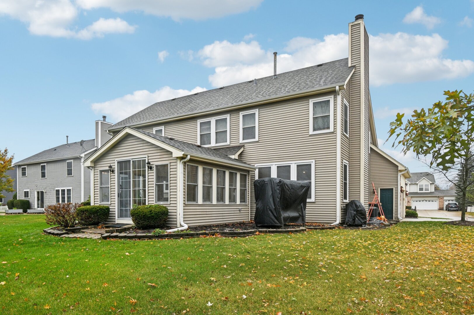 Welcome to this stunning 4-bedroom, 3.5-bath home in Libertyville’s sought-after Forest Cove community! A two-story foyer with hardwood floors sets the tone as it leads you through the main level. From the foyer, step into a bright and spacious living room, which flows into a separate dining room and on to the kitchen. The kitchen boasts beautiful granite countertops, stainless steel appliances, a breakfast bar/island, and a cooktop seamlessly built into the island. Adjacent to the kitchen, the family room features a charming stone fireplace. French doors open to a sunlit study with high ceilings, while the sunroom offers a relaxing space with views of the expansive backyard. A convenient laundry/mudroom completes the first floor. Upstairs, double French doors lead to the primary suite, featuring a vaulted ceiling, full bath, and walk-in closet. Three additional carpeted bedrooms and a spacious shared bath with dual sinks complete the upper level. The finished basement extends your living space with a large recreation room, a full bath, and an additional bedroom. Enjoy additional storage space as well. Recent updates include a new HVAC system and furnace (2024) and a new wood shed (2024). Located just minutes from downtown Libertyville’s shops and restaurants, this home is part of the award-winning Libertyville High School District. Don’t miss your chance, this one won’t last!