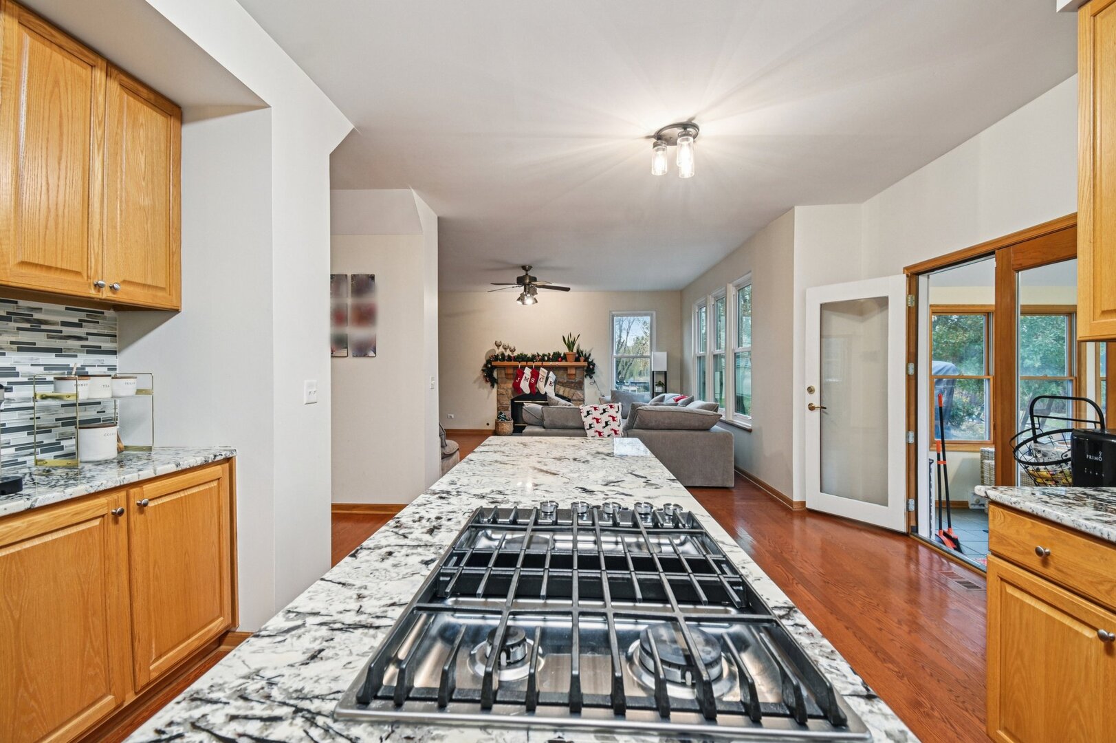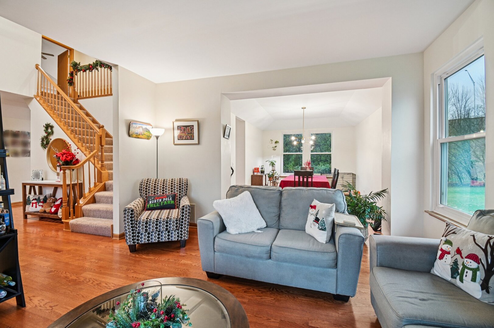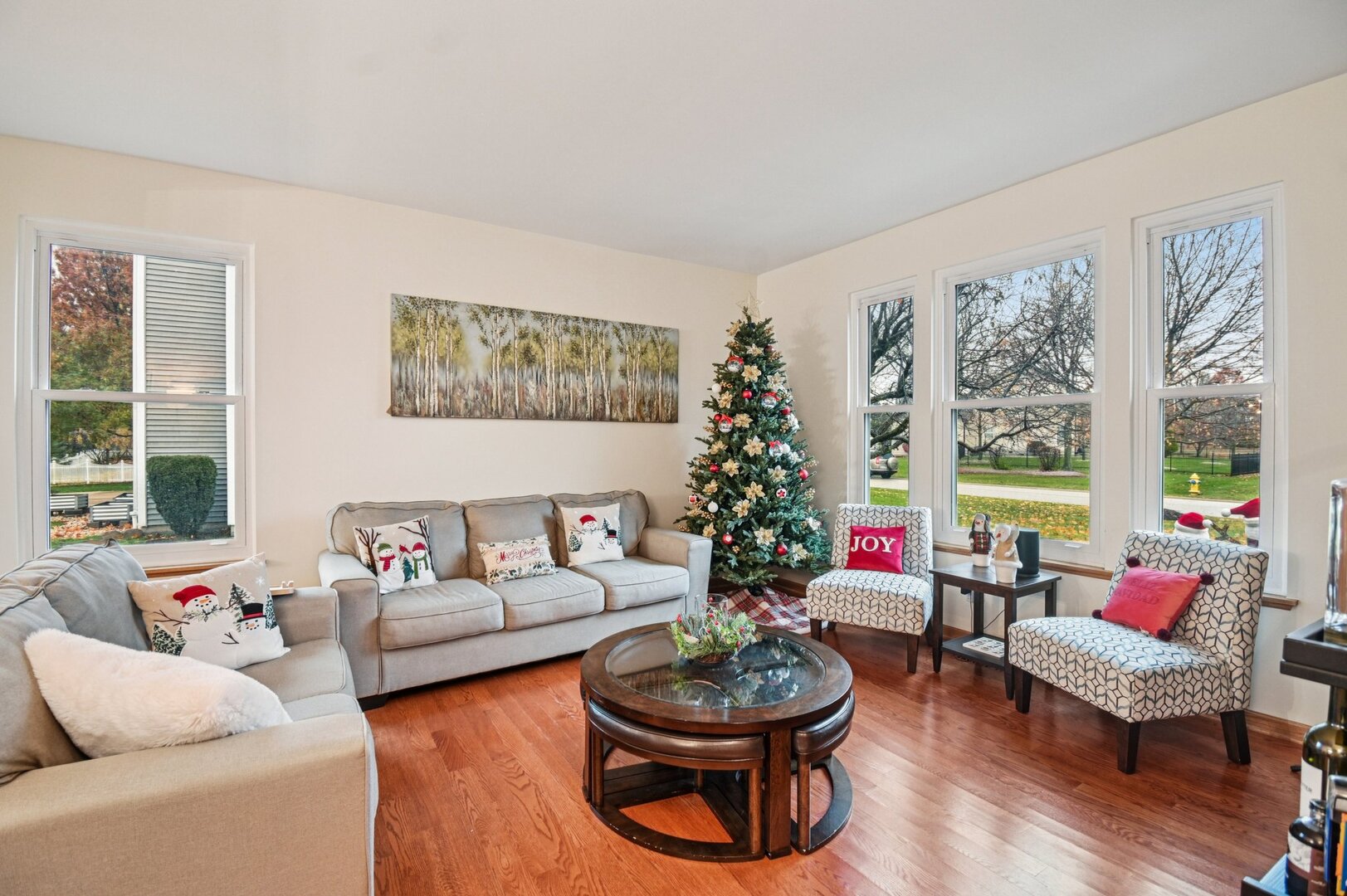 Welcome to this stunning 4-bedroom, 3.5-bath home in Libertyville’s sought-after Forest Cove community! A two-story foyer with hardwood floors sets the tone as it leads you through the main level. From the foyer, step into a bright and spacious living room, which flows into a separate dining room and on to the kitchen. The kitchen boasts beautiful granite countertops, stainless steel appliances, a breakfast bar/island, and a cooktop seamlessly built into the island. Adjacent to the kitchen, the family room features a charming stone fireplace. French doors open to a sunlit study with high ceilings, while the sunroom offers a relaxing space with views of the expansive backyard. A convenient laundry/mudroom completes the first floor. Upstairs, double French doors lead to the primary suite, featuring a vaulted ceiling, full bath, and walk-in closet. Three additional carpeted bedrooms and a spacious shared bath with dual sinks complete the upper level. The finished basement extends your living space with a large recreation room, a full bath, and an additional bedroom. Enjoy additional storage space as well. Recent updates include a new HVAC system and furnace (2024) and a new wood shed (2024). Located just minutes from downtown Libertyville’s shops and restaurants, this home is part of the award-winning Libertyville High School District. Don’t miss your chance, this one won’t last!