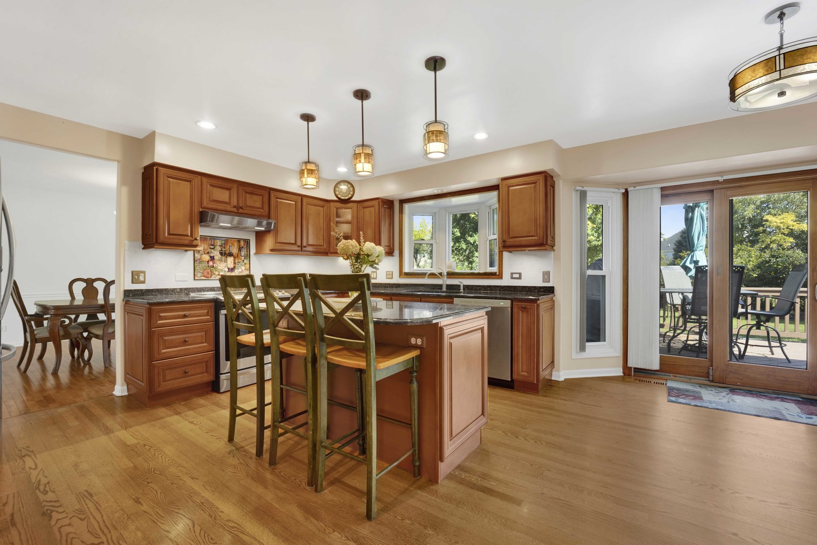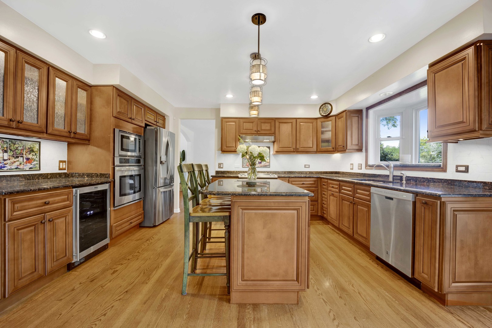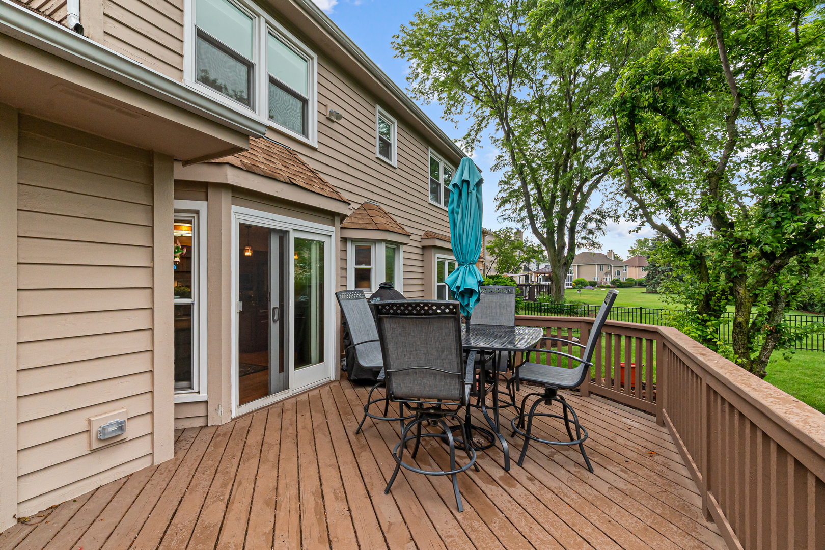 Welcome to 1440 Monarch Circle, an exquisitely maintained 5-BEDROOM, 4-BATHROOM estate nestled within the prestigious White Eagle Club of Naperville. From the moment you enter the grand foyer, you’re welcomed by soaring vaulted ceilings and gleaming refinished hardwood floors that extend throughout the main level. Thoughtfully designed for both elegance and livability, this home offers a flexible layout with a private FIRST-FLOOR BEDROOM AND FIRST FLOOR FULL BATH, perfect for guests or multigenerational living. The chef’s kitchen is a masterpiece of form and function, featuring high-end finishes, a WALK-IN PANTRY, ample storage, ALL-NEW APPLIANCES (2019), and a seamless flow into the expansive family room with skylights that flood the home with natural light, ideal for refined entertaining. The fully finished basement impresses with a massive recreation space, custom bar, a second pantry, ABUNDANT STORAGE, a full bath, and a pool table and foosball that will stay, offering both comfort and versatility for hosting and gatherings. Upstairs you’ll find plush carpeting (2025) and FOUR SPACIOUS BEDROOMS, with walk in-closets. Outside, unwind in the professionally landscaped, fully fenced backyard-a private oasis with mature trees, IRRIGATION SYSTEM, and a large deck perfect for alfresco dining and entertaining. A 3-CAR SIDE-LOAD GARAGE, meticulous updates throughout, and access to White Eagle’s unmatched amenities, including a clubhouse, pool, tennis courts, newly added PICKLE BALL COURTS, and country club access, further elevate the lifestyle offered. Families will appreciate being within walking distance of highly rated White Eagle Elementary School (K-5), complete with an adjacent sports park. The community also offers a 24-HOUR SECURITY SYSTEM, ensuring peace of mind. This is a rare opportunity to own a truly distinguished home in one of Naperville’s most desirable and amenity-rich communities. Kitchen remodel (2019) Appliances: refrigerator, stove, microwave, second oven, wine fridge, dishwasher GENTLY USED (2019) Furnace (2020) Air conditioning (2016) Fully finished basement (2009) Basement stairs carpet (2019) Staircase & landing carpet (2025) Roof replacement (2014) Full window replacement (2014) Backyard fencing (2014) Mudroom storm door replacement (July 2025)