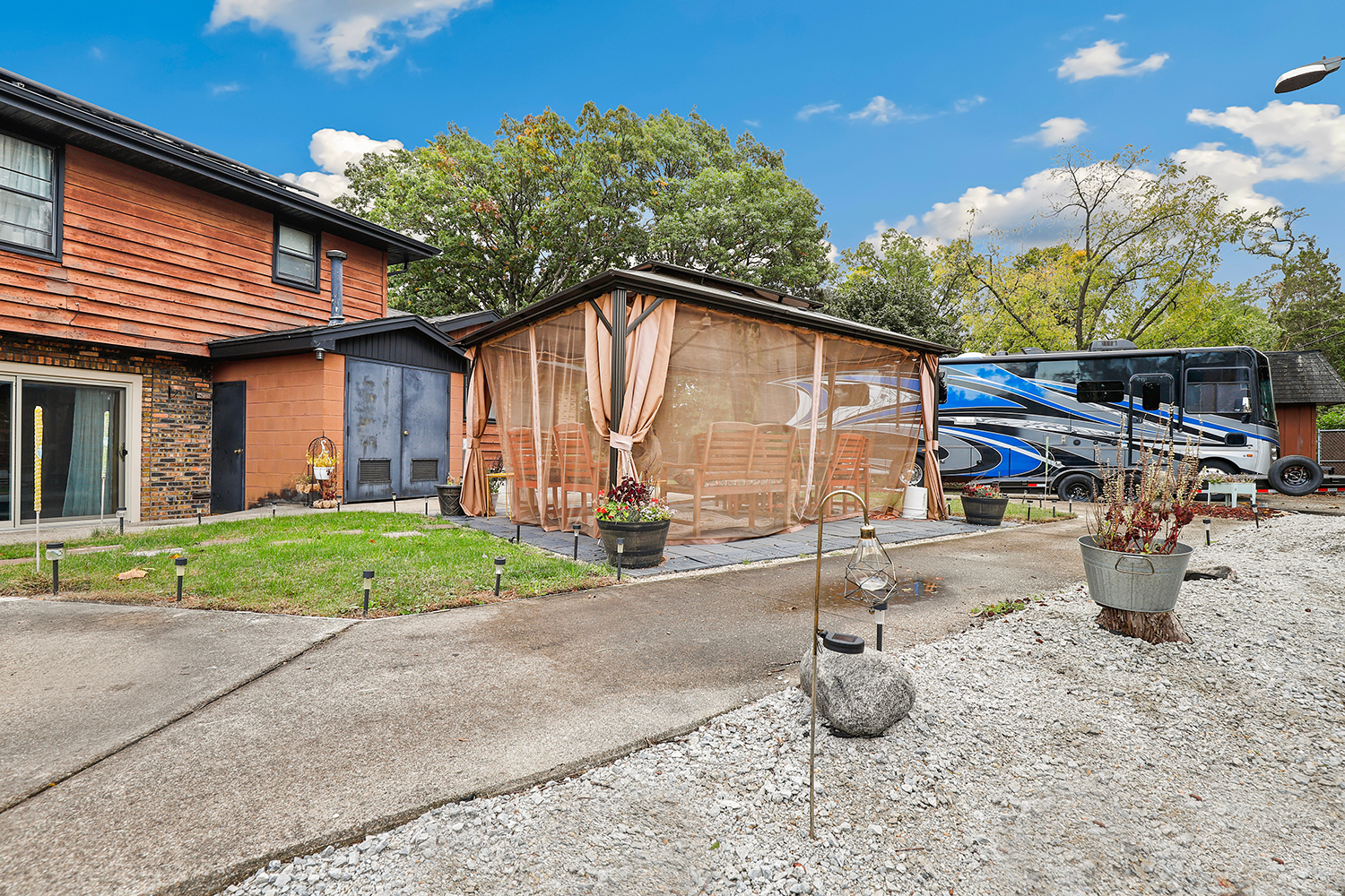 Welcome to this beautifully maintained, custom split-level home perfectly situated on a spacious double lot in Dolton! This one-of-a-kind property offers 5 levels of luxury living space with 6 car heated garage parking and a huge gated yard! The inviting front porch and double-door entry set the tone for this warm and welcoming residence. Step inside to a generous foyer that opens into the cozy family room, anchored by a timeless brick fireplace, spiral staircase to the lower level and access to the back patio and garage. The main level also includes a stair-free bedroom option and half bath for added convenience. Level 2 provides formal entertaining space with both living and dining rooms. The adjacent eat-in kitchen boasts custom wood floors, an abundance of cabinet space, double ovens and a large bay window with a charming built-in breakfast nook. Upstairs, unwind in the elegant primary suite featuring double closets and a private ensuite bath. Two additional bedrooms and another full bathroom complete the upper level. Gather for game day or movie night in the finished lower level with retro recreation room, built-in wet bar, and powder room. Even more living space can be found in the finished sub-basement with flex room, laundry and storage. Recent improvements include remodeled bathrooms, new carpet throughout, a remodeled family room, and fresh interior paint. The furnace, AC, water heater, and appliances were all replaced in 2018. Outside, enjoy the private, fully fenced yard with a large screened gazebo, an ideal setting for outdoor entertaining or quiet evenings. Car enthusiasts will appreciate the attached heated 2 car garage, the detached 2-story 35×25 heated 4 car garage with 12 foot door and storage loft plus an exterior RV/boat parking pad. This home is conveniently located near Dolton Park District and Beaubien Woods Forest Preserve alongside many dining and shopping options. Come see this unique and meticulously-maintained home today and imagine the possibilities it holds for you!