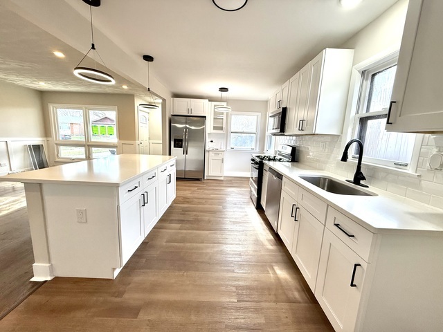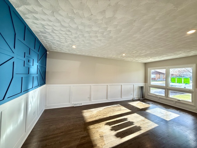 Gorgeous rehabbed tri level 3 bed 1.5 bath home in Dolton. Walk into this open concept level of the home to freshly painted walls, modern light fixtures, and bright natural light coming in from the windows in the living/dining rooms. Enjoy cooking meals while entertaining others at the breakfast bar island in the brand new kitchen featuring white shaker cabinetry with black onyx hardware, quartz countertops, subway tile backsplash and brand new stainless steel appliances to finish off the look. the wainscoting and modern accent wall in the attached dining room. There is a half bath off the kitchen. The second floor boasts three generous sized bedrooms with ample closet space and full bath. Enjoy additional entertaining space in the lower level with a family room and separate area for laundry and plenty of storage. Fully fenced in backyard with a 2.5 car detached garage. Plenty of outdoor entertaining space and extra parking with the side drive. TRULY A MUST SEE!