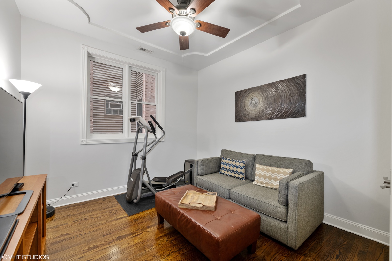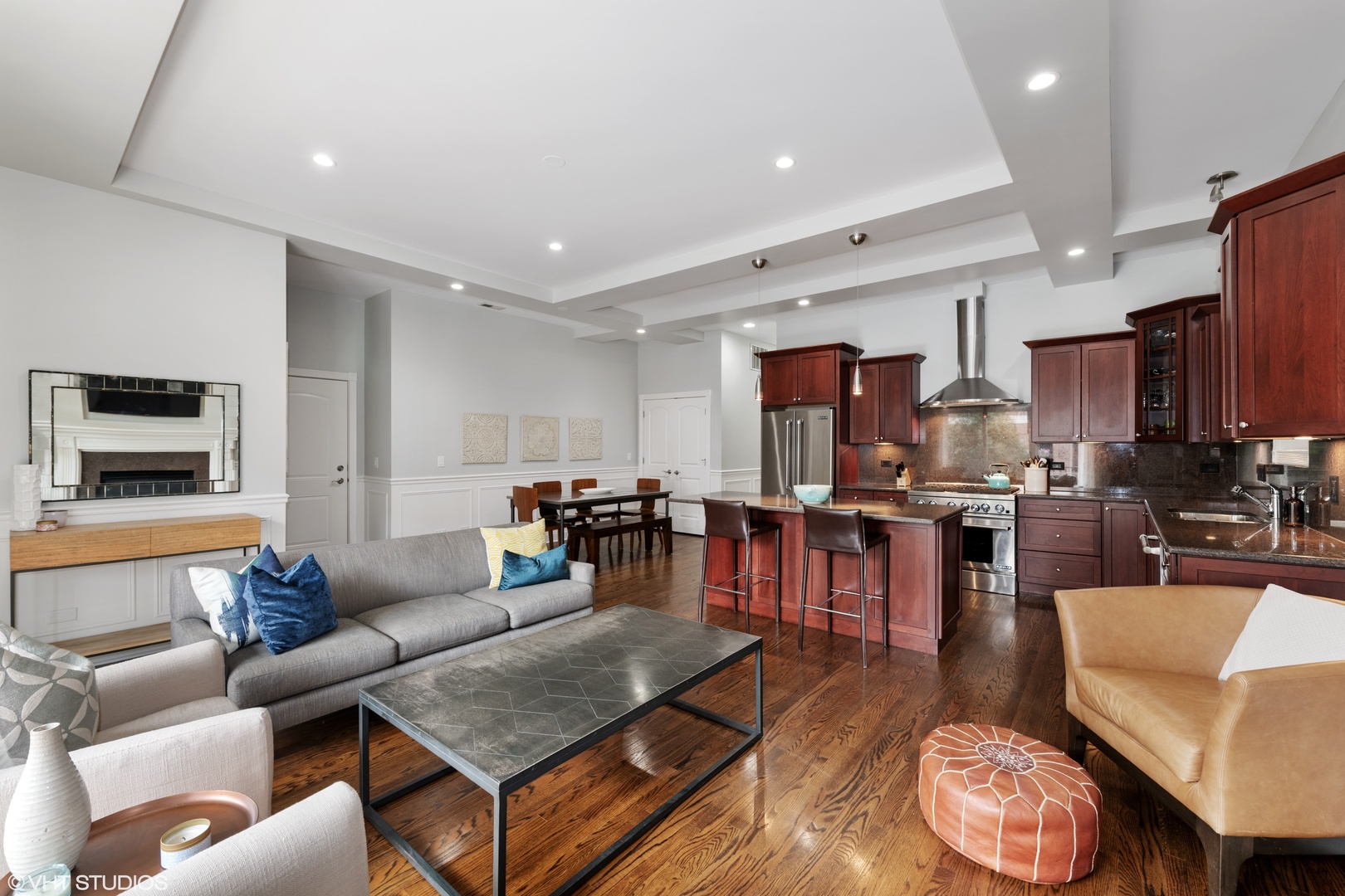 Expansive 3 bed/2 bath condo in rare seven unit elevator building. Walk right into this impressive extra wide living room with tray ceiling detail and wainscoting throughout. Distinguished dark stain hardwood floors bolster from room-to-room. Updated kitchen with high-end stainless steel appliances and solid surface counters and backsplash. Recently freshly painted in cool gray tones. Notable master suite with spa caliber master bath with steam shower, jacuzzi tub and double vanity. Large bedroom sizes. Full size washer & dryer. Additional storage unit on same level as condo. Two outdoor spaces: extra wide front balcony off living room and cozy back deck off primary bedroom. Walking distance to new Whole Foods, Southport shops & restaurants, Southport Brown Line and Belmont Red Line and Burley School. Attached garage parking included in price.
