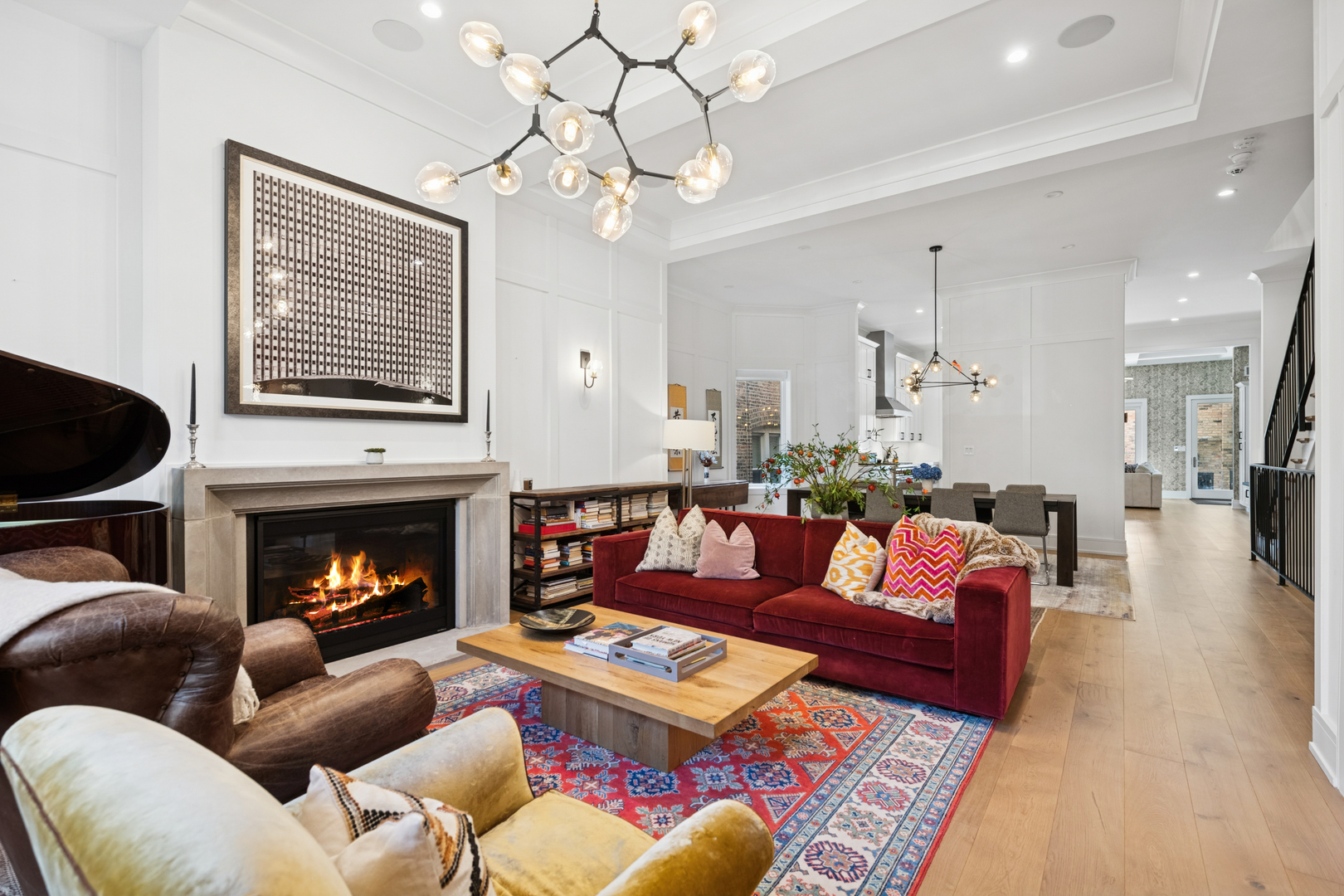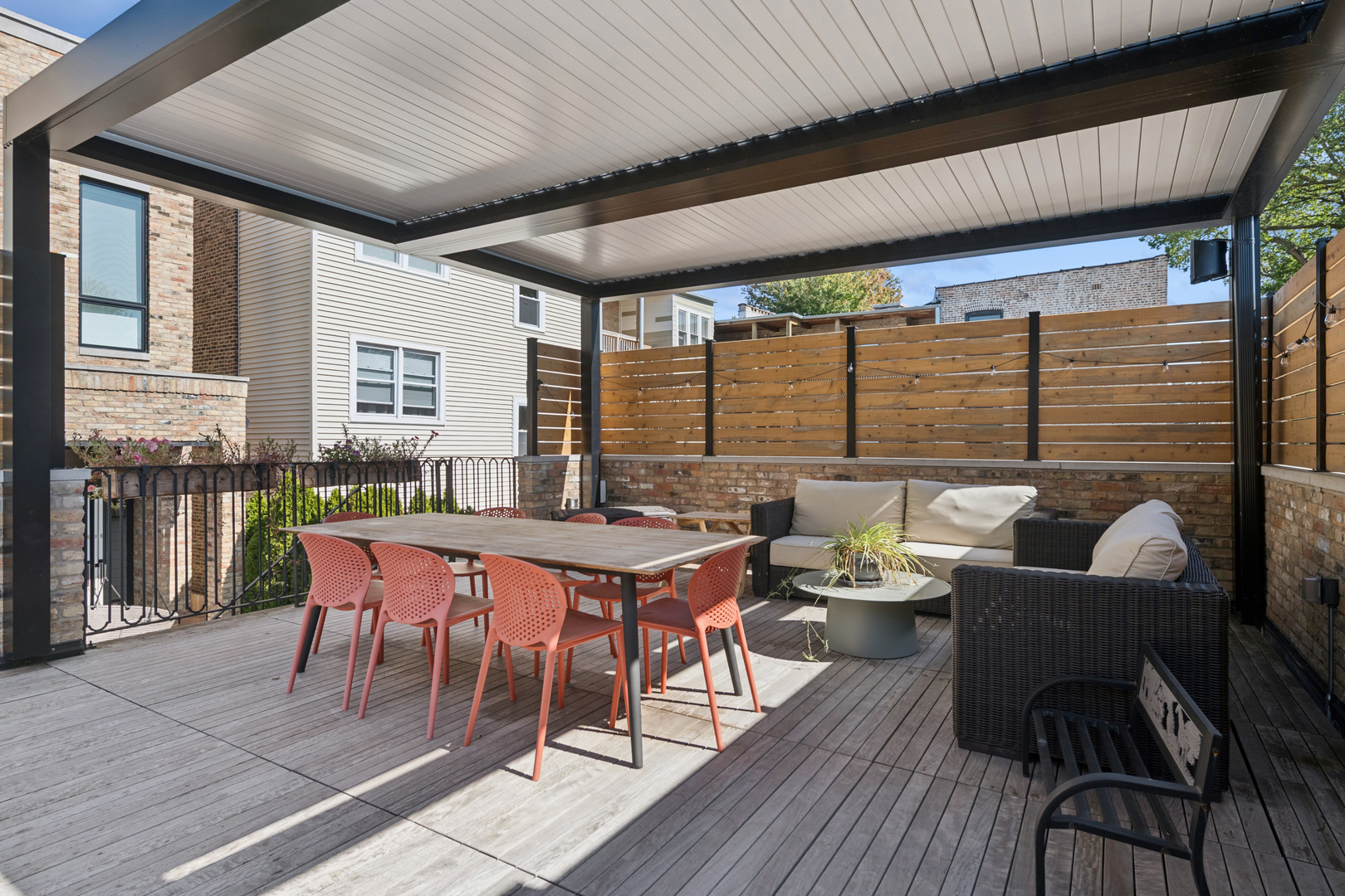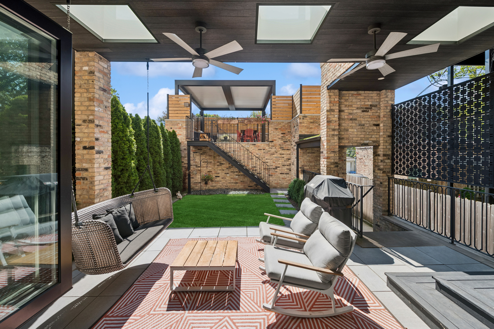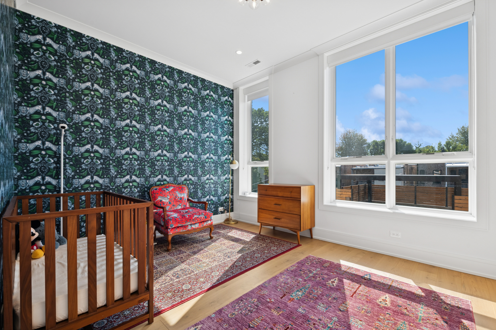 One of a kind, masterfully crafted, stand out 5 bedroom residence on one of the most coveted streets in the main heart of Andersonville. A half block east of Clark Street and steps to the pulse of the neighborhood. Another exquisite Tylo Development Partners LLC single family features 3 bedrooms on one floor plus a guest or in-law suite on lower level, 4.1 decadent bathrooms. This combination of classic contemporary style, 11′ ceilings, incredible natural light sources, 2500 square feet of private outdoor space lends itself both to an entertainer’s dream home and a very family friendly experience to raise children with bedrooms on one floor and conducive layout with an open kitchen concept and adjacent “play spaces”, easy access to first level backyard with some grass set on a 30′ wide lot. Impressive, distinct and all masonry and limestone front, double stacked, oversized bay windows with motorized shades, all restored Chicago brick sides walls. Crisp color palette for fine art display and beautiful and fun wallpaper sprinkled throughout the rooms of this home. Ring System security with locked front gate, Smart Home System. Foyer greets, gracious formal living room with fireplace outfit with heavy limestone mantle and hearth. First floor powder room. Classic contemporary wall wainscoting, coffered ceilings, all 7″ wide plank, real “tongue and groove” hardwood floors throughout, sumptuous 5,400 square feet of interior living space. Open kitchen concept with separate and designated dining room. Gourmet kitchen featuring massive 14′ island, built in sink, comfortable seating for five, mitered quartz counters in white with grey veining, slab backsplash, Subzero, high end and custom all wood cabinetry dressed in white and walnut, separate pantry, black gold hardware. Six burner, high output Wolf range with double oven, vented culinary hood, stainless steel appliance package. Family room continues the kitchen space with fireplace and extra cabinetry including dry bar, wine and beverage coolers, windows on on three sides and collapsable panel of glass “accordion style” with a screen leading out to first floor outdoor space with pavers and grass, 2.5 car all brick garage with EV charger, epoxy floor, roof top deck above. Cohesive custom light fixtures, chandeliers, ceiling fans, romantic iron patterned staircase, wood treads, laundry room with sink, folding space, side by side washer and dyer, cabinetry in the middle of the second floor. Ensuite bathrooms. The sumptuous primary bedroom includes two walk-in closets, a shoe closet, crown moldings and tall, detailed baseboards throughout, fireplace. Primary bathroom features exquisite marble patterned floor, separate, oversized vanities with quartz counters, free standing soaking tub, separate shower with rain, toilet room, and window for a natural light source. Four additional, great sized bedrooms and three additional bathrooms dressed in finest quartz and marbler stone. Full floor plate lower level offers home theatre room and play space for children, a second laundry room, additional storage, and wet bar. Every closet in this home has custom built ins. The roof top deck is decadent IPE, total privacy above the neighbors, fireplace, view of the Chicago Skyline, two remote controlled retractable pergolas. The Brilliant SMART Home Control Home System features 27 speakers, Wi-Fi 6, nine camera and lighting system security system and remote access. Newly added water filtration system in addition to water softener, reverse osmosis, window treatments, landscaping renovation, sump pump backup battery, water alarm sensors, Reme Halo air purification. Bring your most discriminating buyer. This is the crown of Andersonville and the season.