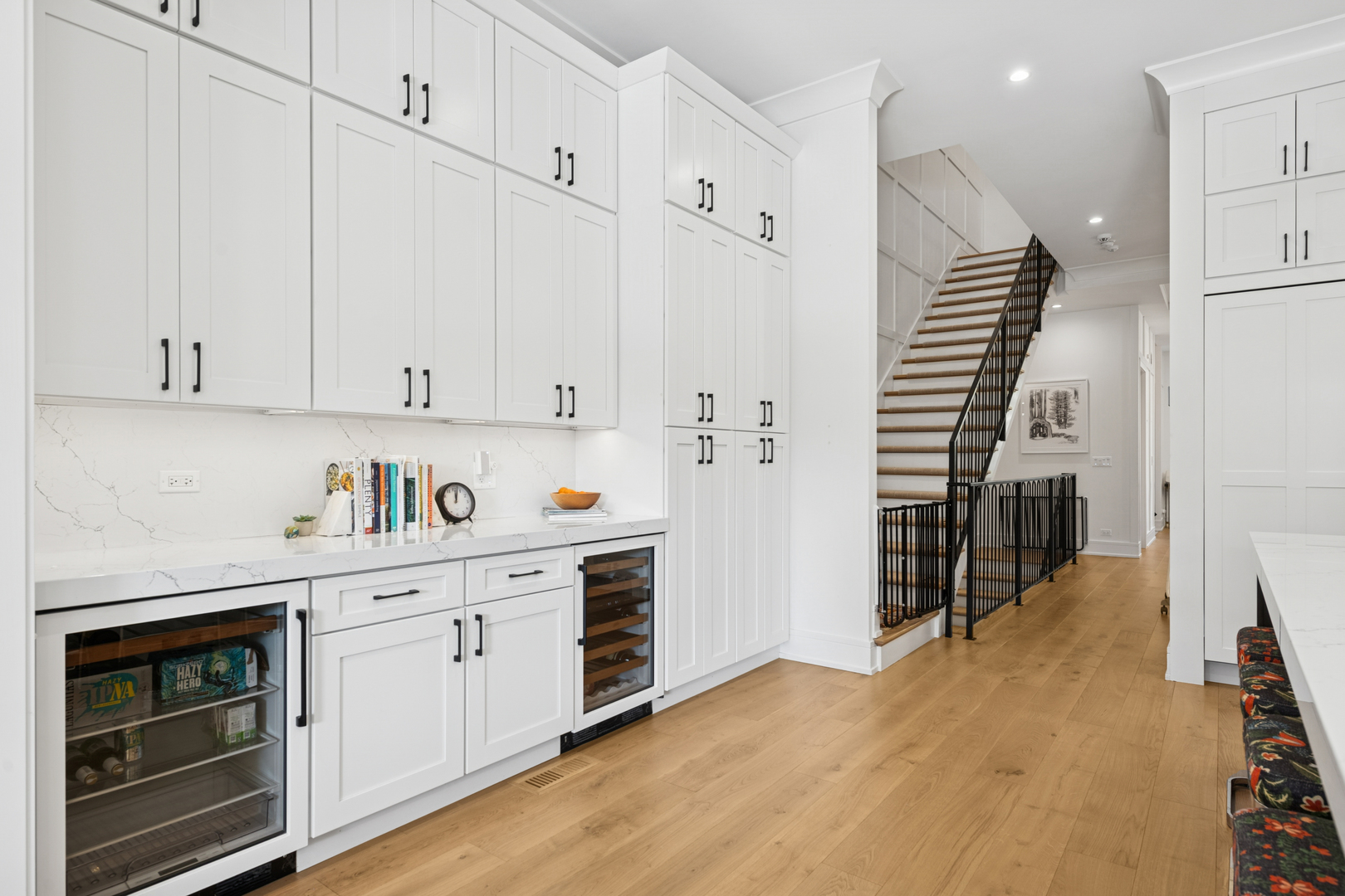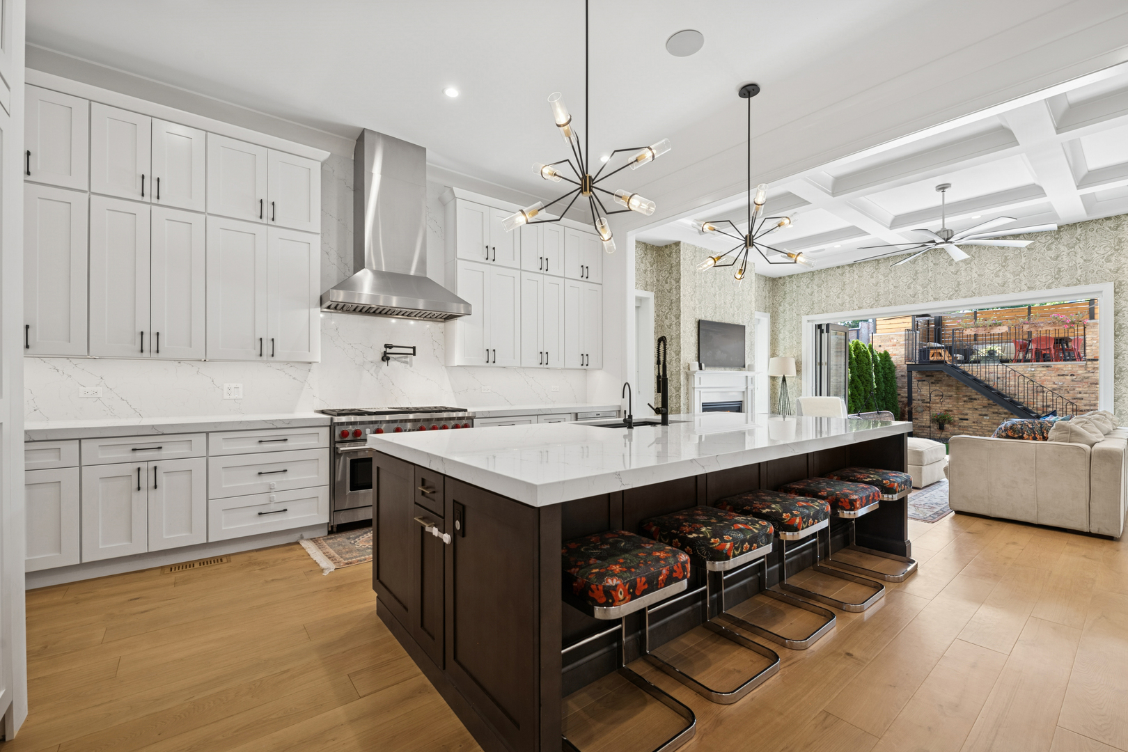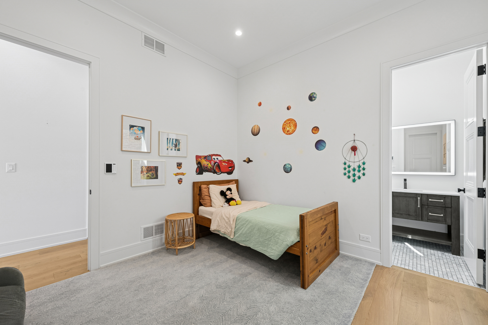 One of a kind, masterfully crafted, stand out 5 bedroom residence on one of the most coveted streets in the main heart of Andersonville. A half block east of Clark Street and steps to the pulse of the neighborhood. Another exquisite Tylo Development Partners LLC single family features 3 bedrooms on one floor plus a guest or in-law suite on lower level, 4.1 decadent bathrooms. This combination of classic contemporary style, 11′ ceilings, incredible natural light sources, 2500 square feet of private outdoor space lends itself both to an entertainer’s dream home and a very family friendly experience to raise children with bedrooms on one floor and conducive layout with an open kitchen concept and adjacent “play spaces”, easy access to first level backyard with some grass set on a 30′ wide lot. Impressive, distinct and all masonry and limestone front, double stacked, oversized bay windows with motorized shades, all restored Chicago brick sides walls. Crisp color palette for fine art display and beautiful and fun wallpaper sprinkled throughout the rooms of this home. Ring System security with locked front gate, Smart Home System. Foyer greets, gracious formal living room with fireplace outfit with heavy limestone mantle and hearth. First floor powder room. Classic contemporary wall wainscoting, coffered ceilings, all 7″ wide plank, real “tongue and groove” hardwood floors throughout, sumptuous 5,400 square feet of interior living space. Open kitchen concept with separate and designated dining room. Gourmet kitchen featuring massive 14′ island, built in sink, comfortable seating for five, mitered quartz counters in white with grey veining, slab backsplash, Subzero, high end and custom all wood cabinetry dressed in white and walnut, separate pantry, black gold hardware. Six burner, high output Wolf range with double oven, vented culinary hood, stainless steel appliance package. Family room continues the kitchen space with fireplace and extra cabinetry including dry bar, wine and beverage coolers, windows on on three sides and collapsable panel of glass “accordion style” with a screen leading out to first floor outdoor space with pavers and grass, 2.5 car all brick garage with EV charger, epoxy floor, roof top deck above. Cohesive custom light fixtures, chandeliers, ceiling fans, romantic iron patterned staircase, wood treads, laundry room with sink, folding space, side by side washer and dyer, cabinetry in the middle of the second floor. Ensuite bathrooms. The sumptuous primary bedroom includes two walk-in closets, a shoe closet, crown moldings and tall, detailed baseboards throughout, fireplace. Primary bathroom features exquisite marble patterned floor, separate, oversized vanities with quartz counters, free standing soaking tub, separate shower with rain, toilet room, and window for a natural light source. Four additional, great sized bedrooms and three additional bathrooms dressed in finest quartz and marbler stone. Full floor plate lower level offers home theatre room and play space for children, a second laundry room, additional storage, and wet bar. Every closet in this home has custom built ins. The roof top deck is decadent IPE, total privacy above the neighbors, fireplace, view of the Chicago Skyline, two remote controlled retractable pergolas. The Brilliant SMART Home Control Home System features 27 speakers, Wi-Fi 6, nine camera and lighting system security system and remote access. Newly added water filtration system in addition to water softener, reverse osmosis, window treatments, landscaping renovation, sump pump backup battery, water alarm sensors, Reme Halo air purification. Bring your most discriminating buyer. This is the crown of Andersonville and the season.