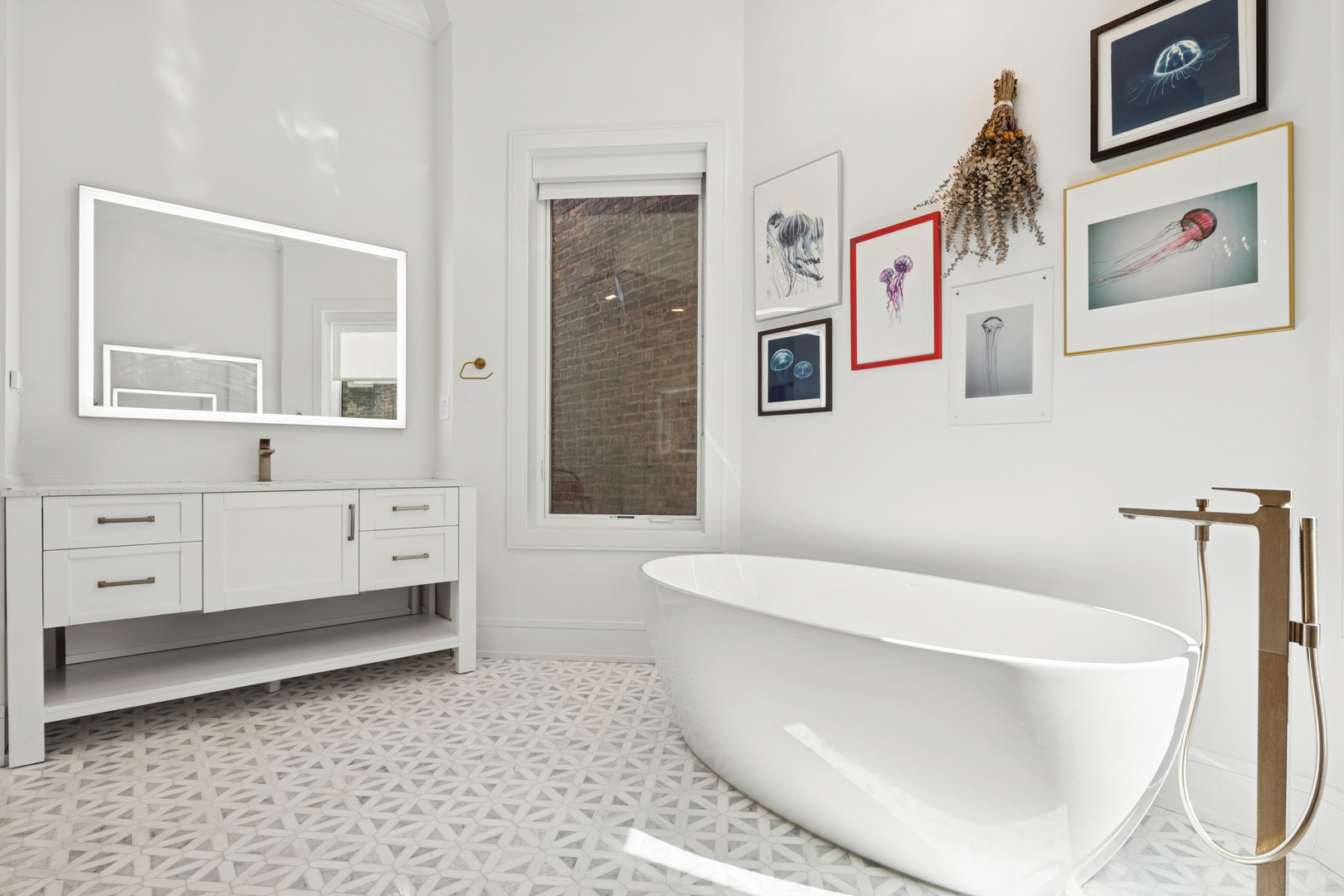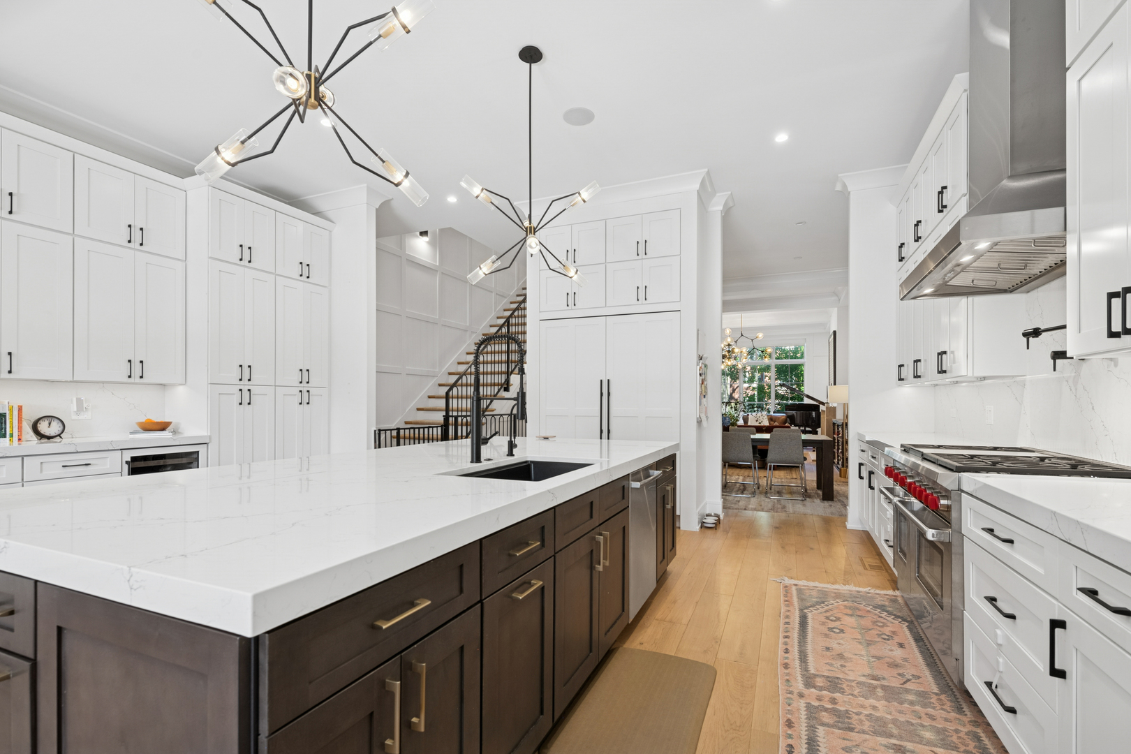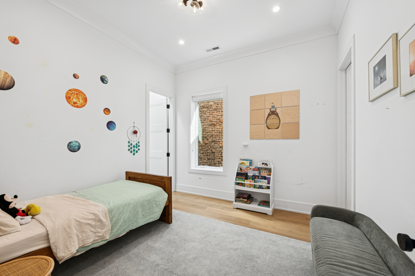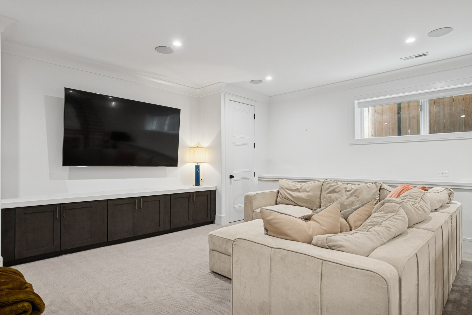 One of a kind, masterfully crafted, stand out 5 bedroom residence on one of the most coveted streets in the main heart of Andersonville. A half block east of Clark Street and steps to the pulse of the neighborhood. Another exquisite Tylo Development Partners LLC single family features 3 bedrooms on one floor plus a guest or in-law suite on lower level, 4.1 decadent bathrooms. This combination of classic contemporary style, 11′ ceilings, incredible natural light sources, 2500 square feet of private outdoor space lends itself both to an entertainer’s dream home and a very family friendly experience to raise children with bedrooms on one floor and conducive layout with an open kitchen concept and adjacent “play spaces”, easy access to first level backyard with some grass set on a 30′ wide lot. Impressive, distinct and all masonry and limestone front, double stacked, oversized bay windows with motorized shades, all restored Chicago brick sides walls. Crisp color palette for fine art display and beautiful and fun wallpaper sprinkled throughout the rooms of this home. Ring System security with locked front gate, Smart Home System. Foyer greets, gracious formal living room with fireplace outfit with heavy limestone mantle and hearth. First floor powder room. Classic contemporary wall wainscoting, coffered ceilings, all 7″ wide plank, real “tongue and groove” hardwood floors throughout, sumptuous 5,400 square feet of interior living space. Open kitchen concept with separate and designated dining room. Gourmet kitchen featuring massive 14′ island, built in sink, comfortable seating for five, mitered quartz counters in white with grey veining, slab backsplash, Subzero, high end and custom all wood cabinetry dressed in white and walnut, separate pantry, black gold hardware. Six burner, high output Wolf range with double oven, vented culinary hood, stainless steel appliance package. Family room continues the kitchen space with fireplace and extra cabinetry including dry bar, wine and beverage coolers, windows on on three sides and collapsable panel of glass “accordion style” with a screen leading out to first floor outdoor space with pavers and grass, 2.5 car all brick garage with EV charger, epoxy floor, roof top deck above. Cohesive custom light fixtures, chandeliers, ceiling fans, romantic iron patterned staircase, wood treads, laundry room with sink, folding space, side by side washer and dyer, cabinetry in the middle of the second floor. Ensuite bathrooms. The sumptuous primary bedroom includes two walk-in closets, a shoe closet, crown moldings and tall, detailed baseboards throughout, fireplace. Primary bathroom features exquisite marble patterned floor, separate, oversized vanities with quartz counters, free standing soaking tub, separate shower with rain, toilet room, and window for a natural light source. Four additional, great sized bedrooms and three additional bathrooms dressed in finest quartz and marbler stone. Full floor plate lower level offers home theatre room and play space for children, a second laundry room, additional storage, and wet bar. Every closet in this home has custom built ins. The roof top deck is decadent IPE, total privacy above the neighbors, fireplace, view of the Chicago Skyline, two remote controlled retractable pergolas. The Brilliant SMART Home Control Home System features 27 speakers, Wi-Fi 6, nine camera and lighting system security system and remote access. Newly added water filtration system in addition to water softener, reverse osmosis, window treatments, landscaping renovation, sump pump backup battery, water alarm sensors, Reme Halo air purification. Bring your most discriminating buyer. This is the crown of Andersonville and the season.