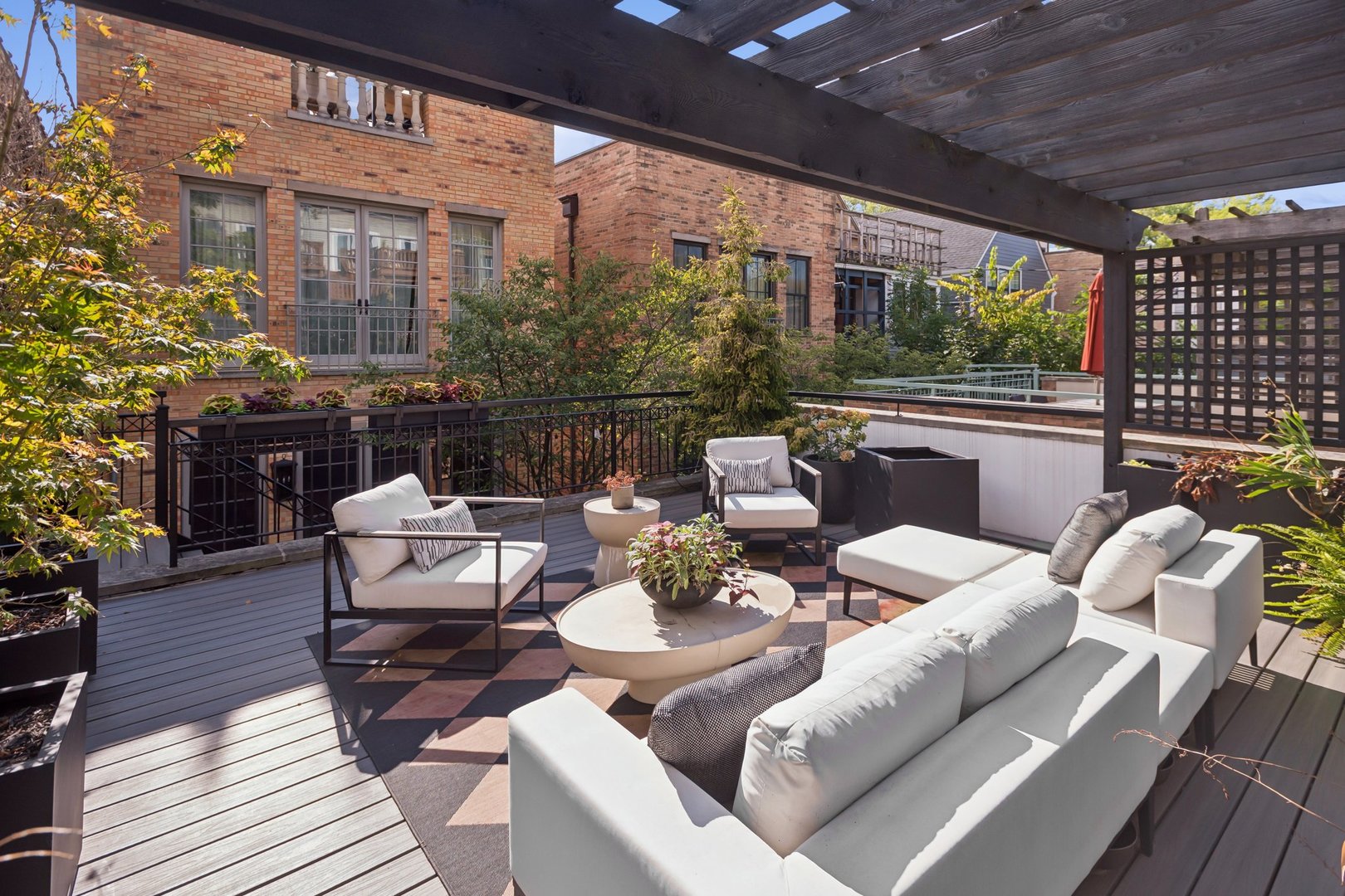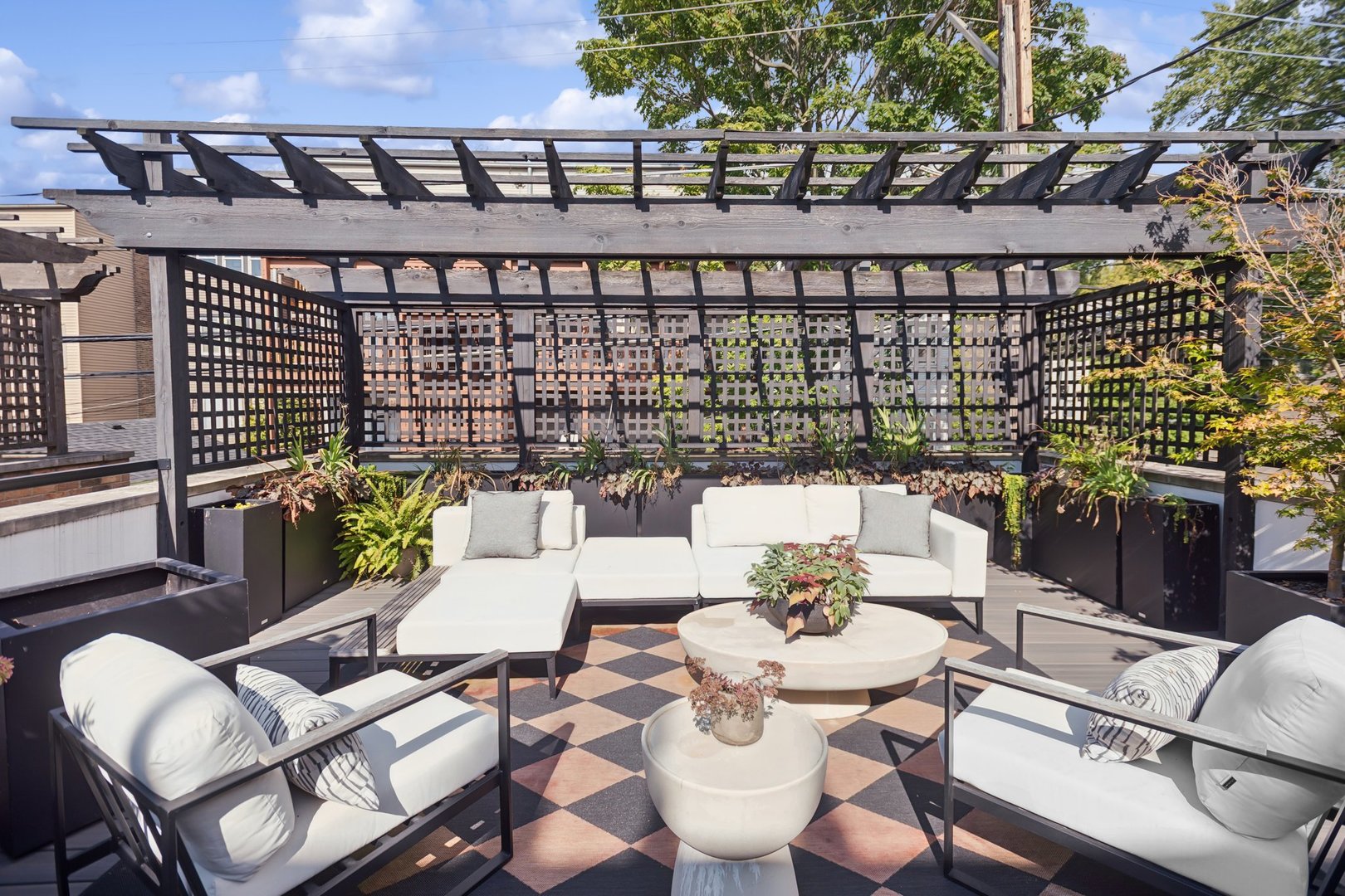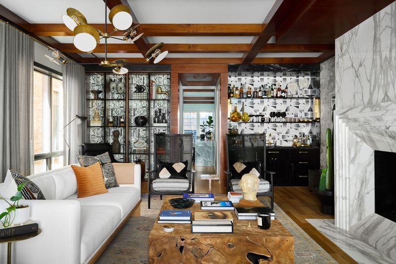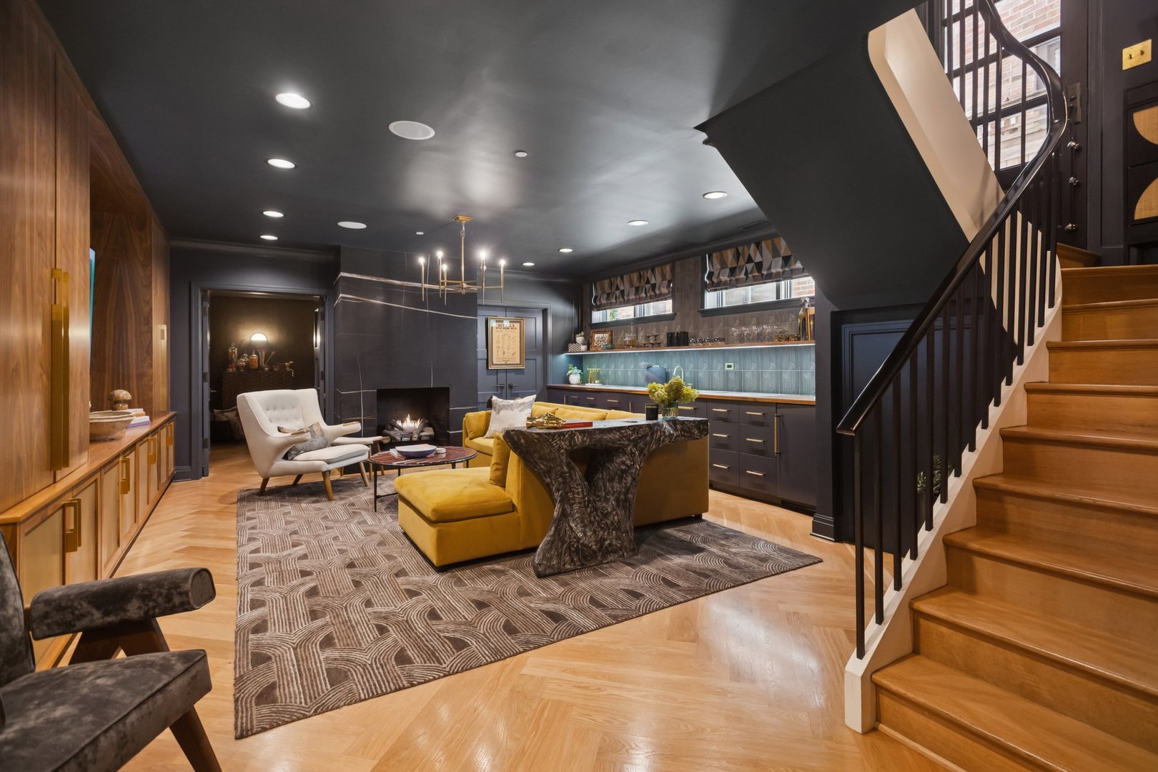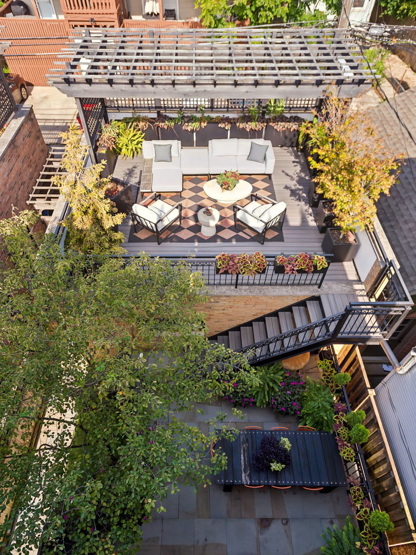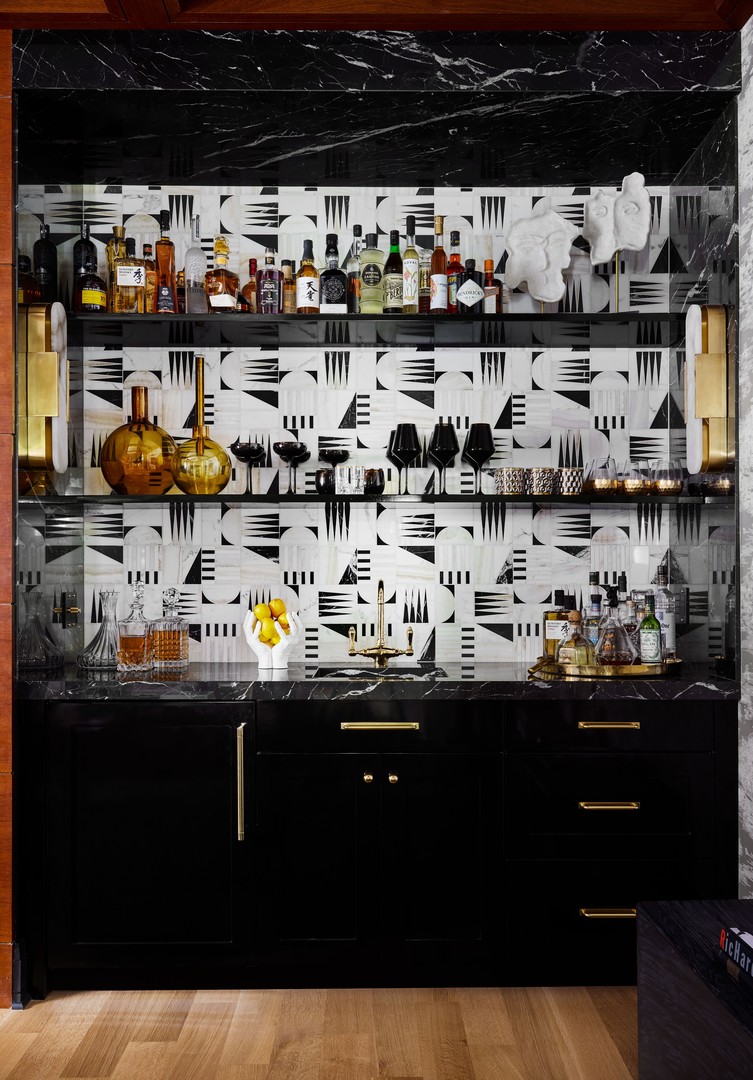 In Chicago’s coveted Graceland West neighborhood, steps from the vibrant Southport Corridor, architecture and artistry converge in this completely reimagined, masterfully crafted residence by Athens Construction. Drawing inspiration from the city’s greatest design traditions-Art Deco, Prairie, Arts & Crafts, transitional, and contemporary-it distills these influences into a single, striking statement of sophistication. Featured on the Magnolia Network as Episode 1 of the design series “Design Defined”, this home has been nationally recognized for its exceptional craftsmanship and inspired architectural vision. Spanning four levels of refined living, the residence offers five spacious bedrooms plus a versatile penthouse that functions as a second family room, guest suite, or home office. Three meticulously landscaped terraces-professionally designed by HD Landscaping-seamlessly connect indoor and outdoor spaces, offering both intimacy and connection to the city beyond. Flooded with natural light, the interiors recall early 20th-century Deco design reinterpreted through a modern, minimalist lens. Every detail tells a story and each space is purpose-built for livable beauty and enduring design. Rich mahogany millwork defines nearly every room-from coffered ceilings to full wood-paneled walls-creating warmth and continuity throughout. Other architectural details underscore the home’s reverence for craftsmanship and material integrity: an elegantly curved staircase, wide-plank quarter-sawn oak floors, and a nine-foot, tiered, book-matched Calacatta Borghini marble fireplace anchoring the living room in perfect symmetry. Bespoke wallcoverings-from Cole & Son Nuvolette to House of Hackney’s Phantasia-and buttery suede add depth, texture, and tactility throughout. If the floor plan conveys one message, it’s that this is a true entertainer’s home. The main level opens with cinematic flair: an expansive living and dining area flows seamlessly into a light-filled kitchen with French doors leading to a bluestone patio. The chef’s kitchen, anchored by a 16-foot Tiffany Blue quartzite waterfall island that feels more carved monolith than countertop, pairs a La Cornue range and satin brass hood for a touch of drama. Designed for entertaining, the home features four wet bars thoughtfully placed across multiple floors for effortless hosting. Upstairs, the second level comprises three ensuite bedrooms, including a primary suite with walk-in closet and double vanities. Richly textured and decadent, a paneled office adds a whimsical twist with a wallpapered ceiling and brass built-ins. Juliet balconies off the bedrooms bring the outdoors in, while a second laundry area provides added convenience. The penthouse level offers a sunlit flex space with pitched ceilings, a playful powder room, and access to two rooftop terraces. Downstairs, the lower level transforms into the ultimate leisure zone with a fully outfitted theater room, recreation area, and a fourth bedroom and bath. Completing the home are a mudroom, laundry suite, and two-car garage topped with a rooftop deck-an amenity rarely found in city living. The home is equipped with central audio, zoned heating and cooling, three fireplaces, a fire-suppression system, and radiant heat in all bathrooms and the lower level. Nearly every system and surface has been renewed-windows, doors, roof, HVAC, water heater, and Trex decking-offering the peace of mind of new construction with the sophistication of professional design. Blending tranquility with city energy, this residence sits within the award-winning Ravenswood School District, moments from parks, cafes, and Chicago’s renowned French and German schools. Executed with exceptional craftsmanship and material richness, this Graceland West masterpiece represents the pinnacle of Chicago living.