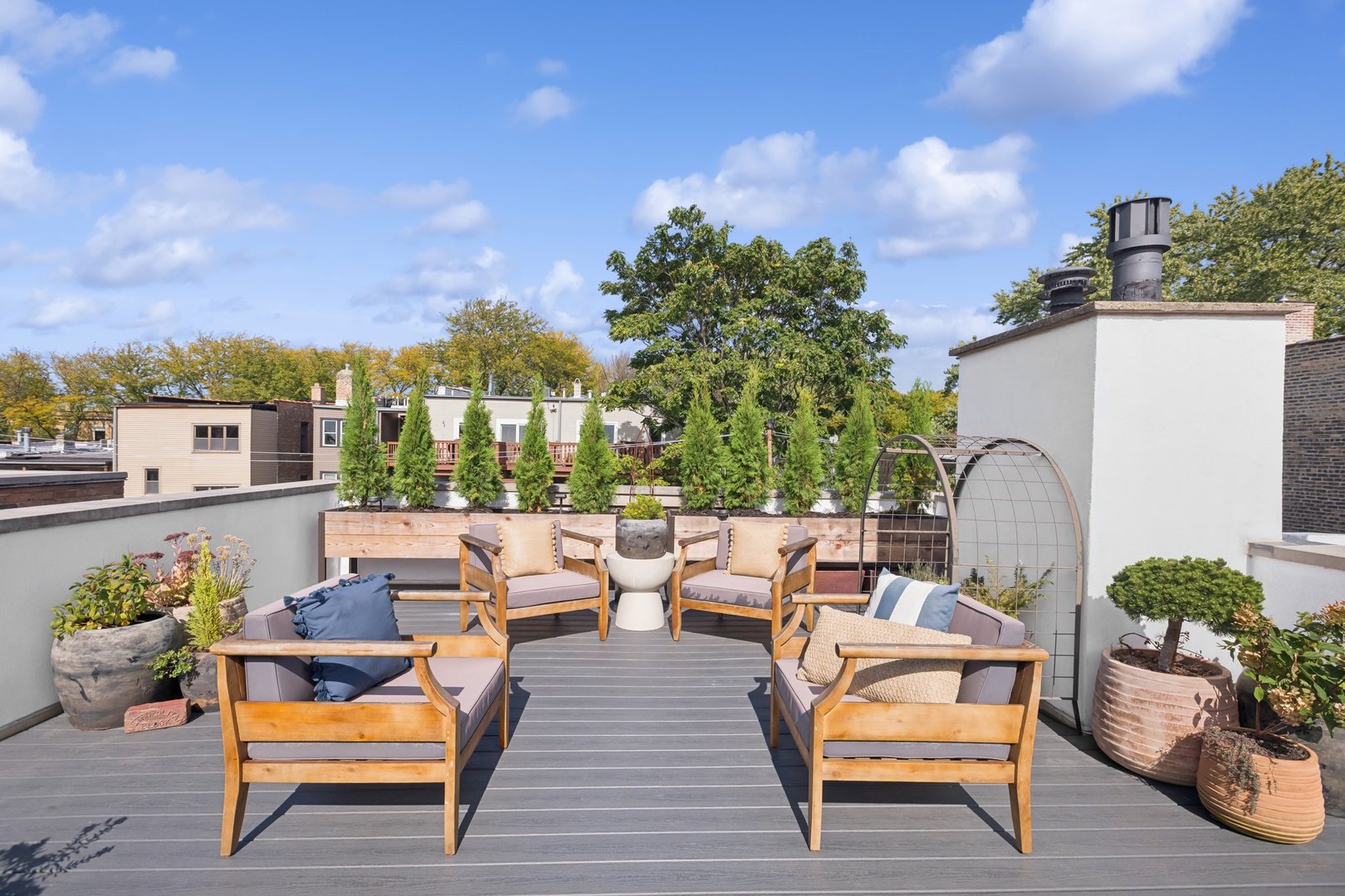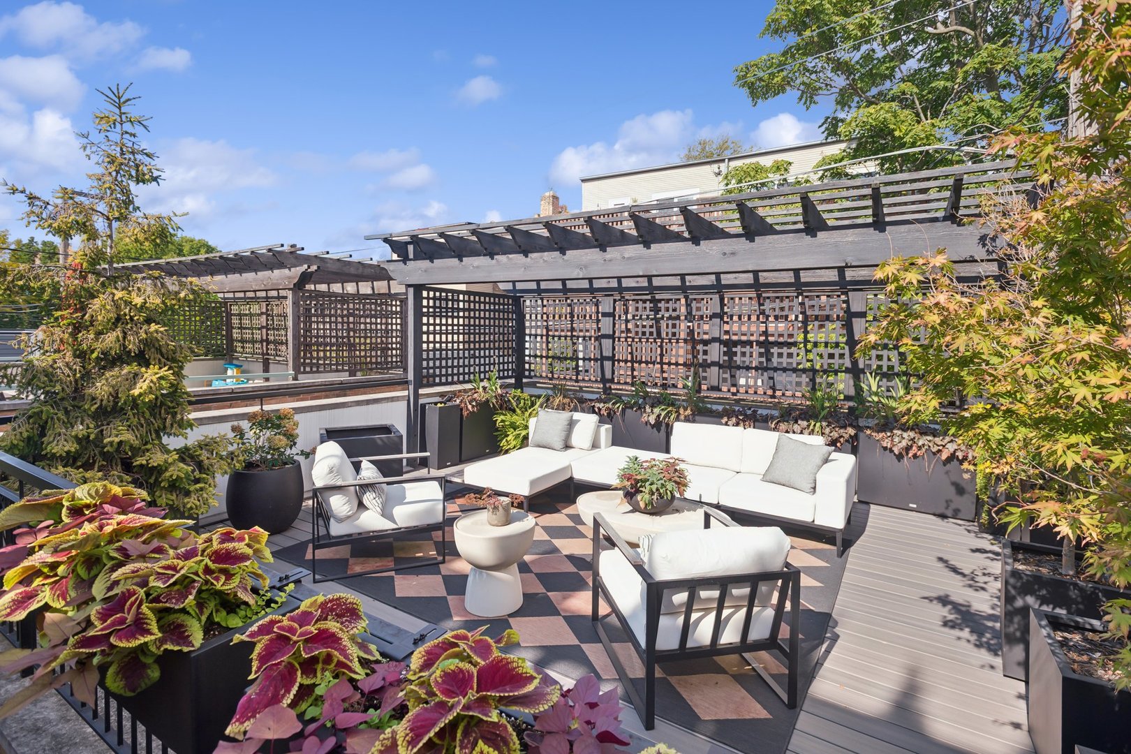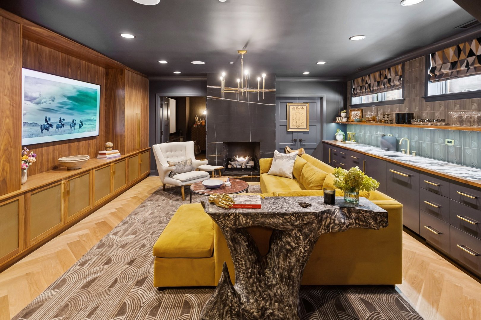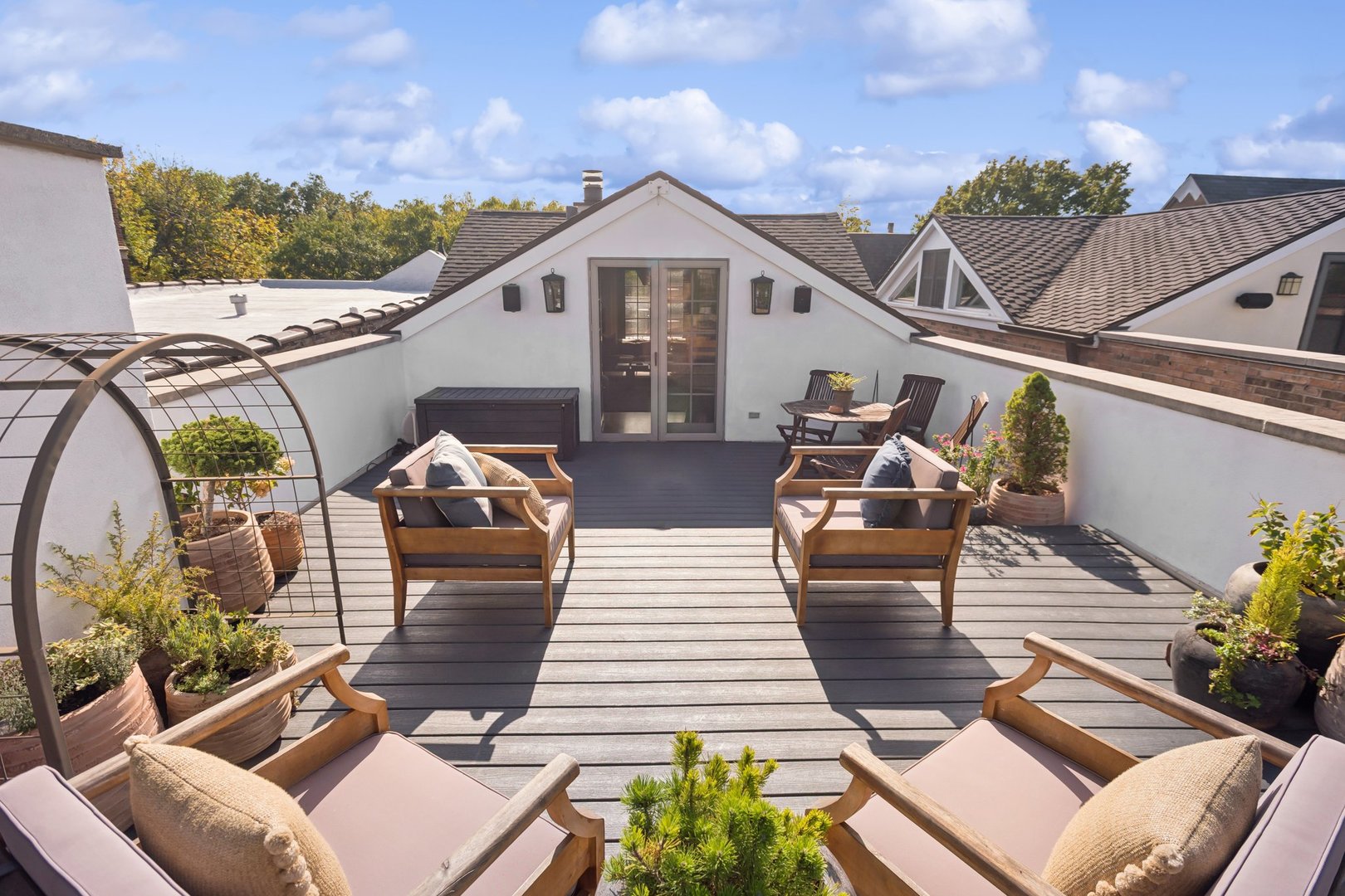 In Chicago’s coveted Graceland West neighborhood, steps from the vibrant Southport Corridor, architecture and artistry converge in this completely reimagined, masterfully crafted residence by Athens Construction. Drawing inspiration from the city’s greatest design traditions-Art Deco, Prairie, Arts & Crafts, transitional, and contemporary-it distills these influences into a single, striking statement of sophistication. Featured on the Magnolia Network as Episode 1 of the design series “Design Defined”, this home has been nationally recognized for its exceptional craftsmanship and inspired architectural vision. Spanning four levels of refined living, the residence offers five spacious bedrooms plus a versatile penthouse that functions as a second family room, guest suite, or home office. Three meticulously landscaped terraces-professionally designed by HD Landscaping-seamlessly connect indoor and outdoor spaces, offering both intimacy and connection to the city beyond. Flooded with natural light, the interiors recall early 20th-century Deco design reinterpreted through a modern, minimalist lens. Every detail tells a story and each space is purpose-built for livable beauty and enduring design. Rich mahogany millwork defines nearly every room-from coffered ceilings to full wood-paneled walls-creating warmth and continuity throughout. Other architectural details underscore the home’s reverence for craftsmanship and material integrity: an elegantly curved staircase, wide-plank quarter-sawn oak floors, and a nine-foot, tiered, book-matched Calacatta Borghini marble fireplace anchoring the living room in perfect symmetry. Bespoke wallcoverings-from Cole & Son Nuvolette to House of Hackney’s Phantasia-and buttery suede add depth, texture, and tactility throughout. If the floor plan conveys one message, it’s that this is a true entertainer’s home. The main level opens with cinematic flair: an expansive living and dining area flows seamlessly into a light-filled kitchen with French doors leading to a bluestone patio. The chef’s kitchen, anchored by a 16-foot Tiffany Blue quartzite waterfall island that feels more carved monolith than countertop, pairs a La Cornue range and satin brass hood for a touch of drama. Designed for entertaining, the home features four wet bars thoughtfully placed across multiple floors for effortless hosting. Upstairs, the second level comprises three ensuite bedrooms, including a primary suite with walk-in closet and double vanities. Richly textured and decadent, a paneled office adds a whimsical twist with a wallpapered ceiling and brass built-ins. Juliet balconies off the bedrooms bring the outdoors in, while a second laundry area provides added convenience. The penthouse level offers a sunlit flex space with pitched ceilings, a playful powder room, and access to two rooftop terraces. Downstairs, the lower level transforms into the ultimate leisure zone with a fully outfitted theater room, recreation area, and a fourth bedroom and bath. Completing the home are a mudroom, laundry suite, and two-car garage topped with a rooftop deck-an amenity rarely found in city living. The home is equipped with central audio, zoned heating and cooling, three fireplaces, a fire-suppression system, and radiant heat in all bathrooms and the lower level. Nearly every system and surface has been renewed-windows, doors, roof, HVAC, water heater, and Trex decking-offering the peace of mind of new construction with the sophistication of professional design. Blending tranquility with city energy, this residence sits within the award-winning Ravenswood School District, moments from parks, cafes, and Chicago’s renowned French and German schools. Executed with exceptional craftsmanship and material richness, this Graceland West masterpiece represents the pinnacle of Chicago living.