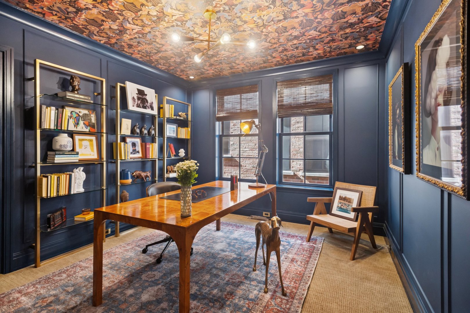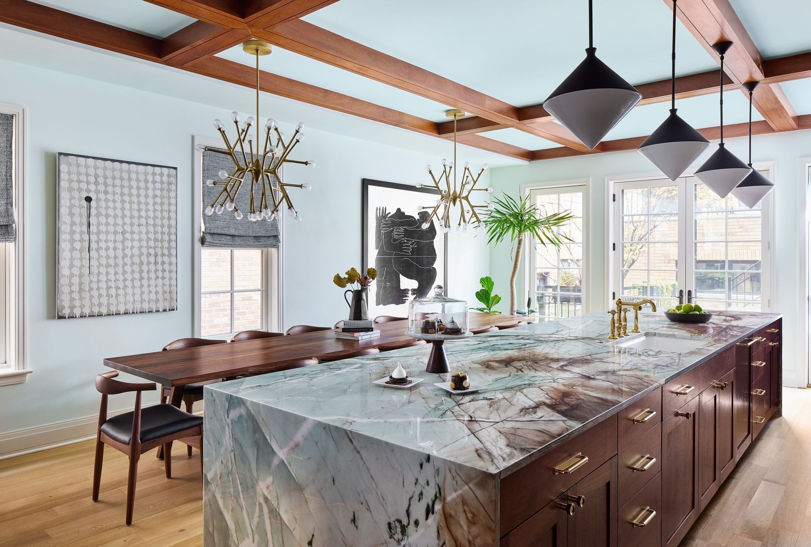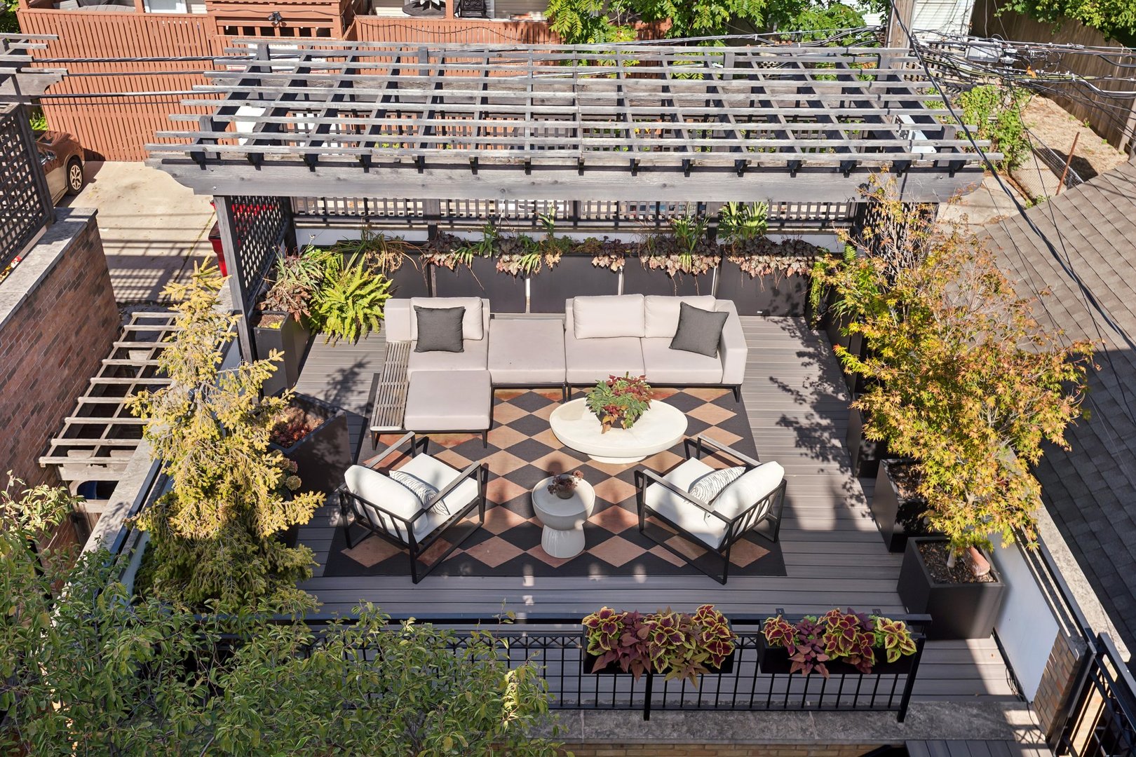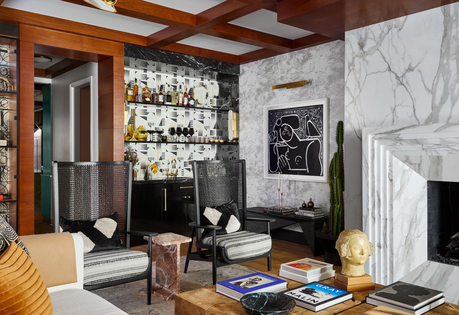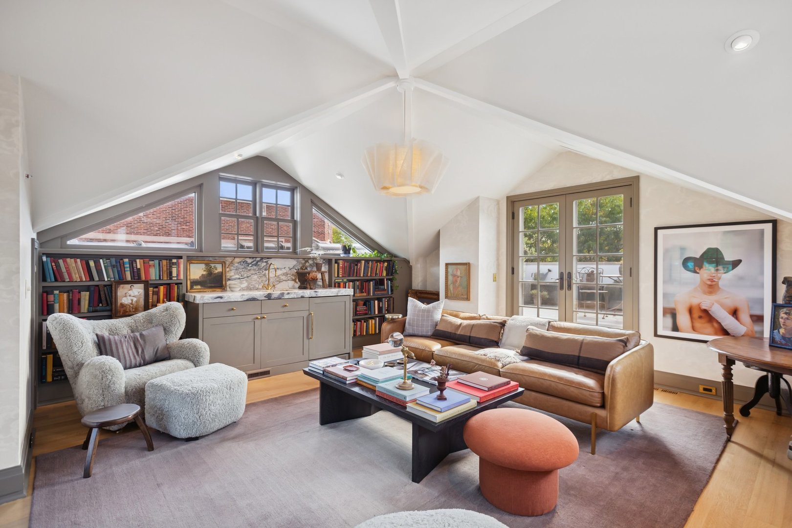 In Chicago’s coveted Graceland West neighborhood, steps from the vibrant Southport Corridor, architecture and artistry converge in this completely reimagined, masterfully crafted residence by Athens Construction. Drawing inspiration from the city’s greatest design traditions-Art Deco, Prairie, Arts & Crafts, transitional, and contemporary-it distills these influences into a single, striking statement of sophistication. Featured on the Magnolia Network as Episode 1 of the design series “Design Defined”, this home has been nationally recognized for its exceptional craftsmanship and inspired architectural vision. Spanning four levels of refined living, the residence offers five spacious bedrooms plus a versatile penthouse that functions as a second family room, guest suite, or home office. Three meticulously landscaped terraces-professionally designed by HD Landscaping-seamlessly connect indoor and outdoor spaces, offering both intimacy and connection to the city beyond. Flooded with natural light, the interiors recall early 20th-century Deco design reinterpreted through a modern, minimalist lens. Every detail tells a story and each space is purpose-built for livable beauty and enduring design. Rich mahogany millwork defines nearly every room-from coffered ceilings to full wood-paneled walls-creating warmth and continuity throughout. Other architectural details underscore the home’s reverence for craftsmanship and material integrity: an elegantly curved staircase, wide-plank quarter-sawn oak floors, and a nine-foot, tiered, book-matched Calacatta Borghini marble fireplace anchoring the living room in perfect symmetry. Bespoke wallcoverings-from Cole & Son Nuvolette to House of Hackney’s Phantasia-and buttery suede add depth, texture, and tactility throughout. If the floor plan conveys one message, it’s that this is a true entertainer’s home. The main level opens with cinematic flair: an expansive living and dining area flows seamlessly into a light-filled kitchen with French doors leading to a bluestone patio. The chef’s kitchen, anchored by a 16-foot Tiffany Blue quartzite waterfall island that feels more carved monolith than countertop, pairs a La Cornue range and satin brass hood for a touch of drama. Designed for entertaining, the home features four wet bars thoughtfully placed across multiple floors for effortless hosting. Upstairs, the second level comprises three ensuite bedrooms, including a primary suite with walk-in closet and double vanities. Richly textured and decadent, a paneled office adds a whimsical twist with a wallpapered ceiling and brass built-ins. Juliet balconies off the bedrooms bring the outdoors in, while a second laundry area provides added convenience. The penthouse level offers a sunlit flex space with pitched ceilings, a playful powder room, and access to two rooftop terraces. Downstairs, the lower level transforms into the ultimate leisure zone with a fully outfitted theater room, recreation area, and a fourth bedroom and bath. Completing the home are a mudroom, laundry suite, and two-car garage topped with a rooftop deck-an amenity rarely found in city living. The home is equipped with central audio, zoned heating and cooling, three fireplaces, a fire-suppression system, and radiant heat in all bathrooms and the lower level. Nearly every system and surface has been renewed-windows, doors, roof, HVAC, water heater, and Trex decking-offering the peace of mind of new construction with the sophistication of professional design. Blending tranquility with city energy, this residence sits within the award-winning Ravenswood School District, moments from parks, cafes, and Chicago’s renowned French and German schools. Executed with exceptional craftsmanship and material richness, this Graceland West masterpiece represents the pinnacle of Chicago living.