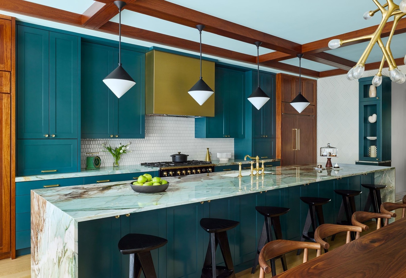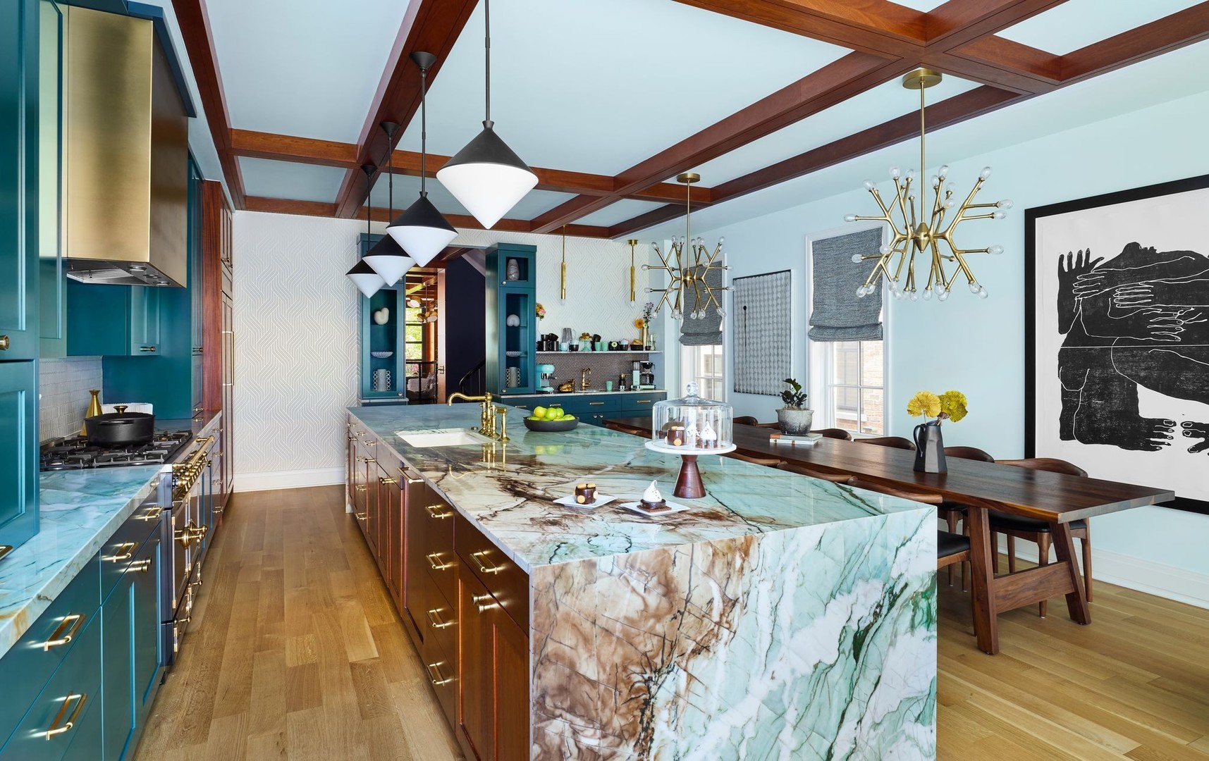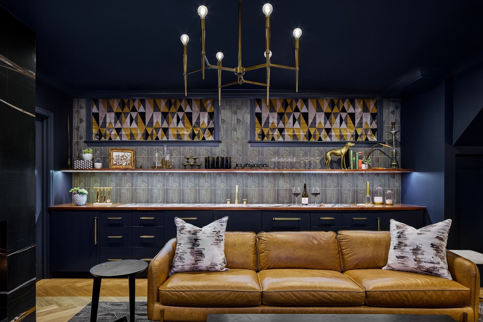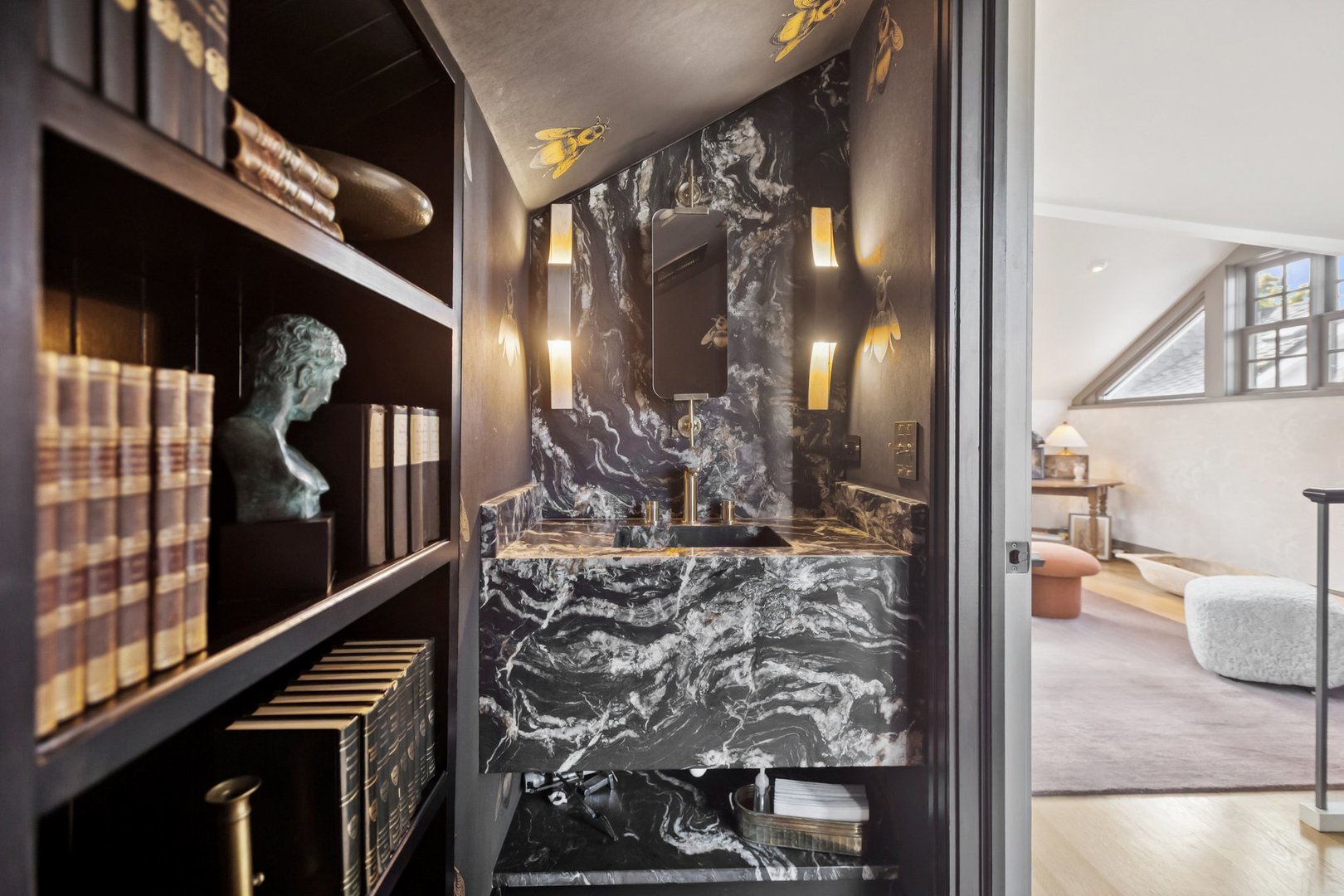 In Chicago’s coveted Graceland West neighborhood, steps from the vibrant Southport Corridor, architecture and artistry converge in this completely reimagined, masterfully crafted residence by Athens Construction. Drawing inspiration from the city’s greatest design traditions-Art Deco, Prairie, Arts & Crafts, transitional, and contemporary-it distills these influences into a single, striking statement of sophistication. Featured on the Magnolia Network as Episode 1 of the design series “Design Defined”, this home has been nationally recognized for its exceptional craftsmanship and inspired architectural vision. Spanning four levels of refined living, the residence offers five spacious bedrooms plus a versatile penthouse that functions as a second family room, guest suite, or home office. Three meticulously landscaped terraces-professionally designed by HD Landscaping-seamlessly connect indoor and outdoor spaces, offering both intimacy and connection to the city beyond. Flooded with natural light, the interiors recall early 20th-century Deco design reinterpreted through a modern, minimalist lens. Every detail tells a story and each space is purpose-built for livable beauty and enduring design. Rich mahogany millwork defines nearly every room-from coffered ceilings to full wood-paneled walls-creating warmth and continuity throughout. Other architectural details underscore the home’s reverence for craftsmanship and material integrity: an elegantly curved staircase, wide-plank quarter-sawn oak floors, and a nine-foot, tiered, book-matched Calacatta Borghini marble fireplace anchoring the living room in perfect symmetry. Bespoke wallcoverings-from Cole & Son Nuvolette to House of Hackney’s Phantasia-and buttery suede add depth, texture, and tactility throughout. If the floor plan conveys one message, it’s that this is a true entertainer’s home. The main level opens with cinematic flair: an expansive living and dining area flows seamlessly into a light-filled kitchen with French doors leading to a bluestone patio. The chef’s kitchen, anchored by a 16-foot Tiffany Blue quartzite waterfall island that feels more carved monolith than countertop, pairs a La Cornue range and satin brass hood for a touch of drama. Designed for entertaining, the home features four wet bars thoughtfully placed across multiple floors for effortless hosting. Upstairs, the second level comprises three ensuite bedrooms, including a primary suite with walk-in closet and double vanities. Richly textured and decadent, a paneled office adds a whimsical twist with a wallpapered ceiling and brass built-ins. Juliet balconies off the bedrooms bring the outdoors in, while a second laundry area provides added convenience. The penthouse level offers a sunlit flex space with pitched ceilings, a playful powder room, and access to two rooftop terraces. Downstairs, the lower level transforms into the ultimate leisure zone with a fully outfitted theater room, recreation area, and a fourth bedroom and bath. Completing the home are a mudroom, laundry suite, and two-car garage topped with a rooftop deck-an amenity rarely found in city living. The home is equipped with central audio, zoned heating and cooling, three fireplaces, a fire-suppression system, and radiant heat in all bathrooms and the lower level. Nearly every system and surface has been renewed-windows, doors, roof, HVAC, water heater, and Trex decking-offering the peace of mind of new construction with the sophistication of professional design. Blending tranquility with city energy, this residence sits within the award-winning Ravenswood School District, moments from parks, cafes, and Chicago’s renowned French and German schools. Executed with exceptional craftsmanship and material richness, this Graceland West masterpiece represents the pinnacle of Chicago living.