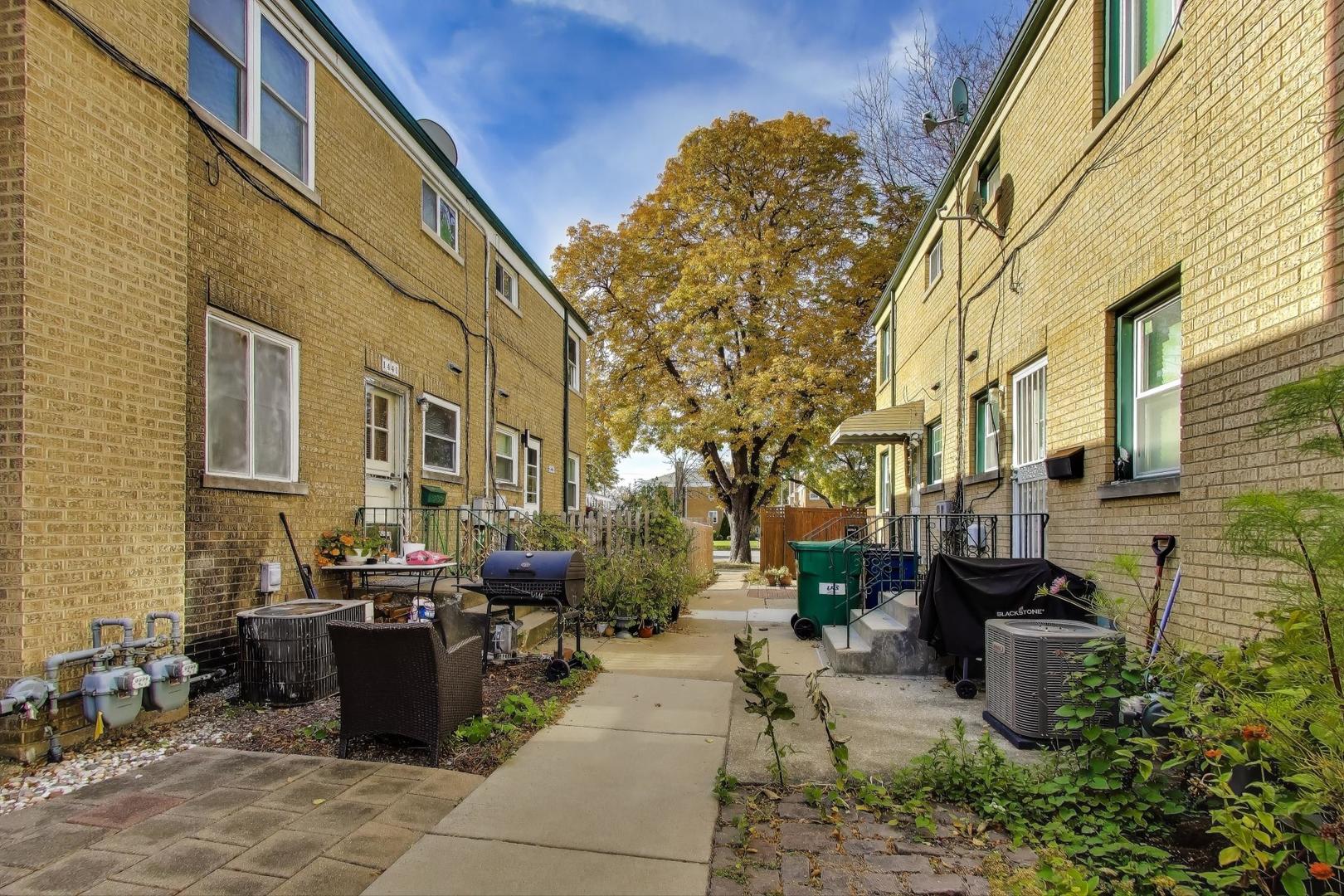 Oak Park Mid-Century Townhouse in a great location! First floor has a sunny Living Room, Dining Room, Cool Kitchen with Original Retro Metal Cabinets and Guest Bath. Second floor has 2 nice sized Bedrooms and a Hall Bath with beautiful vintage tile. Full Basement has a Family Room and large laundry/utility/storage room. Forced air heat and central air conditioning. Hardwood floors and most windows are newer. Parking included!