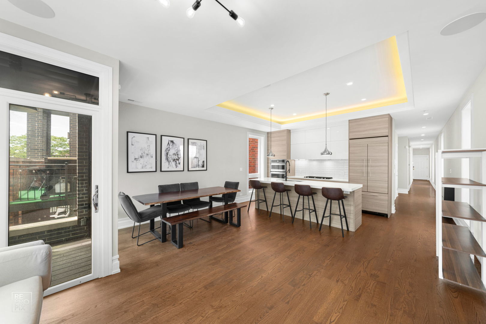 Located in the heart of West Town and only steps from Eckhart Park! this exceptionally bright, south facing all brick exterior 3 unit building is surrounded by tons of new construction in the area. High ceilings in this massive duplex-up penthouse unit with 3 beds, 2.5 baths and a huge chef’s kitchen w/ custom italian cabinetry, top of the line stainess steel appliance package and thick quartz countertops. The master bathroom features an impressive spa quality bath w/ beautiful porcelain tiles, steam shower, separate tub and shower as well as radiant heated floor. There are great closets with closet organizers built-out throughout the bedrooms and common areas, it is wired for sound system and features a total of 4 outdoor spaces including two large decks on the top floor on both the front and rear of the building. The kitchen features a balcony perfect for easily accessible grilling area and the top floor south facing deck opens into the den featuring bar area and half bath, making a perfect place for entertaining guests in both indoor and outdoor area. The third bedroom is built-out as an office with beautiful tall built-in bookshelves and cabinets. Secured exterior car-port parking spot is included. Easy access to highway, blue line, shops on Chicago & Division. A+ location and priced to sell. Tons of potential to grow equity as continued new construction real estate pushes average home value in this neighborhood upwards!