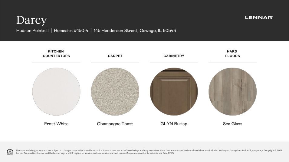 SPECIAL FINANCING OFFERS AVAILABLE!! READY FOR OVTOBER DELIVERY!!!! Homesite# 1504 Enter a sanctuary of comfort and charm in this stunning Darcy model. This three-bedroom, two-and-a-half-bathroom townhome showcases a striking contemporary design, thoughtfully crafted for modern living. The main level boasts an open-concept layout where the kitchen, great room, and dining area flow together seamlessly. Notable kitchen features include a spacious center island, sleek quartz countertops, ample cabinetry, a undermount sink, and top-of-the-line stainless steel appliances. Elegant touches-such as two-panel interior doors, classic colonist trim, luxury vinyl plank flooring, and energy-efficient LED lighting-further enhance the home’s appeal. Perched on the second floor, a spacious, the light-filled loft offers a heightened sense of openness and possibility. Whether imagined as a home office, an inspiring creative studio, or a cozy reading nook, this adaptable space meets your needs with style. Completing the upstairs are three inviting bedrooms, including a luxe owner’s suite designed for ultimate comfort and sophistication. The owner’s suite offers a private retreat with a spacious walk-in closet, and a spa-inspired deluxe shower-your personal haven after a long day. *Photos are not this actual home* Welcome to Hudson Pointe II, a beautifully designed master-planned community offering brand-new homes in the heart of Oswego, Illinois. Perfectly blending comfort, convenience, and natural beauty, this neighborhood is ideal for families and individuals seeking a balanced lifestyle. Right within the community, residents can enjoy a well-maintained park for leisurely play and gatherings, as well as a serene pond that enhances the peaceful atmosphere of Hudson Pointe II. Just 10 minutes from the Naperville Route 59 corridor, Hudson Pointe II places premier shopping, dining, and entertainment within easy reach. Access top destinations like Whole Foods, Amazon Fresh Market, LA Fitness, and Costco, along with a variety of local restaurants and entertainment spots. Families will appreciate the top-rated Oswego School District 308, with students attending Southbury Elementary, Murphy Junior High, and Oswego East High School-all conveniently located within a 10-minute drive. Outdoor enthusiasts will love the close proximity to Wolf’s Crossing Community Park, offering an array of recreational features including playgrounds, an outdoor fitness area, a splash pad, and more-perfect for year-round family fun. At Hudson Pointe II, you’re not just buying a home-you’re joining a thoughtfully planned community where modern living meets natural charm and everyday convenience.