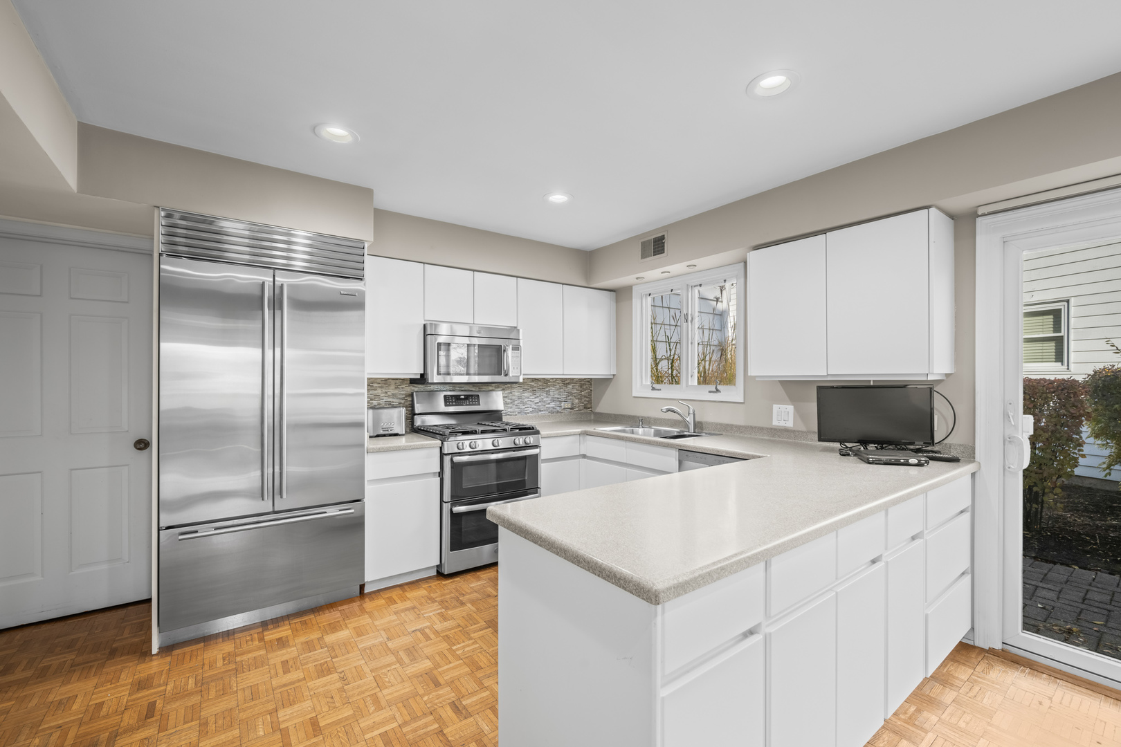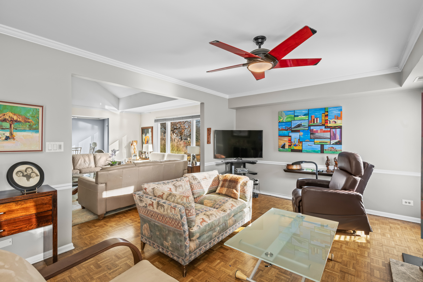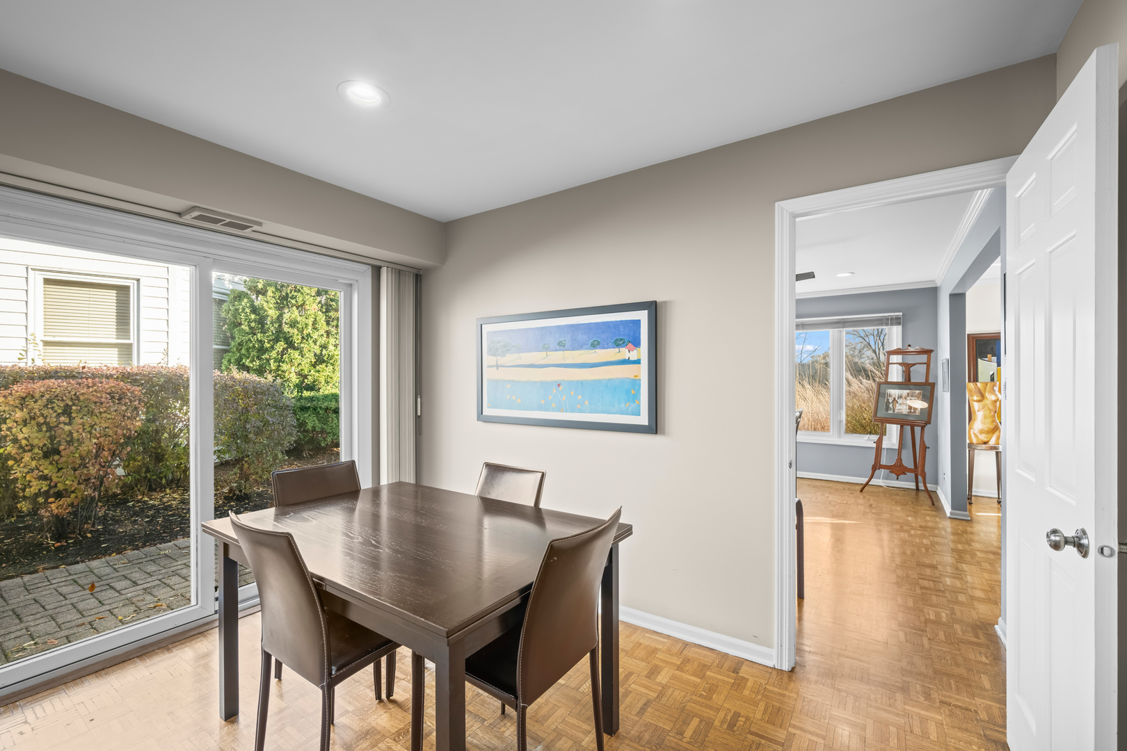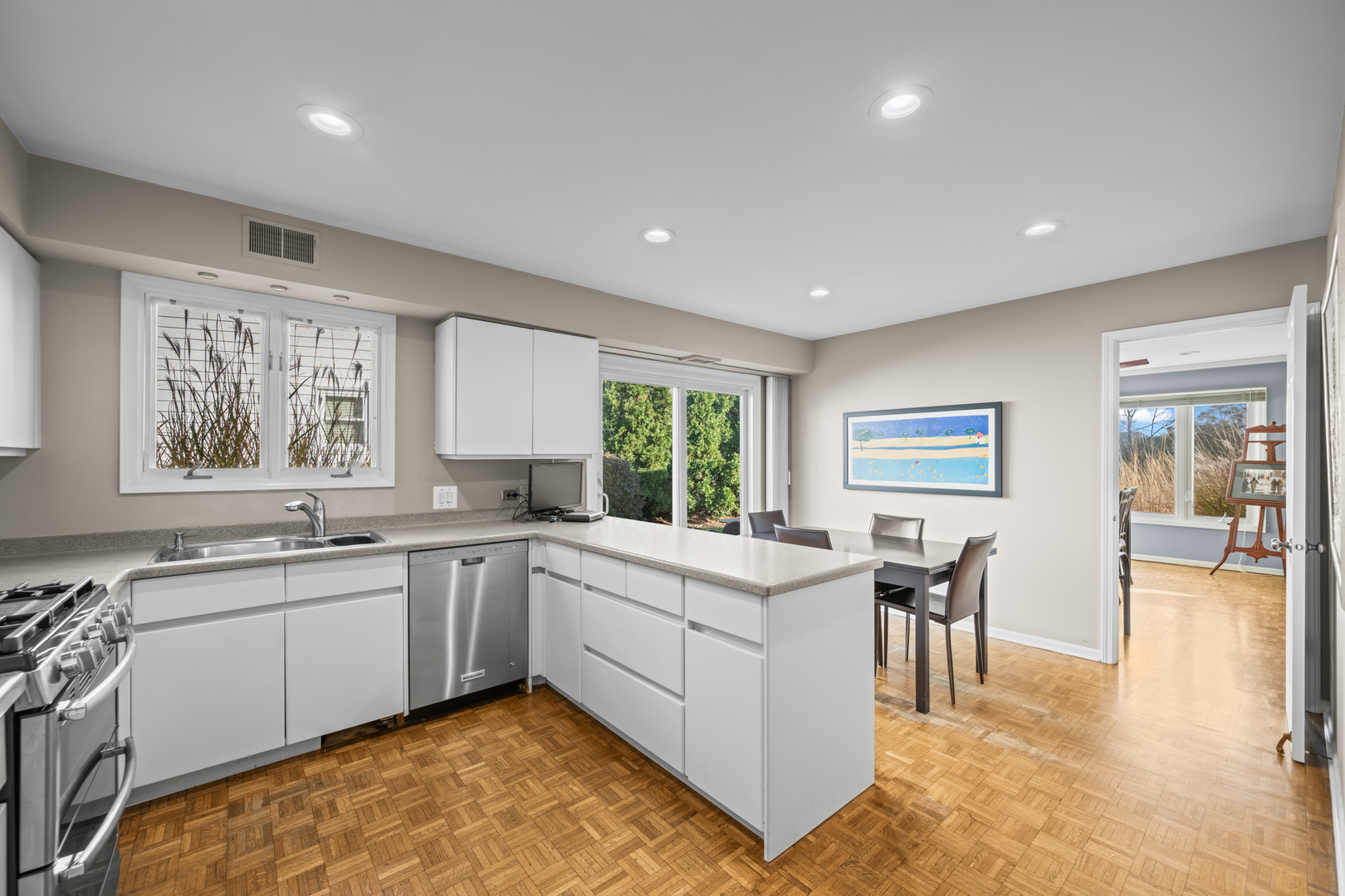 Location, location. It’s a water front beauty! Discover maintenance free living in this absolutely stunning ranch style home with picturesque water views that sets the tone for serene resort-style living every day, perfectly situated in the gated community of Rivershire. This fabulous light and bright home boasts an open concept design, large welcoming entry foyer, hardwood parquet floors, custom moldings and great views from all the windows. The home boasts an updated eat-in kitchen with high end stainless steel appliances, sub zero refrigerator, white custom cabinetry, solid surface counter tops and a large breakfast eating room with sliders to the patio. The laundry room is conveniently located off the kitchen. Large separate dining room with recessed lighting opens to the family room with soaring volume ceilings and fireplace. Relax in the cozy den with wet bar. The primary suite has two large walk-in closets, bath with dual bowl vanities and shower. Spacious second bedroom with updated hall full bath and an additional powder room off the den. Newer roof and furnace, two car attached garage and two paver brick patios. Enjoy a stroll on the serene walking path or have a game of tennis. Conveniently located near shopping, restaurants and entertainment offered at the Marriott Theater near by.
