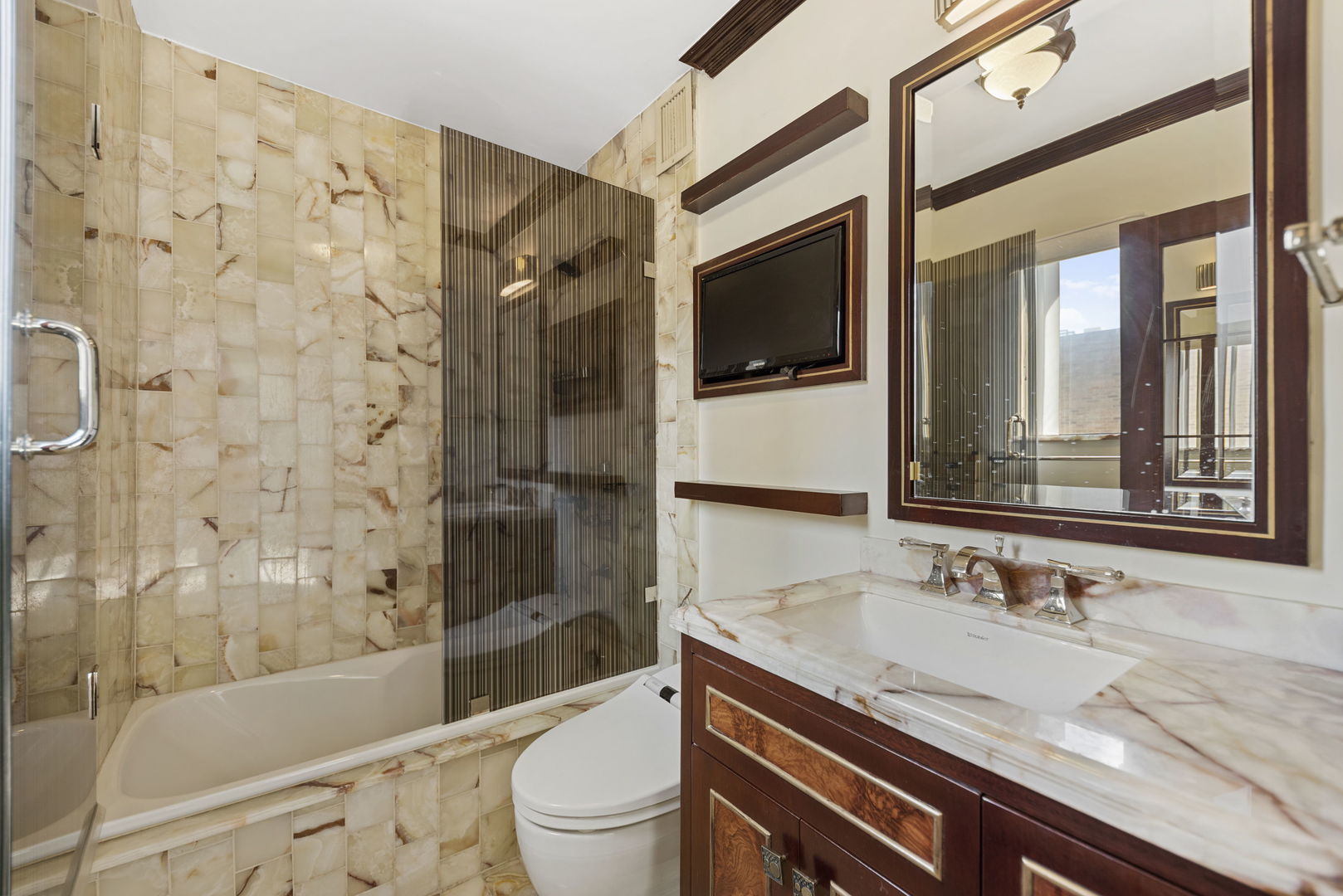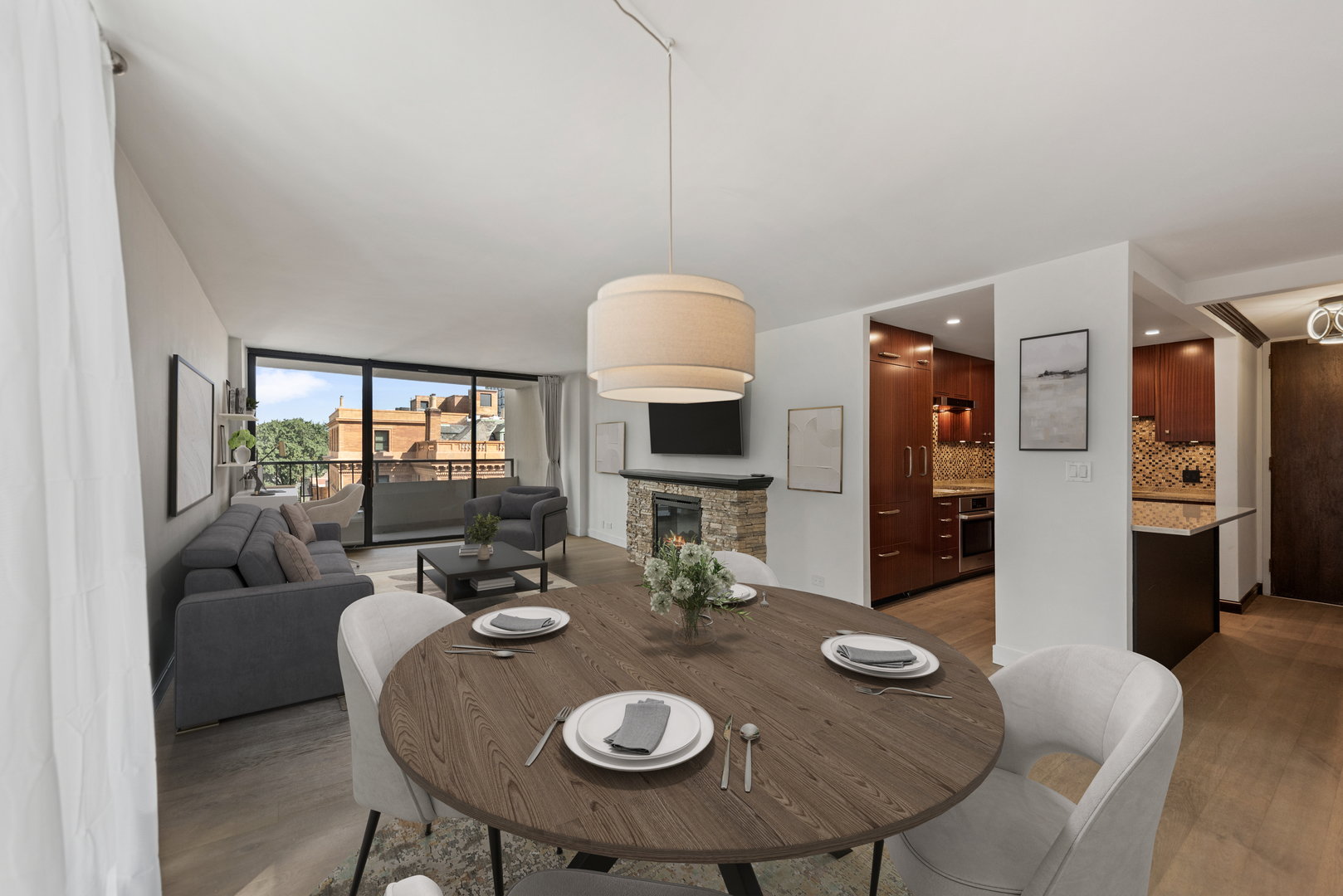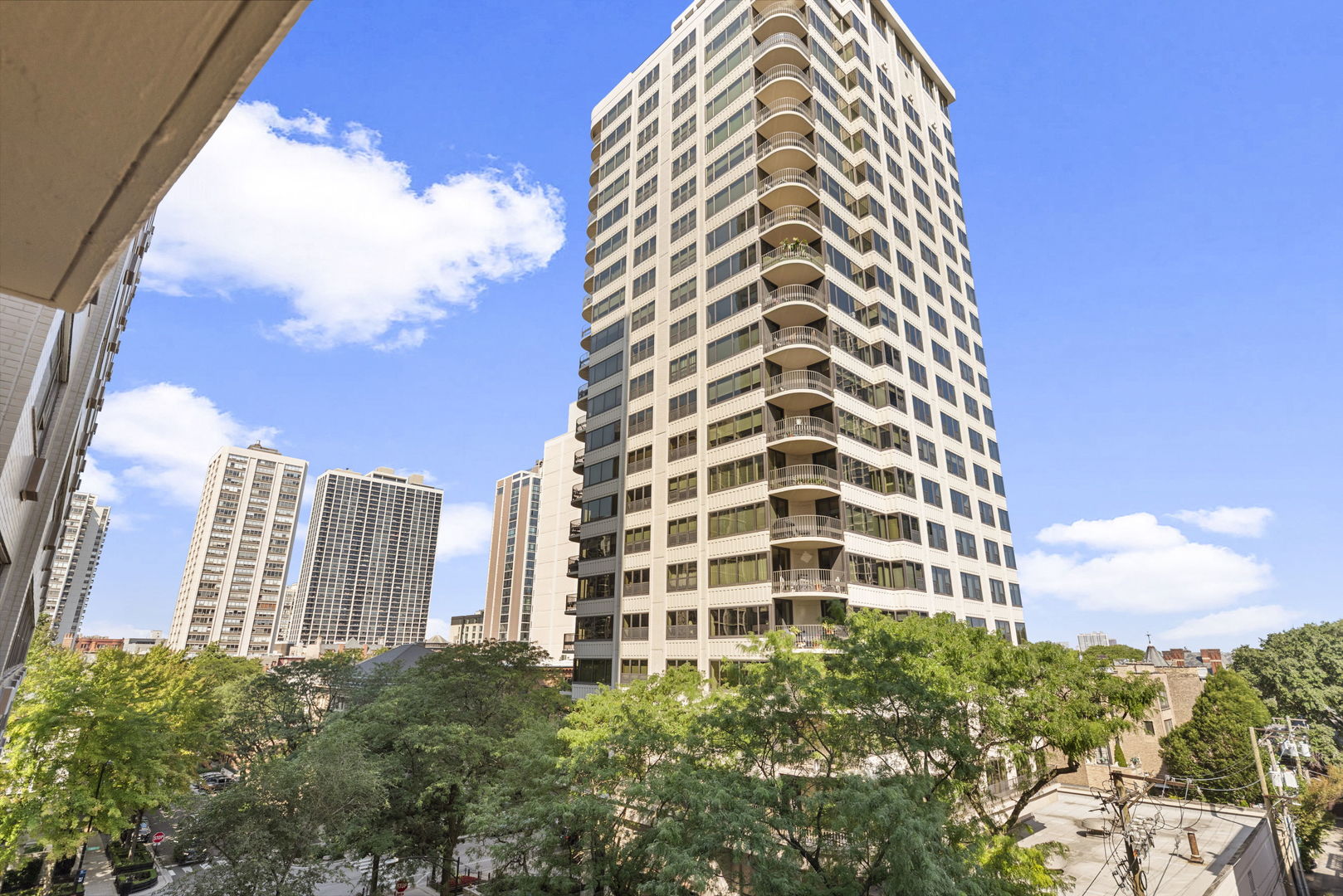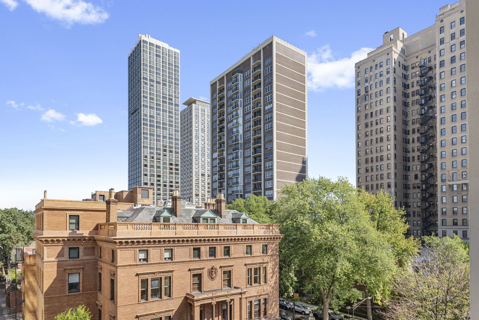 Experience refined Gold Coast living in this elegant 2-bedroom, 2-bath corner residence located in a charming boutique building on one of Chicago’s most iconic tree-lined streets. This light-filled, 1,250 sq ft end-unit offers three exposures, including a north-facing balcony with open views toward the historic McCormick Mansion and the treetops below, and sun-drenched southern exposures in both bedrooms. The spacious living and dining areas feature newly installed hardwood floors and a beautifully appointed kitchen with high-end appliances including a paneled Sub-Zero refrigerator, Bosch Wi-Fi-enabled range, Wolf cooktop, and Miele microwave and oven. Custom cherry cabinetry, granite countertops, and a mosaic tile backsplash add warmth and timeless appeal, while the generous primary suite includes built-ins and a striking onyx-clad en-suite bath. A private balcony provides a peaceful space for morning coffee or evening unwinding. Additional highlights include excellent closet space, ground-level storage that allows easy roll-in access, and a well-maintained elevator building with only four units per floor. Additional Photos are available from listing agent of primary bedroom and kitchen. Pet-friendly building; parking available for rent at a preferred rate compared to surrounding options. All just two blocks from Lake Michigan, Oak Street Beach, and the lakefront trail, and steps from world-class dining, shopping, and transit in one of Chicago’s most walkable and prestigious neighborhoods.
