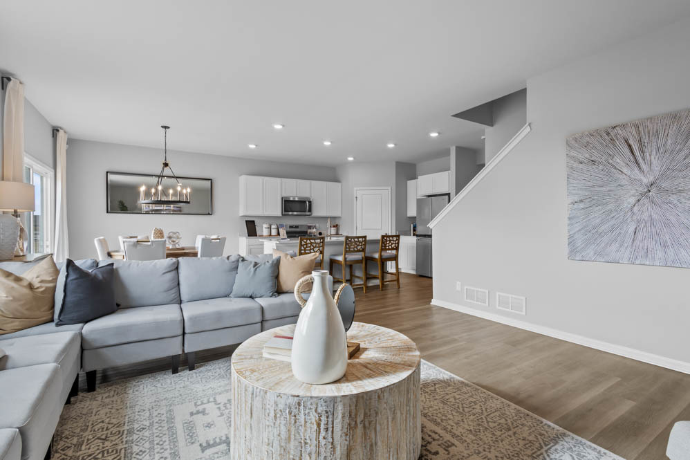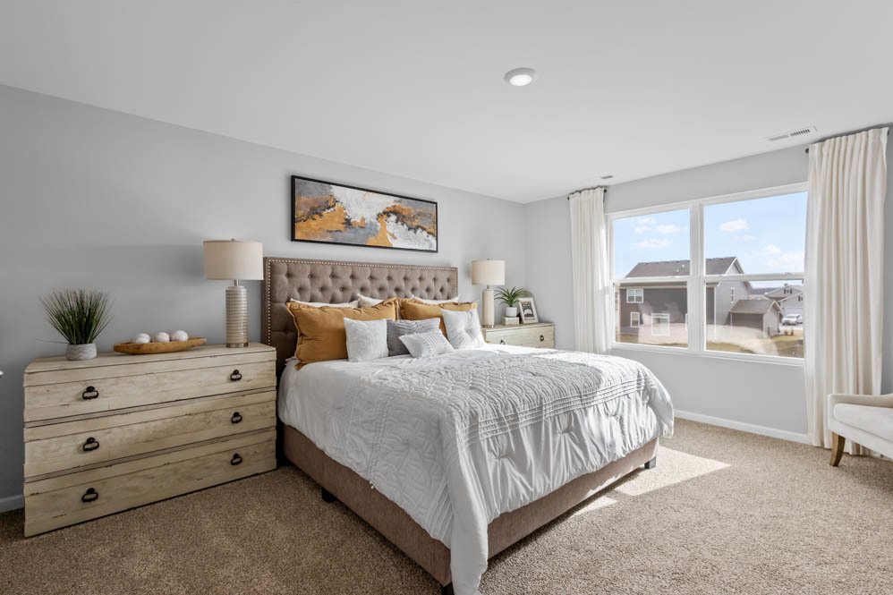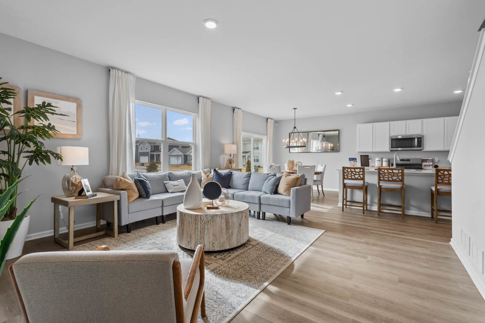 Imagine yourself at 1451 Aspen Lane in Pingree Grove, Illinois, a beautiful new home in our Cambridge Lakes North community. This home is MOVE-IN READY! Homesite includes a fully sodded yard and a full front porch with no rear neighbors! This Henley plan offers 2,600 square feet of living space with a flex room, 4 bedrooms, 2.5 baths, and a 2-car garage. Entertaining will be easy in this open-concept kitchen and family room layout with a large island with an overhang for stools with designer cabinetry. Additionally, the kitchen features a walk-in pantry, modern stainless-steel appliances, quartz countertops, and easy-to-maintain luxury vinyl plank flooring. More flexible space is waiting upstairs in the 2nd-floor loft, offering unlimited potential to suit your needs. Enjoy your private getaway with your large primary bedroom and en suite bathroom with a raised height dual sink, quartz top vanity, and walk-in shower. Convenient walk-in laundry room, 3 additional bedrooms with a full second bath and a linen closet complete the second floor. All Chicago homes include our America’s Smart Home Technology. Exterior photo of actual home. Interior photos are of similar home and model home. Actual home built may vary.