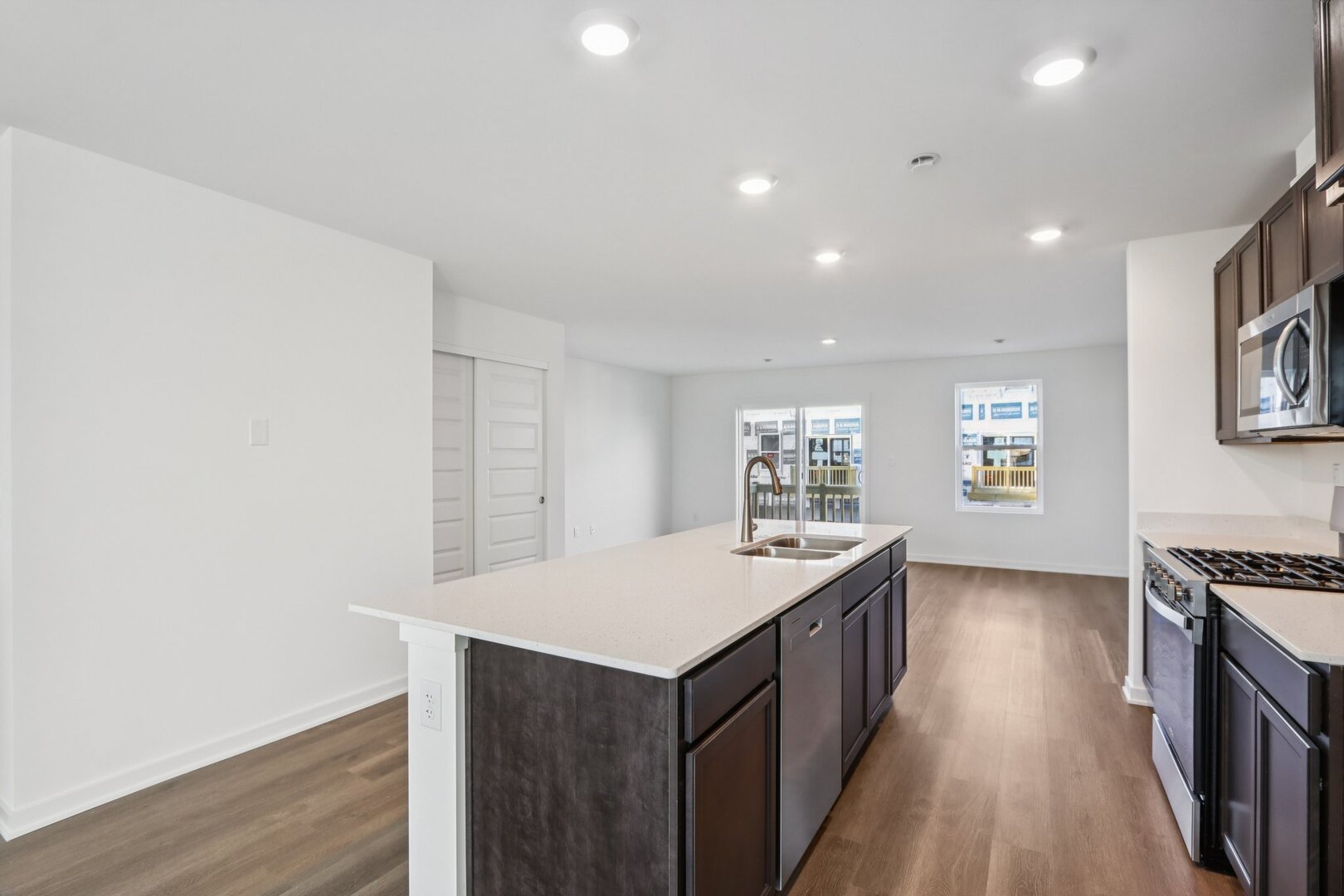 Welcome to 1451 Oakfield Lane in Pingree Grove, Illinois, a modern, new townhome in our scenic Cambridge Lakes North community. This end unit townhome is ready for an immediate move-in! Homesite includes a fully sodded yard that is maintained throughout the year as well as snow removal in the winter. This Garfield townhome is a captivating open floor plan with over 1,700 square feet of living space which includes 3 bedrooms, 2.5 baths and a finished flex space. As you step inside from the garage, you’ll be greeted by a finished flex space, perfect for an office or playroom. Walking up the stairs, you will find this home’s open concept main level living space centered around a large kitchen island. The expansive kitchen overlooks both the front dining and back great room areas. Additionally, your kitchen features designer cabinetry, quartz countertops, stainless-steel appliances, and pantry. Arriving at the top floor, you’ll find our 3 bedrooms. Enjoy a spacious primary bedroom suite which includes a large walk-in closet lit up by its own private bathroom with dual sinks and a walk-in shower. The rest of the upper level features a laundry room, secondary bedrooms with a full second bath and linen closet. You’ll find luxury vinyl plank flooring throughout the main level kitchen and dining, bathrooms, and laundry. All Chicago homes include our America’s Smart Home Technology. Exterior photo of actual home. Interior photos are of similar home. Actual home built may vary.