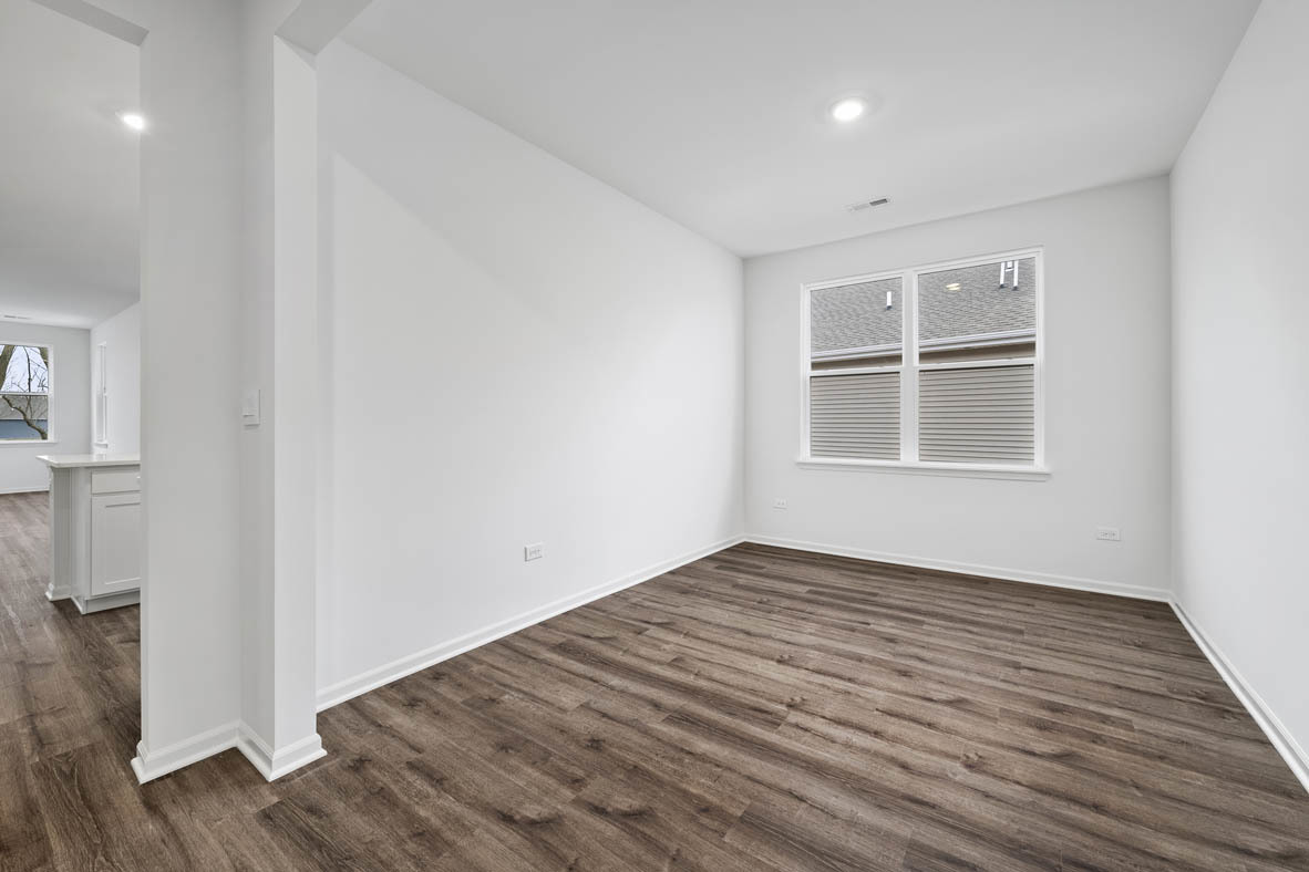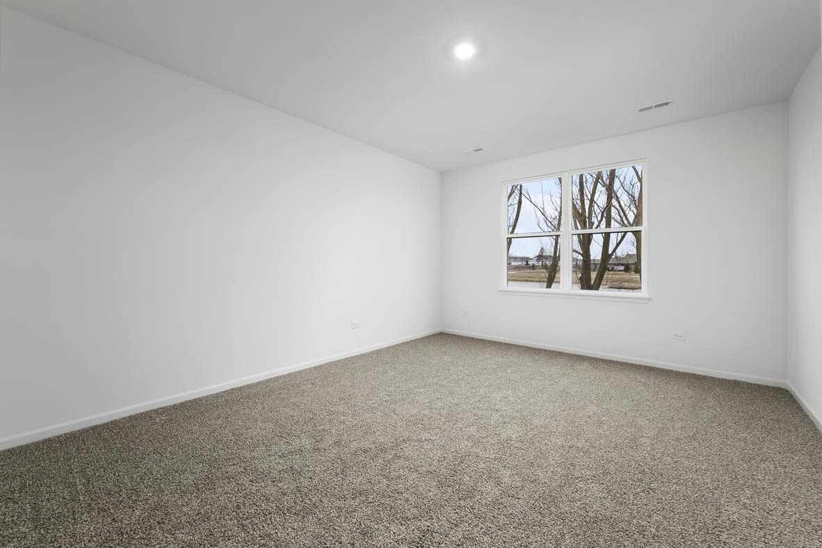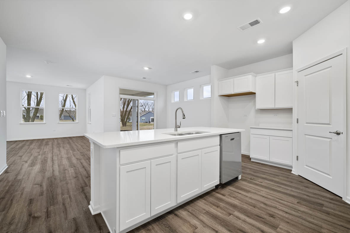 Discover expansive ranch living at 870 Mesa Lane in Pingree Grove, Illinois, a beautiful new home in Cambridge Lakes North. This modern one-level home will be ready for fall delivery. This homesite includes a fully sodded yard and covered back patio. The Dover plan offers 1,956 square feet of living space with 3 bedrooms plus a Flex room, 2 full bathrooms all with 9-foot ceilings! When you first enter the home, set off to side, you’ll find a secondary bedroom and full hall bath tucked away for privacy. Next, you’ll come upon the open flex room, excellent for an office, game room, formal dining room, guest area or a hobby room. Across the hall, you will find the 3rd bedroom tucked away, giving this space added privacy. Continuing through the home, the open concept kitchen flows to the dining and family room areas. The kitchen layout includes a large island with an overhang for stools, quartz counter tops with a stainless steel undermount sink, stainless steel appliances, corner pantry and designer cabinetry. The family room has beautiful windows overlooking the backyard and patio. Enjoy your private get away of your spacious primary bedroom in the back of the home complete with en suite bathroom featuring two separate, raised height sinks, quartz top vanities and walk in seated shower, tile surround and shower doors. Additionally, the main floor includes easy-to-maintain Luxury vinyl plan flooring. Our Chicago home includes our America’s Smart Home Technology featuring Smart Home Features including video doorbell, Honeywell thermostat, Door Lock, Garage Door Opener, and Deako smart light switches. Impressive technology and efficiencies give you the most innovative home on the market including ERV furnace system and tankless water heater. Builder Warranty 1-2-10 is included. Photos are of a similar home. Actual home built may vary.