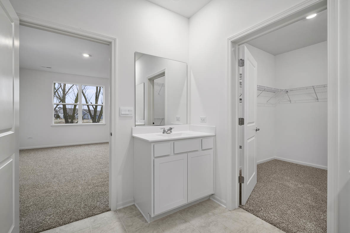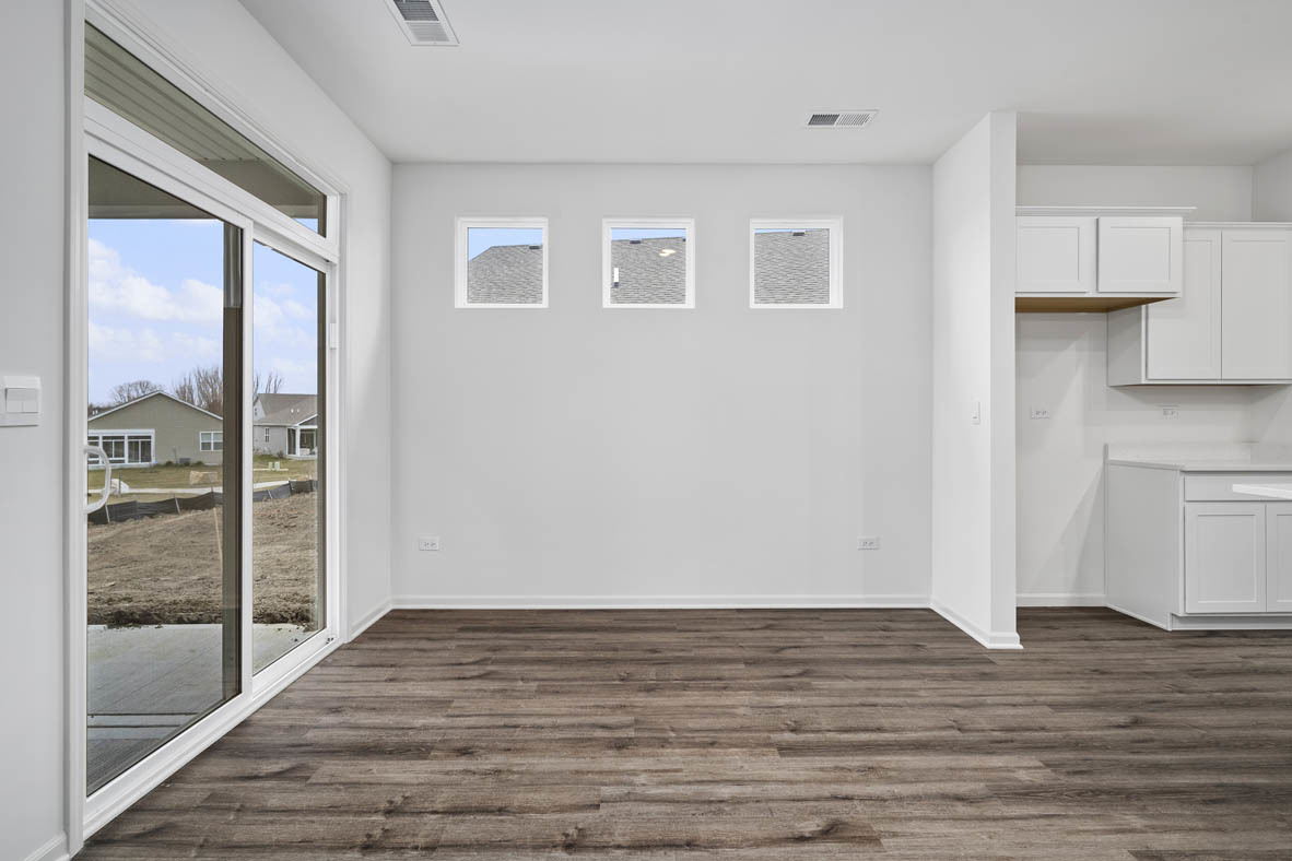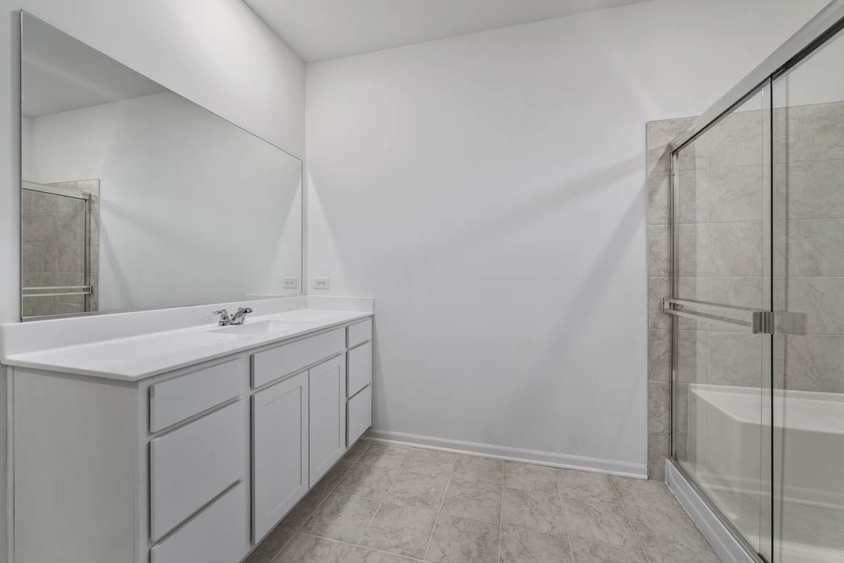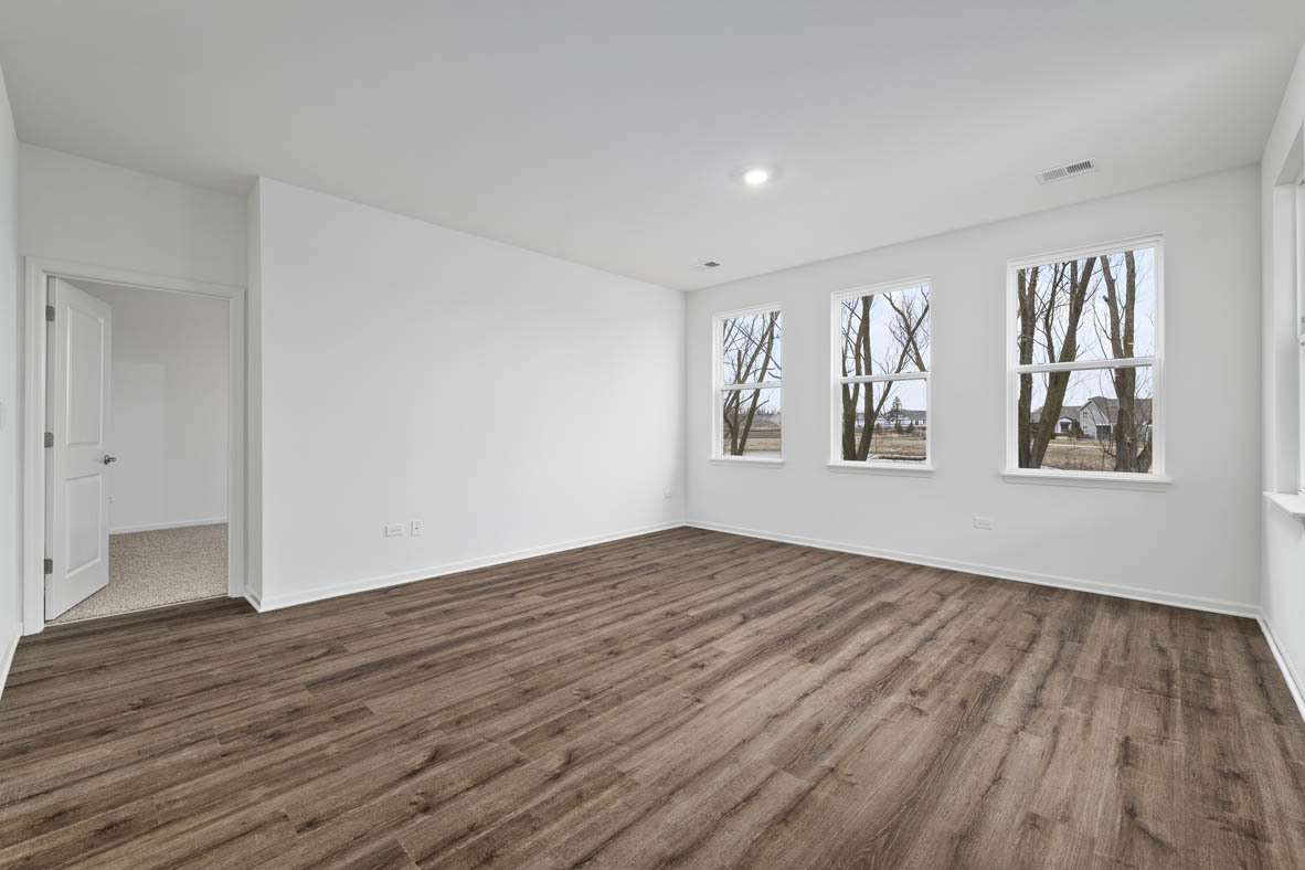 Discover expansive ranch living at 870 Mesa Lane in Pingree Grove, Illinois, a beautiful new home in Cambridge Lakes North. This modern one-level home will be ready for fall delivery. This homesite includes a fully sodded yard and covered back patio. The Dover plan offers 1,956 square feet of living space with 3 bedrooms plus a Flex room, 2 full bathrooms all with 9-foot ceilings! When you first enter the home, set off to side, you’ll find a secondary bedroom and full hall bath tucked away for privacy. Next, you’ll come upon the open flex room, excellent for an office, game room, formal dining room, guest area or a hobby room. Across the hall, you will find the 3rd bedroom tucked away, giving this space added privacy. Continuing through the home, the open concept kitchen flows to the dining and family room areas. The kitchen layout includes a large island with an overhang for stools, quartz counter tops with a stainless steel undermount sink, stainless steel appliances, corner pantry and designer cabinetry. The family room has beautiful windows overlooking the backyard and patio. Enjoy your private get away of your spacious primary bedroom in the back of the home complete with en suite bathroom featuring two separate, raised height sinks, quartz top vanities and walk in seated shower, tile surround and shower doors. Additionally, the main floor includes easy-to-maintain Luxury vinyl plan flooring. Our Chicago home includes our America’s Smart Home Technology featuring Smart Home Features including video doorbell, Honeywell thermostat, Door Lock, Garage Door Opener, and Deako smart light switches. Impressive technology and efficiencies give you the most innovative home on the market including ERV furnace system and tankless water heater. Builder Warranty 1-2-10 is included. Photos are of a similar home. Actual home built may vary.