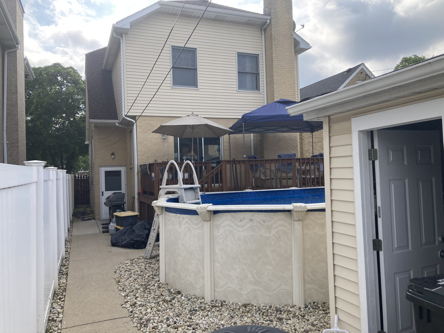 This charming single-family home is located at 3916 N. Pontiac Ave. in Chicago, Il was built in 1933 and exudes timeless character and charm, built when you had quality materials and construction with engineers that cared and carried out by qualified union workers schooled in their respective trades. Unlike the newly constructed or rehabbed homes of today. The home was designed with Oak trim throughout with updates of a complete tear off and new roof, a below grade Drainage System, Overhead Sewers and Ejection Pump. With a total of 4 bedrooms and 3 bathrooms, 2 fireplaces, dining room and lower-level family room and workout center in the finished basement with Oak and Italian Marble floors and a nice seasonally covered large deck overlooking the pool. With 2,656 sq.ft. of finished living space, this two story home offers plenty of room for comfortable living at a cost per square foot of less than the average cost of $252 in this zipcode, coming in at $240 per square foot. The lot size is expansive, measuring at 3,480 sq.ft. providing ample outdoor space for entertaining or relaxing on the covered deck overlooking the pool, garage and fire pit. The interior of the home boasts new floors, new rugs, new appliances and mechanicals. A new washing machine, hot water heater, furnace, humidifier, air cleaner, 4 ton evaporator coil air conditioner. The kitchen is equipped with modern new appliances, a new refrigerator and freezer, microwave oven, ample cabinet space, and a breakfast bar for casual dining. The bedrooms are spacious and offer plenty of closet space for storage. The bathrooms are updated and feature modern fixtures and finishes including 3 new Custom Raised Kohler Toilets. The exterior of the home boasts a classic design with a brick facade and well-maintained landscaping. While inside, the home features a cozy and inviting atmosphere with new vinyl and hardwood floors, large windows that allow for plenty of natural light, and a traditional layout that includes a living room, dining room, kitchen, and bedrooms on the first and second levels. Additional highlights of this property include an alarm system on the patio doors, all other doors plus smoke and glass break detection with motion detectors on the inside. New Thermal Windows in the patio doors, a finished basement, laundry facilities, furnace room and tool room for extra storage. A secured fenced back yard for privacy, and a detached 2 car garage plus a secured spot for that 3rd car, boat, Rv, or a fire pit. A new pool liner and garage door opener is included. The home is located in a desirable neighborhood with easy access to shopping, dining, entertainment, and public transportation. Overall, 3916 N. Pontiac Avenue is a wonderful opportunity to own a piece of Chicago’s history while enjoying modern comforts and convenience. Finally Priced Right, don’t miss out on the chance to make this charming home your own!