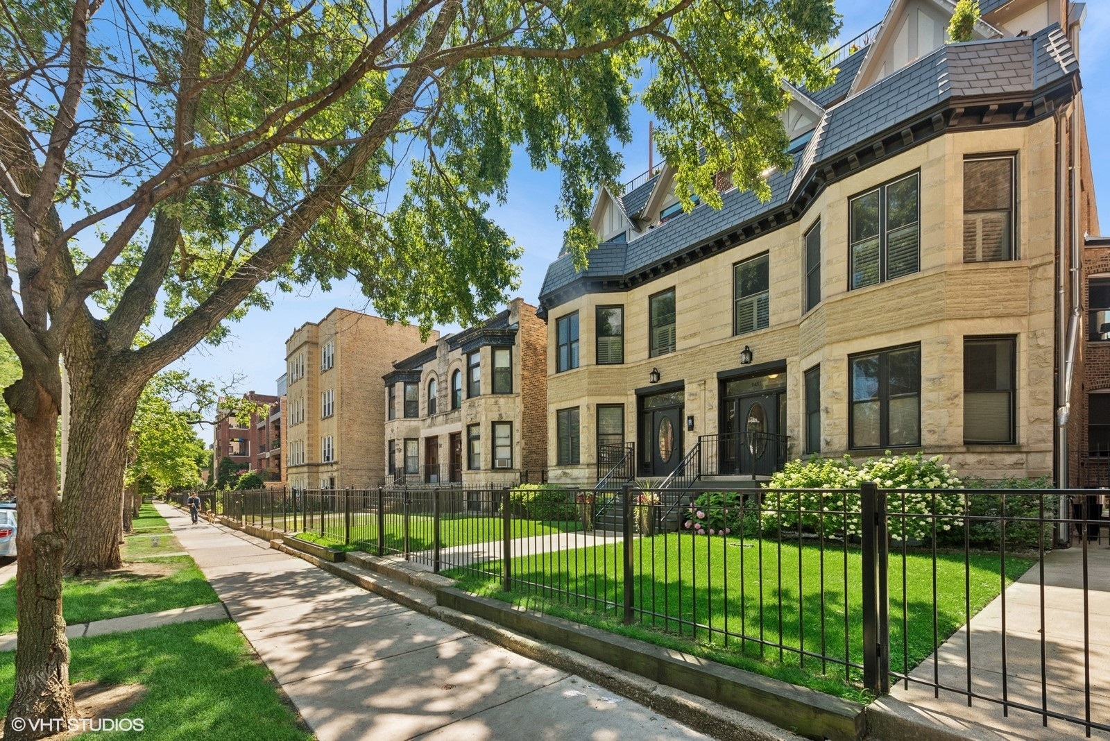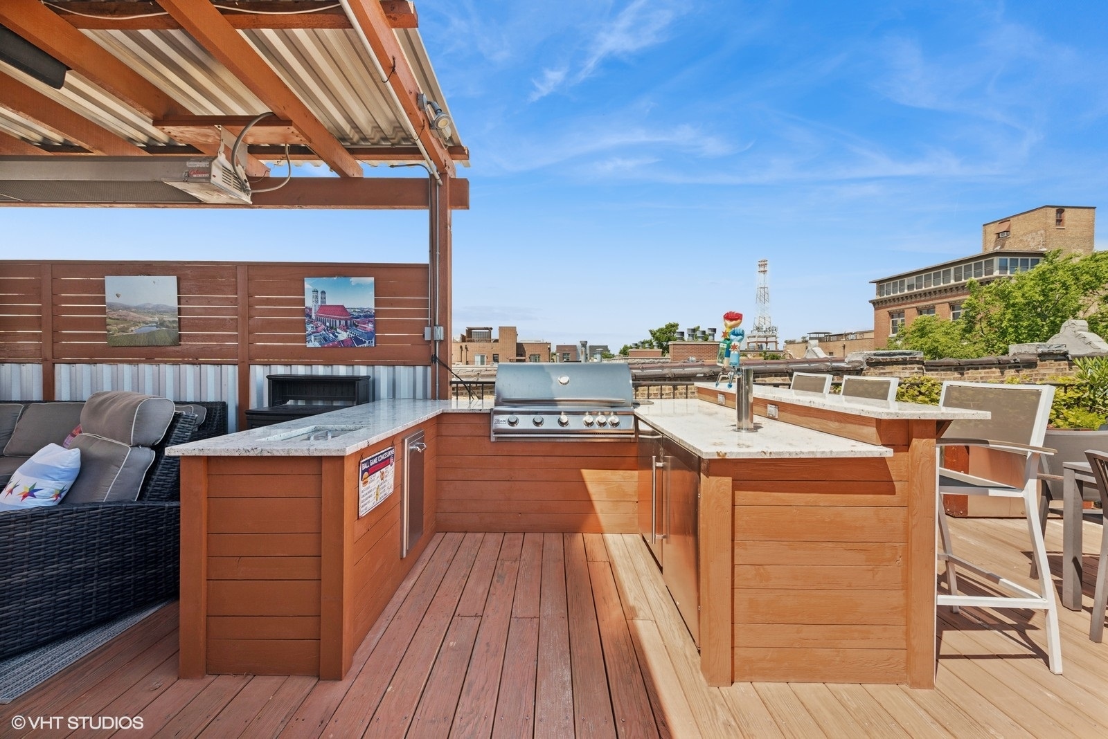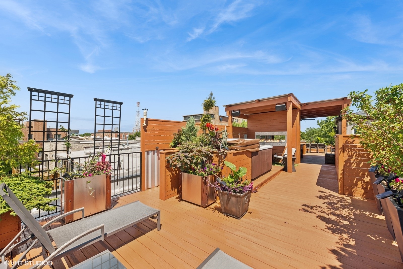 Stunning Andersonville Penthouse with Private Rooftop Oasis. Live above it all in this incredible 3-bedroom, 2-bath Andersonville Penthouse, where luxury, design, and location come together seamlessly. Set atop a reimagined historic greystone, this one-of-a-kind home features a showstopping 1,200 SF private rooftop deck-custom-built for entertaining and relaxation. Just steps from Andersonville’s vibrant shops, dining, and nightlife, this third-floor residence offers three private outdoor spaces: a spacious front balcony, a rear terrace, and the ultimate rooftop retreat. Your rooftop paradise is outfitted with a hot tub, pergola, two-sided gas fireplace, radiant heater, outdoor kitchen with built-in grill and beer taps, refrigerator, TV mount, and lush landscaped planters-all accessible via interior stairs for seamless indoor-outdoor living. Inside, the home boasts an open-concept island kitchen with rich cabinetry, quartz counters, custom backsplash, and top-tier appliances including Sub-Zero fridge, Blue Star range, Bosch dishwasher, and a beverage center. Thoughtful touches like oak floors, crown molding, integrated speakers. The king-sized primary suite is a spa-inspired sanctuary with a stone bath, oversized steam shower with body sprays, double vanity, and radiant heat flooring. Two additional spacious bedrooms and a beautifully appointed second bath with a jetted tub complete the layout. Additional perks include in-unit laundry, garage parking plus tandem exterior space, and extra storage. Truly a rare find in one of Chicago’s most sought-after neighborhoods.