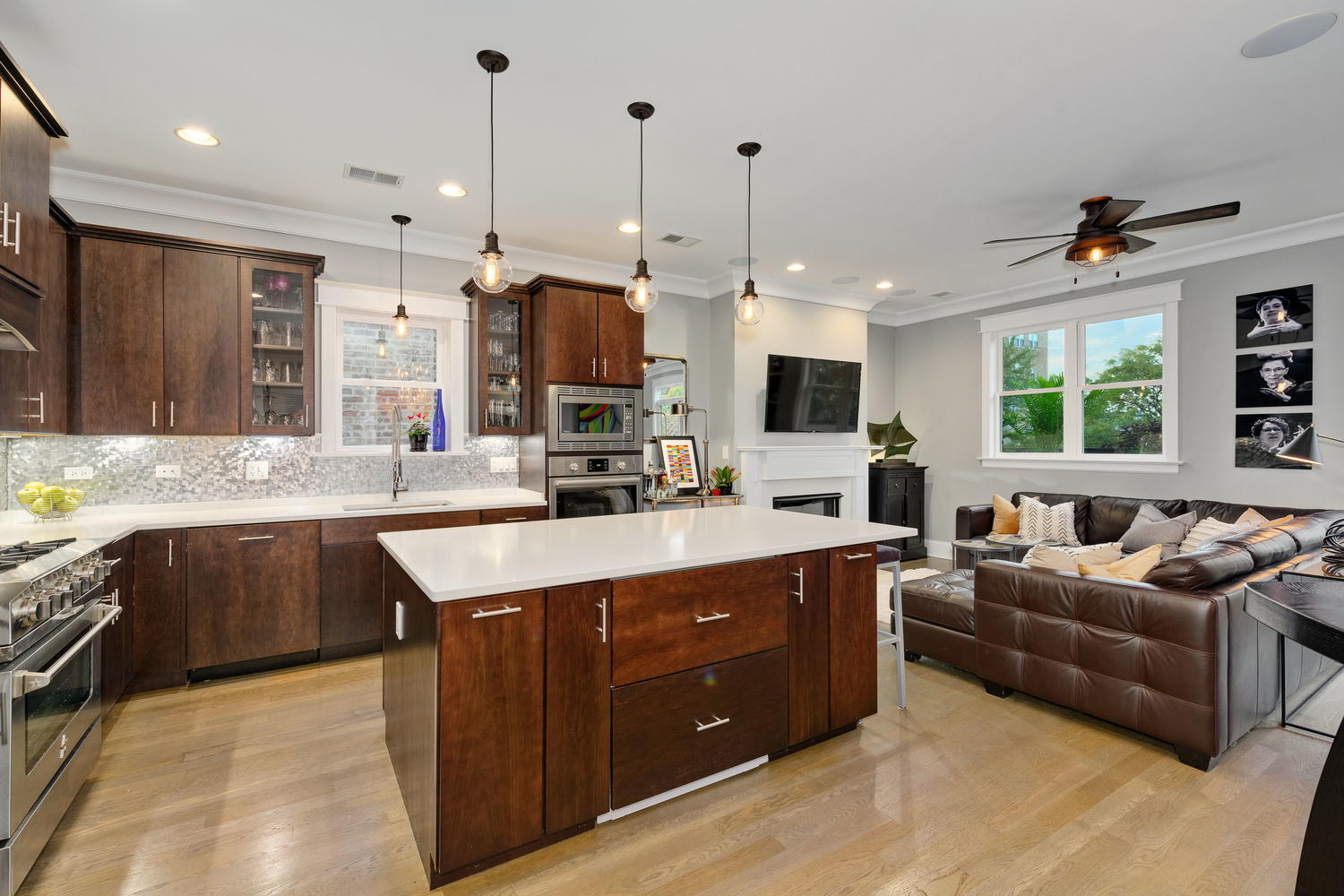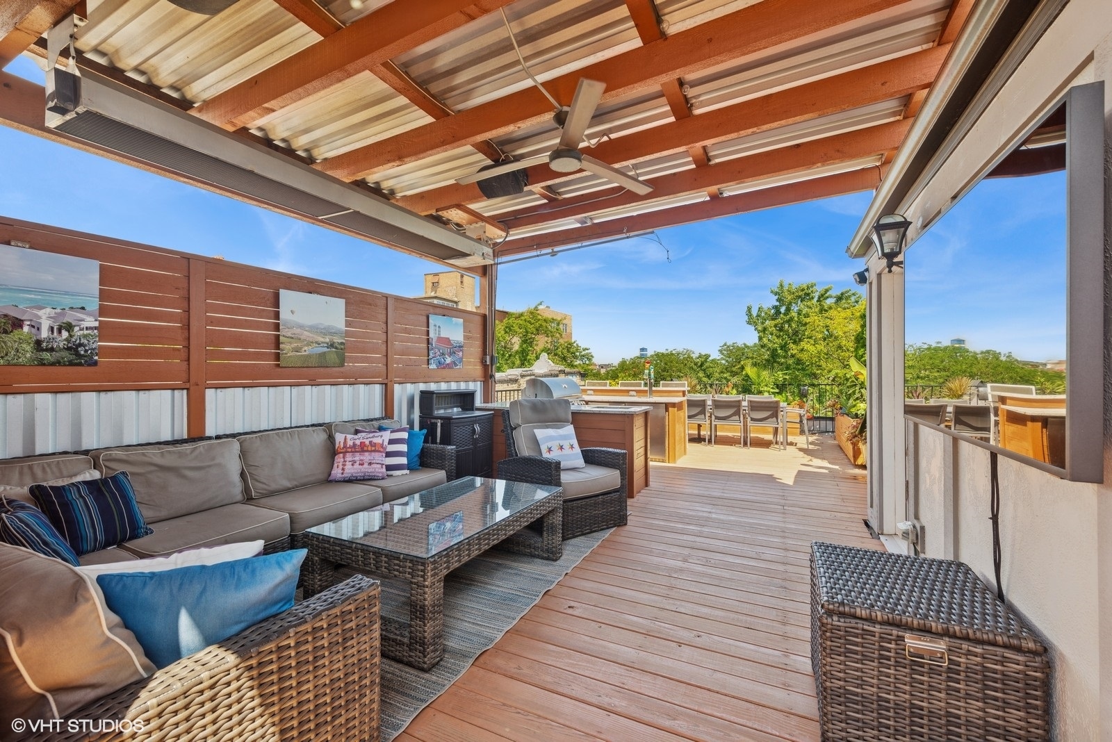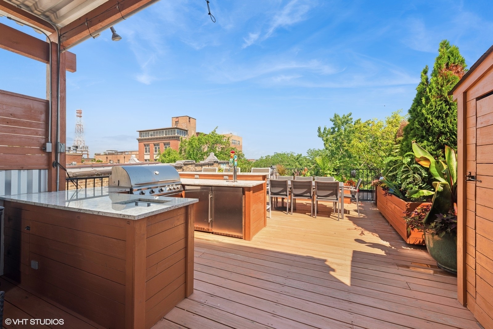 Stunning Andersonville Penthouse with Private Rooftop Oasis. Live above it all in this incredible 3-bedroom, 2-bath Andersonville Penthouse, where luxury, design, and location come together seamlessly. Set atop a reimagined historic greystone, this one-of-a-kind home features a showstopping 1,200 SF private rooftop deck-custom-built for entertaining and relaxation. Just steps from Andersonville’s vibrant shops, dining, and nightlife, this third-floor residence offers three private outdoor spaces: a spacious front balcony, a rear terrace, and the ultimate rooftop retreat. Your rooftop paradise is outfitted with a hot tub, pergola, two-sided gas fireplace, radiant heater, outdoor kitchen with built-in grill and beer taps, refrigerator, TV mount, and lush landscaped planters-all accessible via interior stairs for seamless indoor-outdoor living. Inside, the home boasts an open-concept island kitchen with rich cabinetry, quartz counters, custom backsplash, and top-tier appliances including Sub-Zero fridge, Blue Star range, Bosch dishwasher, and a beverage center. Thoughtful touches like oak floors, crown molding, integrated speakers. The king-sized primary suite is a spa-inspired sanctuary with a stone bath, oversized steam shower with body sprays, double vanity, and radiant heat flooring. Two additional spacious bedrooms and a beautifully appointed second bath with a jetted tub complete the layout. Additional perks include in-unit laundry, garage parking plus tandem exterior space, and extra storage. Truly a rare find in one of Chicago’s most sought-after neighborhoods.