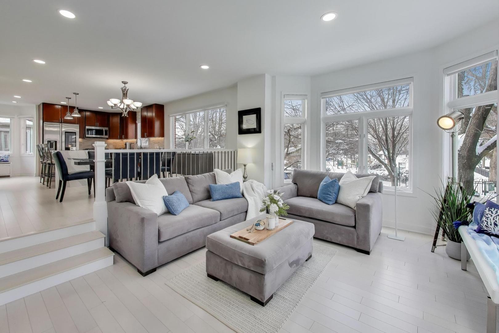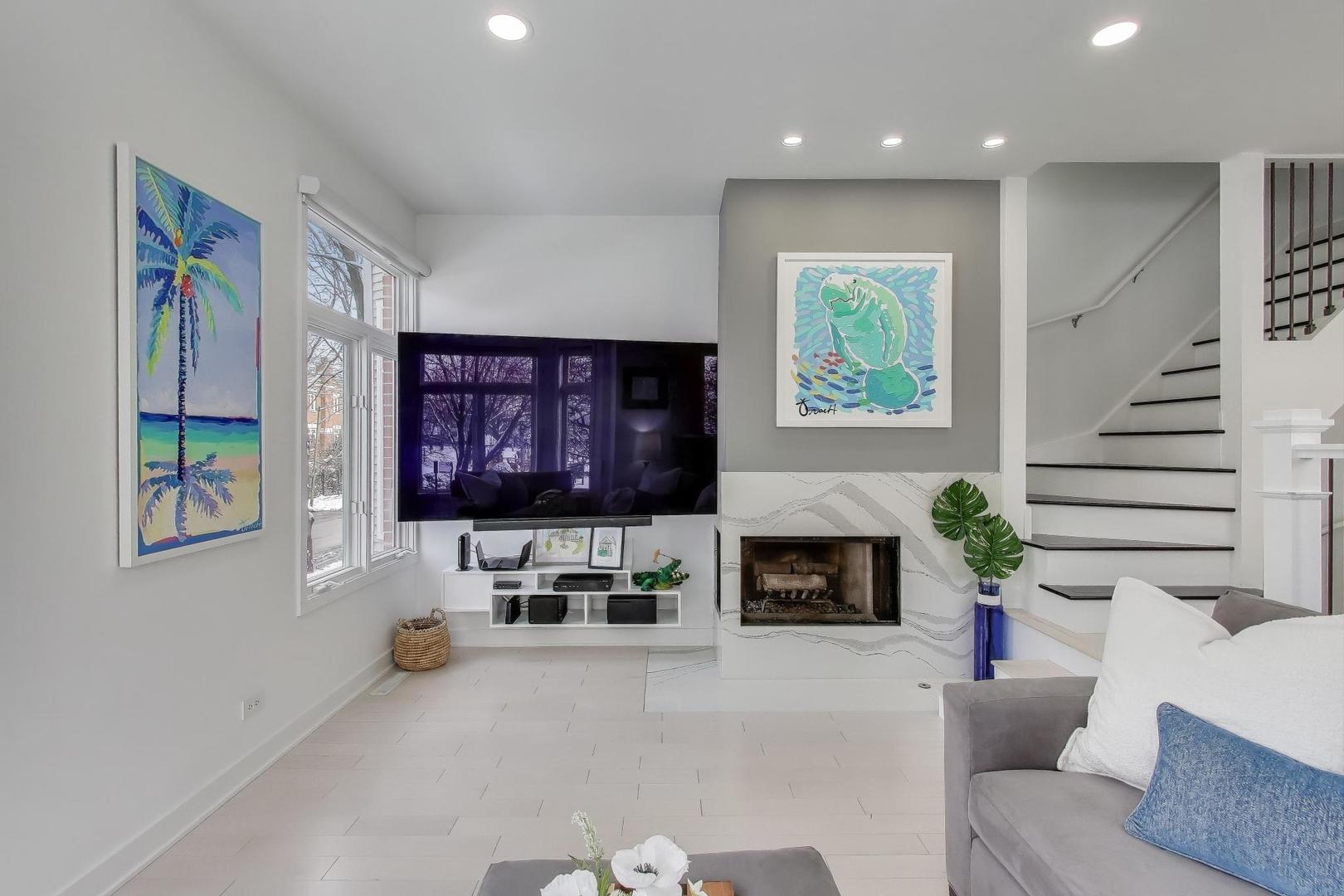 Stunning sun-drenched South, West and North facing corner townhouse directly across from Wrightwood Park, offering four levels of extensively updated living. The renovated, modern kitchen features Samsung Smart wi-Fi stainless steel appliances, tons of wood cabinets, gorgeous Cambria quartz white countertops and island and eat-in breakfast area. Spacious open floorplan of large dining and separate living space. Living space appointed with gas fireplace, which can be wood. Windows are suited with Bali motorized solar shade/blinds, all remote controlled. The dramatic turreted primary suite includes a luxurious spa-quality bath with double bowl vanity, marble rainfall shower, soaking tub. A second bedroom with its own ensuite bath and a vaulted third bedroom with exceptional flexibility, comfort and storage. The first-floor family room with new heated porcelain tile floors flows seamlessly to a private deck-perfect for entertaining or relaxing outdoors. A two-car garage with tons of storage completes this exceptional Lincoln Park home. List of upgrades in the additional information. Open Sat 12/6 and Sun 12/7 from 1-3pm.