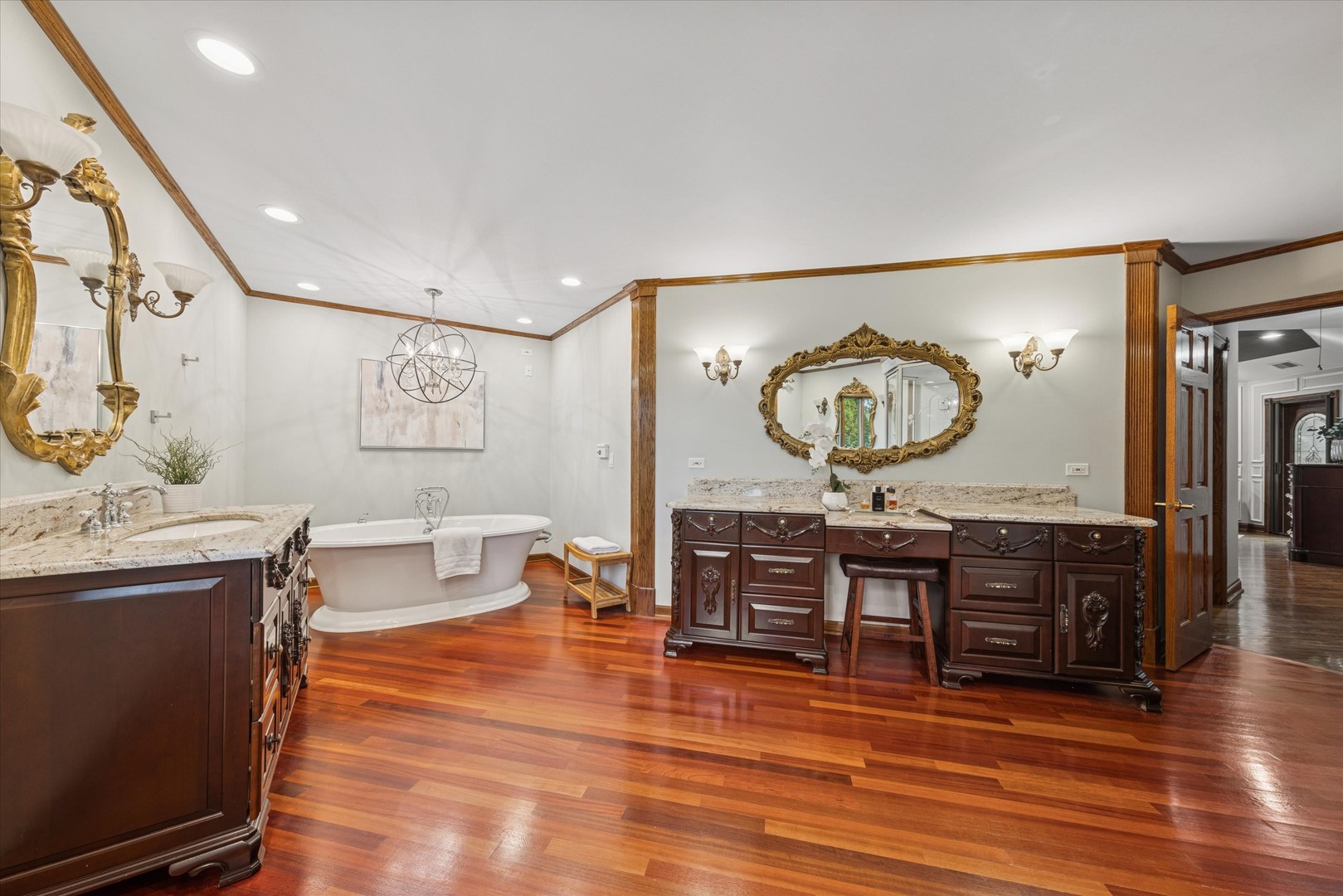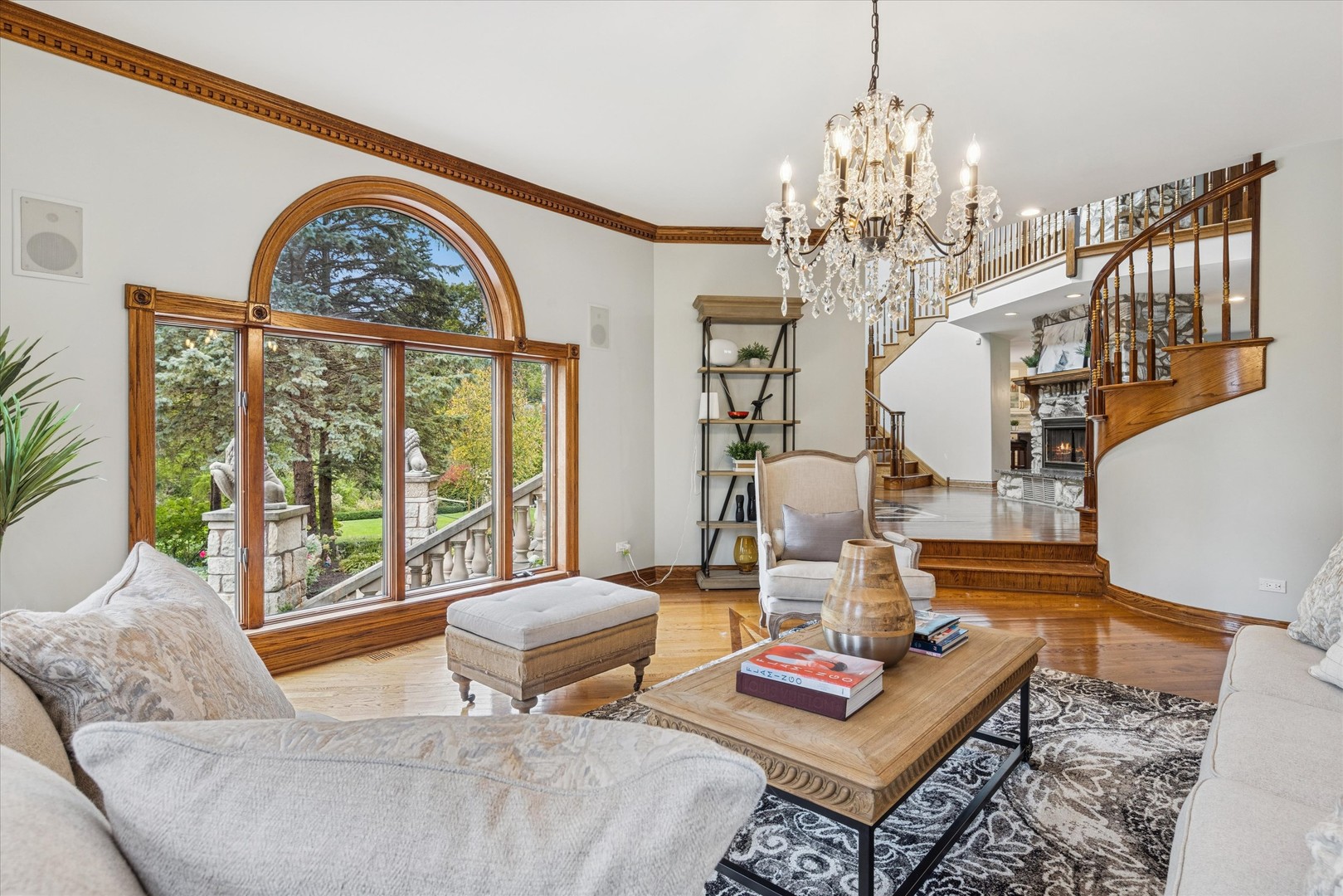 An exceptional opportunity on one of Lemont’s most beautiful and private enclaves. Nestled on a sprawling almost 2 acres, this custom estate offers unmatched privacy and elegance -perfectly positioned just minutes from charming downtown Lemont, top-rated schools, golf courses, and easy expressway access. Behind a private gated entry, this impressive residence boasts timeless architectural design with 6 beds and 5.2 baths, soaring ceilings, and sun-drenched living spaces. The expansive main level features a grand foyer, formal dining room, chef’s kitchen with high-end appliances, a view of a gorgeous pond, and a dramatic great room with light filled windows overlooking the serene grounds. The luxurious primary suite is a true retreat with an amazing balcony recently redone with new tile. A finished lower level offers incredible high ceilings, a full kitchen, billiards room, and theater style recreation room, plus an additional bedroom and huge office space. Outside, enjoy professionally landscaped grounds with mature trees and hedges, multiple patios, and a brand-new landscaped pool and yard that takes the stately grounds to the next level. The main level includes an in-law suite complete with kitchen, en suite bath, and separate living room and entrance.