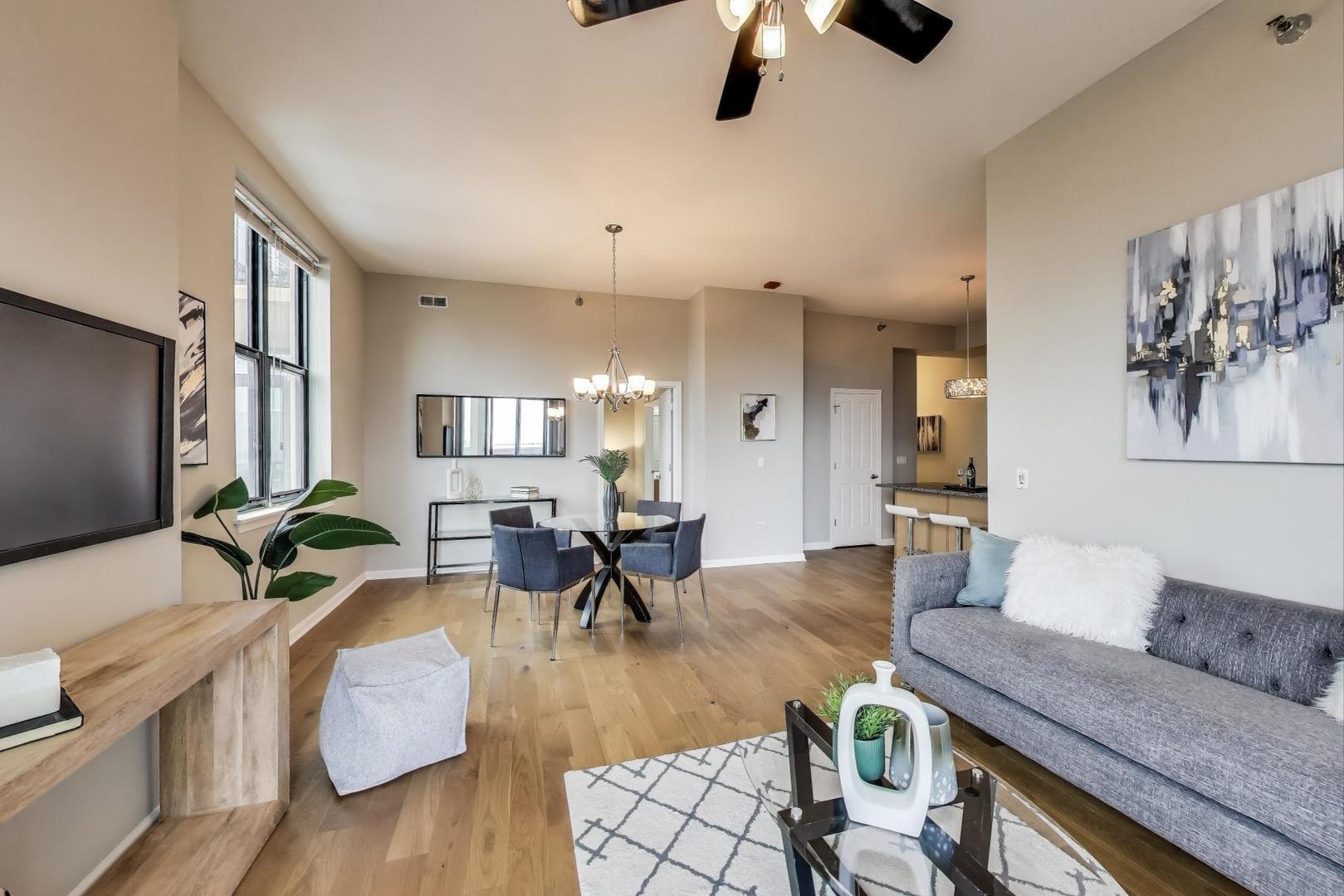 Soak in SWEEPING VIEWS from this South Loop Stunner! Welcome to this immaculate and beautifully updated 2 bed/2 bath, CORNER highrise condo with direct south and east exposures in a full-amenity building w/garage parking spot. Perched high above the city, the oversized private balcony delivers jaw-dropping panoramic views of the lake, parks, Soldier Field, Museum Campus, and a gorgeous city skyline making every morning coffee and evening unwind unforgettable. The home’s soaring 10-ft ceilings, newly installed engineered hardwood flooring, freshly painted walls and large windows (including floor-to-ceiling sliding glass doors) flood the home with natural light and a warmth that permeates through each room. The open layout is perfect for entertaining with oversized living and dining rooms as well as a stainless steel kitchen with large island featuring Bosch appliances, granite countertops, maple cabinetry and a brand new microwave and disposal. Retreat to the private primary suite, complete with a large walk-in closet and a spa-inspired bath featuring dual vanities, a relaxing soaking tub and separate shower. The unit’s HVAC system (heat and A/C ) was replaced just 2 yrs ago. IN UNIT LAUNDRY, too! The building offers everything you need: 24-hour doorman, fitness center, bike storage, dog run, and dry cleaning service and access to fiber internet,too! Pet-friendly building with an amazing dog park a block away at Fred Anderson Park. You and your pup can also enjoy a walks through the Prairie District down to McCormick Place. Ideally located just steps from the lakefront, parks, museums, public transit (Red, Orange, Green Lines + Metra), and major expressways. Walk to Mariano’s, Trader Joe’s, numerous top restaurants, shops and more! Nothing to do but move in and enjoy this beautiful unit! Deeded Garage Parking available for $25,000.