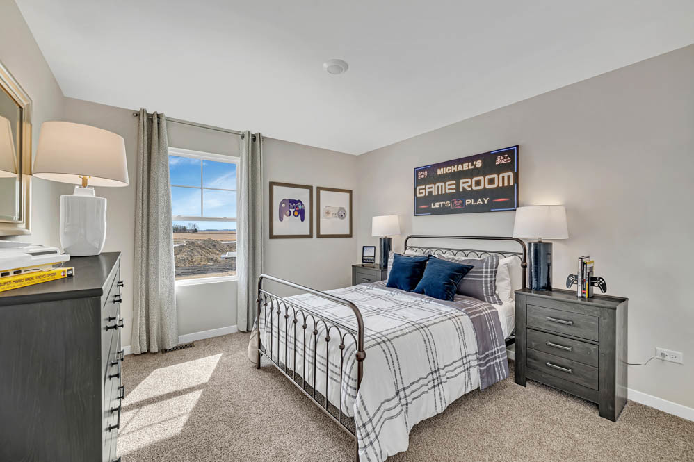 Welcome to your dream home in the highly sought-after Sonoma Trails community! This beautiful 4-bedroom, 2.5-bath home is situated on a premium homesite with peaceful pond views and includes a full side and professional landscape package. Step inside to find an open-concept layout featuring a huge family room perfect for entertaining. The heart of the home is the upgraded gourmet kitchen, showcasing a KitchenAid appliance package, quartz countertops, a spacious island, and elegant 42″ designer cabinetry. A butler’s pantry adds convenience and extra storage-ideal for hosting and everyday living. Upstairs, you’ll find four generously sized bedrooms plus a versatile loft, perfect for a home office, media room, or play area. A full basement is included, offering endless potential for future expansion or storage. All Chicago homes include our America’s Smart Home Technology. Builder Warranty 1-2-10. Exterior/interior photos of similar home, actual home as built may vary.