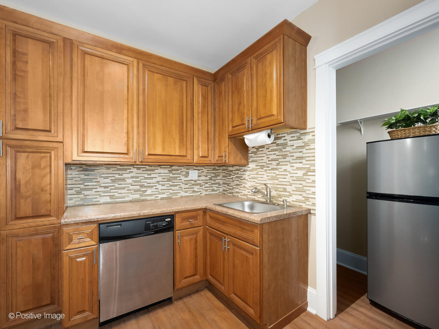Gorgeous, sunny and spacious top floor one bedroom showcases lovely vintage details with modern updates in an awesome Andersonville location. Gracious entry opens to a large living room featuring a decorative fireplace with stone surround and a wall of built-ins. Attached sunroom filled with windows overlooking the landscaped courtyard serves as a perfect office, yoga retreat or cozy guest room. The updated kitchen with plenty of beautiful warm cabinetry, glass and stone tile backsplash and stainless appliances has a large pantry housing the refrigerator, a washer/dryer combo unit and extra storage. Enjoy your morning coffee or grow some herbs on your private deck outside the kitchen door. The adjacent dining room has plenty of space to host dinner parties and holiday gatherings. A separate hallway allowing for privacy leads to the bedroom, an updated bathroom and a huge storage closet. Well maintained co-op building. Highlights include newer thermal pane, easy to clean tilt-in windows throughout, new pitched roof and tons of extra storage in the basement. Monthly assessment includes heat, water and property taxes! Perfect, walkable location convenient to everything Andersonville has to offer – shopping, dining, nightlife – with easy access to the lakefront and downtown. Welcome home!