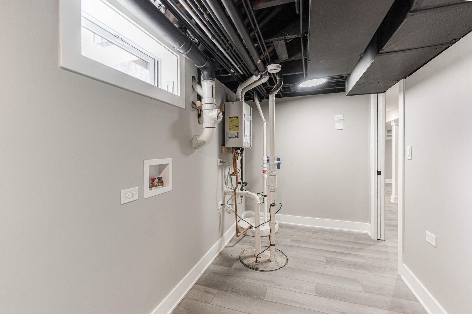 Experience modern living at its finest in this completely renovated 4-bedroom, 3.1-bathroom home nestled on a generous 0.29-acre lot on the desirable North side of Lombard. This stunning two-story residence with a fully finished basement offers over 2,600 sq. ft. of beautifully updated living space, blending contemporary design with everyday functionality. Step inside to discover an open and airy floor plan flooded with natural light, thanks to all-new energy-efficient windows. Gleaming hardwood floors flow throughout both the main and second levels, adding warmth and sophistication to every room. The heart of the home is the expansive kitchen featuring white shaker cabinetry, a large center island, quartz countertops, and a walk-in pantry. High-end stainless steel appliances complete this dream kitchen, perfect for entertaining or family gatherings. Adjacent to the kitchen, the mudroom offers the perfect space to store backpacks, coats, and shoes, keeping your home tidy and organized. The fully finished basement boasts a spacious family room and a full bath-ideal for movie nights, play space, or guest accommodations. Retreat upstairs to the luxurious primary suite, featuring a massive walk-in closet and spa-like bathroom with a soaking tub, walk-in shower, and double vanity. Three additional generously sized bedrooms and updated bathrooms ensure room for everyone. This home has been thoughtfully upgraded from top to bottom, including new electrical, plumbing, gas lines, and mechanical systems, giving you peace of mind for years to come. Located close to the Prairie Path, local parks, and top-rated grade schools, this is a rare opportunity to own a turnkey home in a prime location. Come see it today and make 147 W. North Ave your forever home.