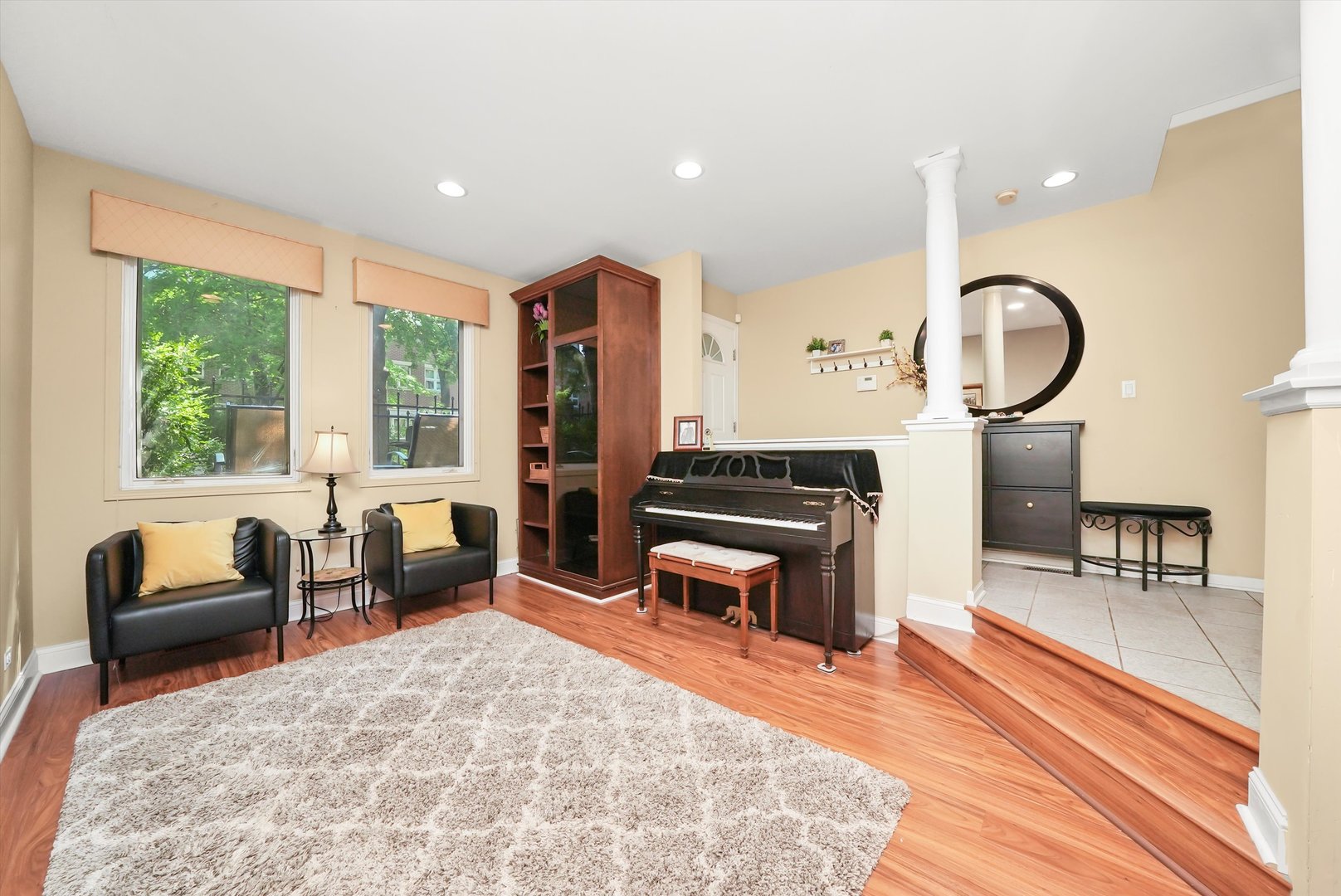 Welcome home to this 3 bedroom, 2 and a half-bath Park Row Townhome located in Chicago’s coveted Central Station. Nestled on a quiet, tree-lined drive with gated entrance and private front patio, this elegant residence offers a rare combination of privacy, and thoughtful updates-perfectly positioned just moments from the Lakefront, Museum Campus, Soldier Field and all the city has to offer. Nearby Public and Private School options include South Loop, Old St. Mary’s, Chicago Lab School, The British School, Daystar, and Jones College Prep. This spacious, multi-level home has been meticulously updated, featuring a recently renovated designer kitchen outfitted with ALL-NEW Stainless Steel appliances, Sub-Zero refrigerator, contemporary bistro-style dining table, heated floors, granite countertops and beautifully refinished maple cabinetry. The expansive living and formal dining room are bathed in natural light from NEWLY INSTALLED southern-facing WINDOWS and anchored by a sleek fireplace, creating a perfect setting for entertaining. The flexible ground-floor layout includes a bright den or office, ideal for remote work or a quiet retreat. Refinished hardwood floors flow throughout the home, including brand new hardwood on the staircase and upper-level bedrooms. The oversized primary suite is a true sanctuary, boasting vaulted ceilings, a second fireplace, and an abundance of custom-built storage. A one-of-a-kind library and office nook adds character and charm to this already exceptional space. Two generously sized bedrooms and a fully updated bathroom with granite countertops, new sinks, and refinished cabinetry complete the third level. Additional features include a lovely patio terrace, full-size, front-facing laundry room, a 1.5-car attached garage and RECENTLY UPGRADED HOT WATER HEATER, FURNACES, and AIR CONDITIONER. The home has been freshly painted throughout and includes a newer roof (2015) with a 30-year warranty. Surrounded by lush landscaping, with access to a beautifully maintained courtyard, this townhome offers the tranquility of suburban living with the energy and convenience of one of Chicago’s most dynamic neighborhoods.